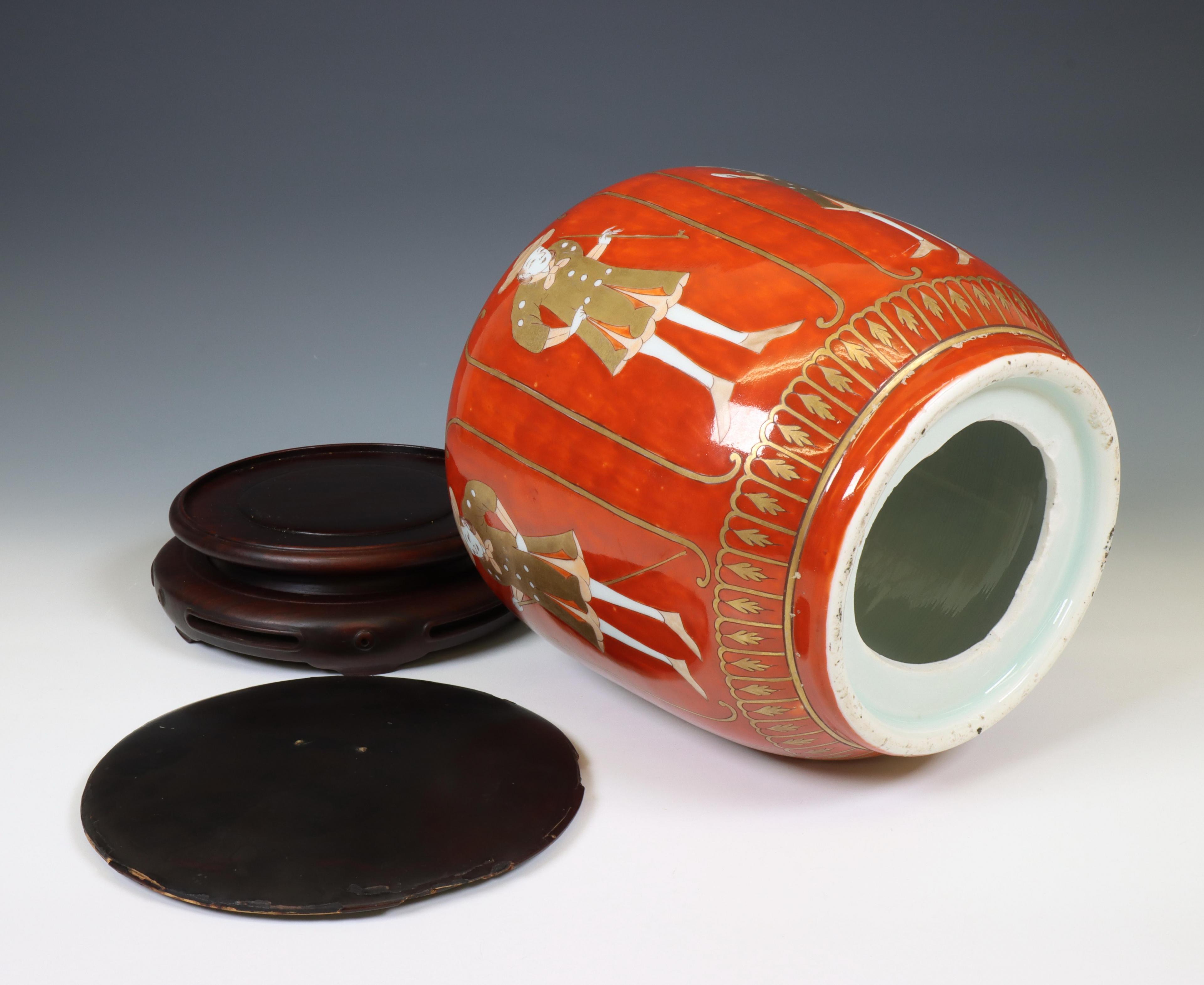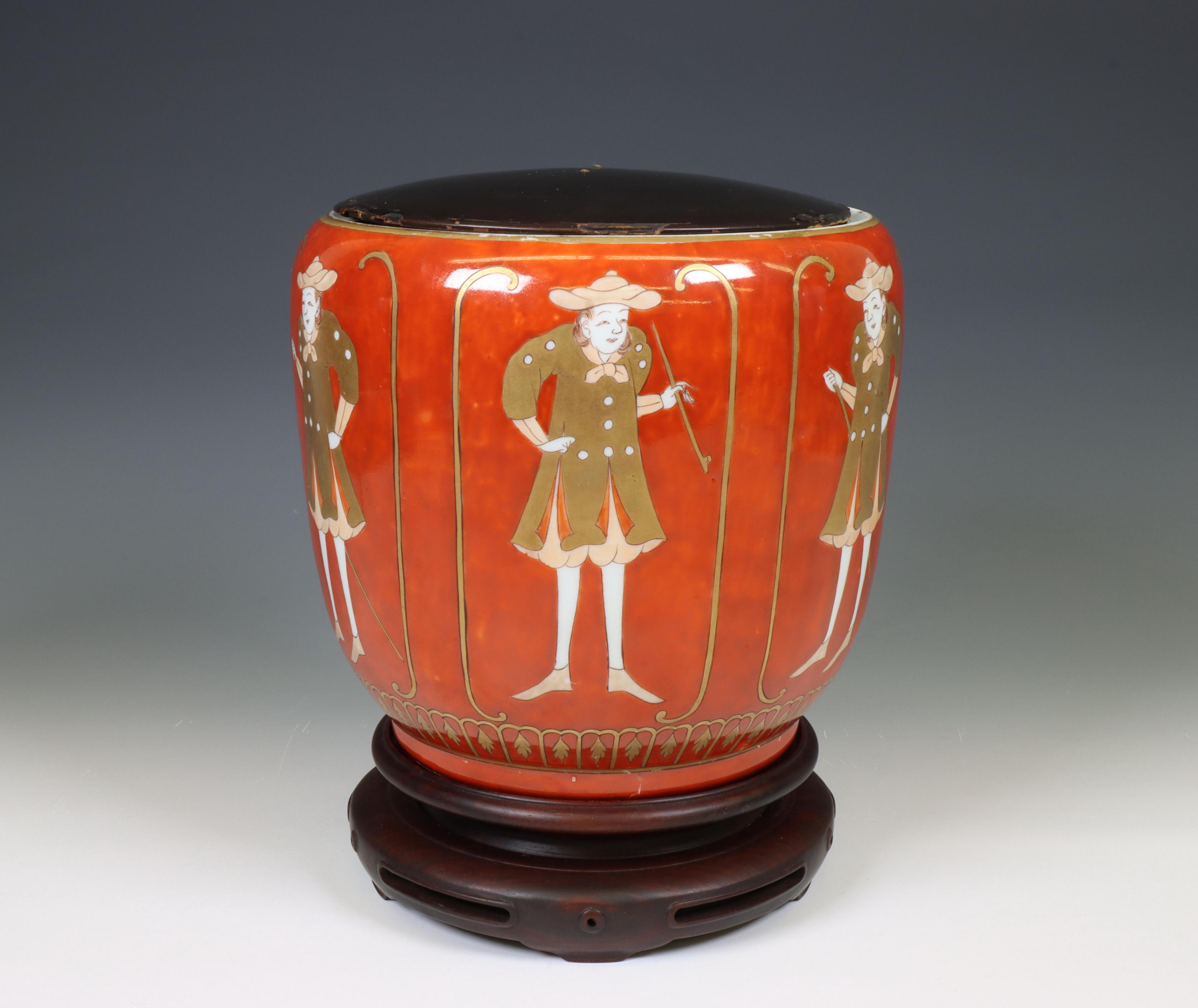 painted with various Dutchmen, with wood cover and stand (base removed)