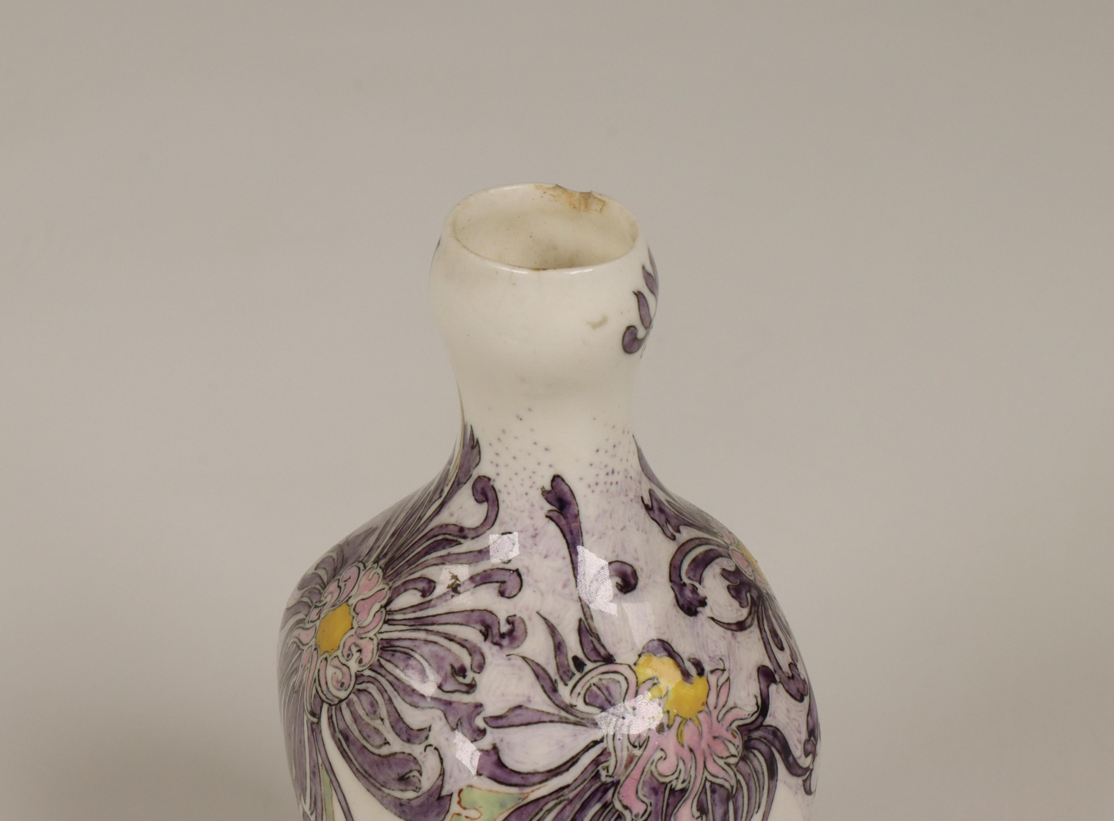 Uitgevoerd met beschilderd decor van chrysanten (beide vaasjes met beschadigingen)