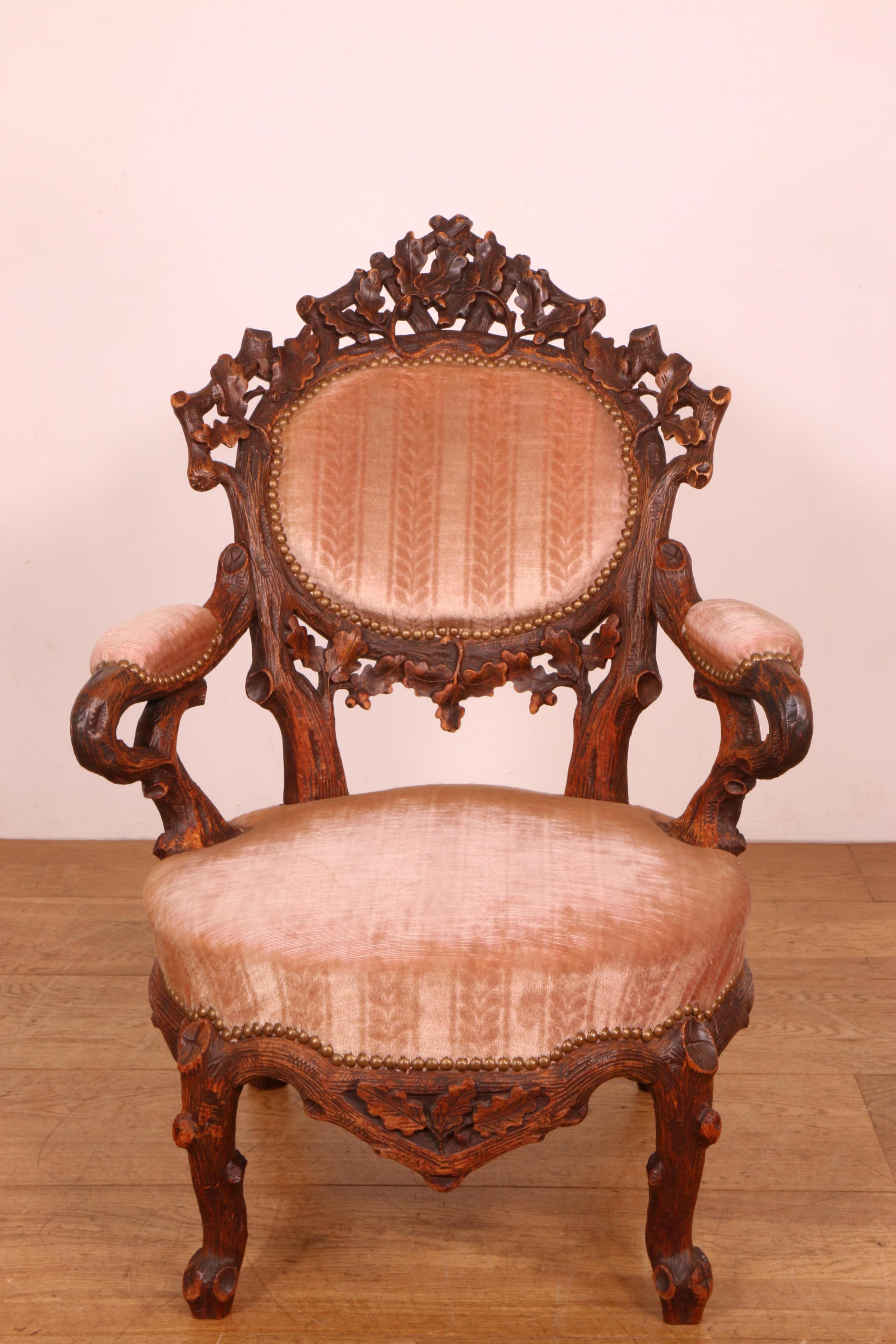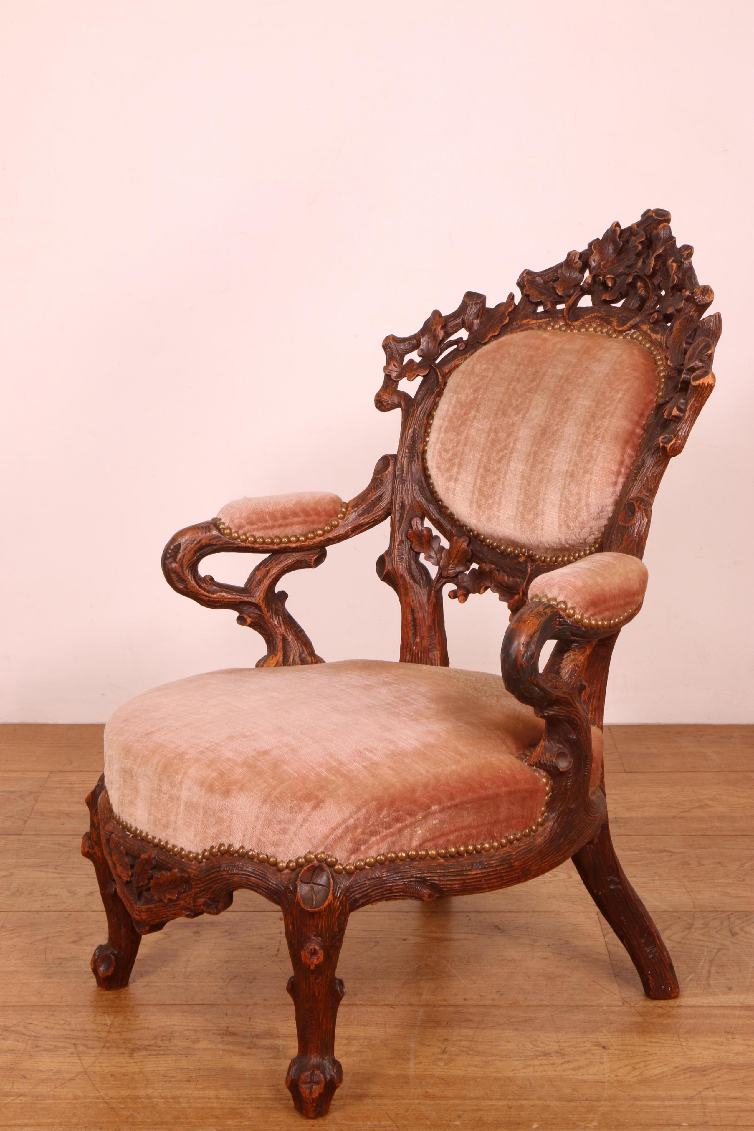 Duitsland, rustiek gestoken notenhouten Schwartzwalder armstoel, ca. 1900,