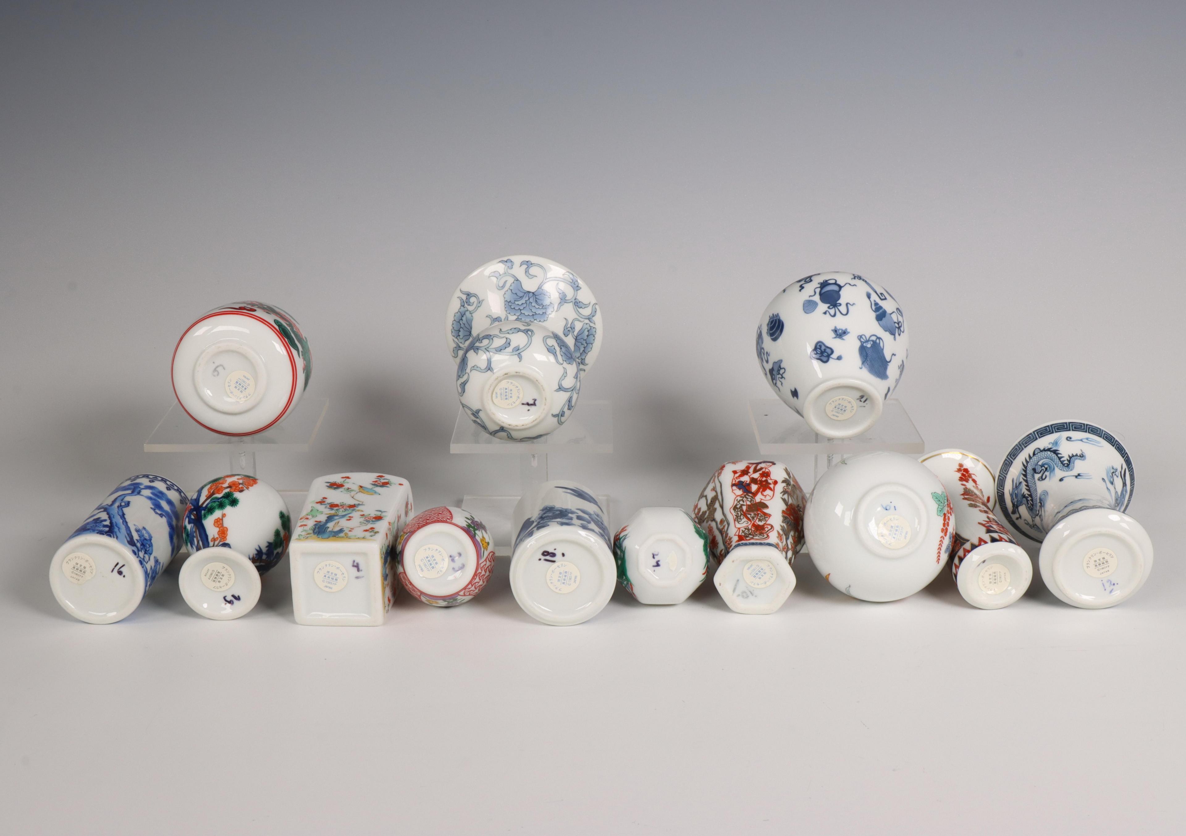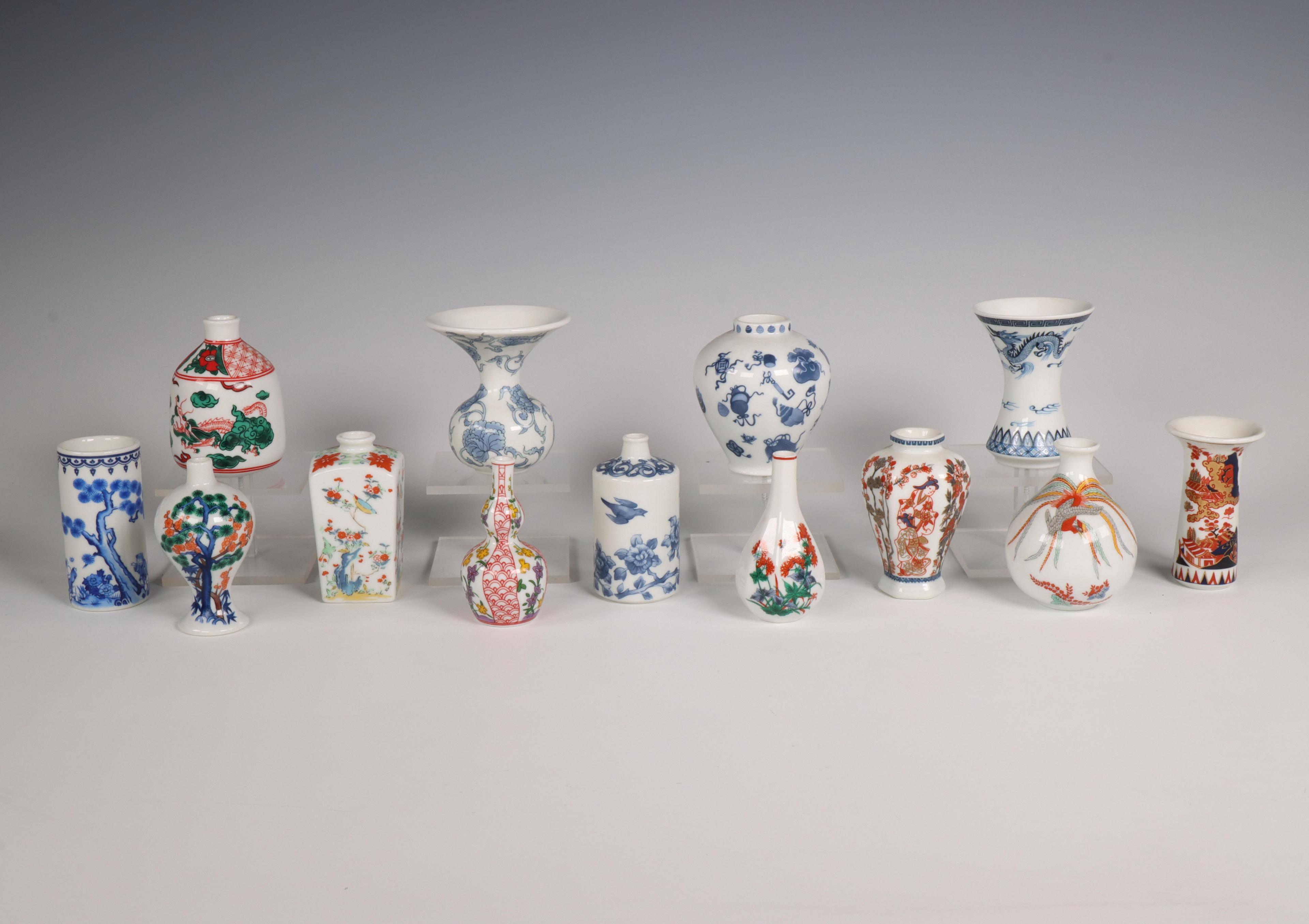 Japan, collectie gekleurde en blauw-witte porseleinen miniatuurvaasjes, modern,