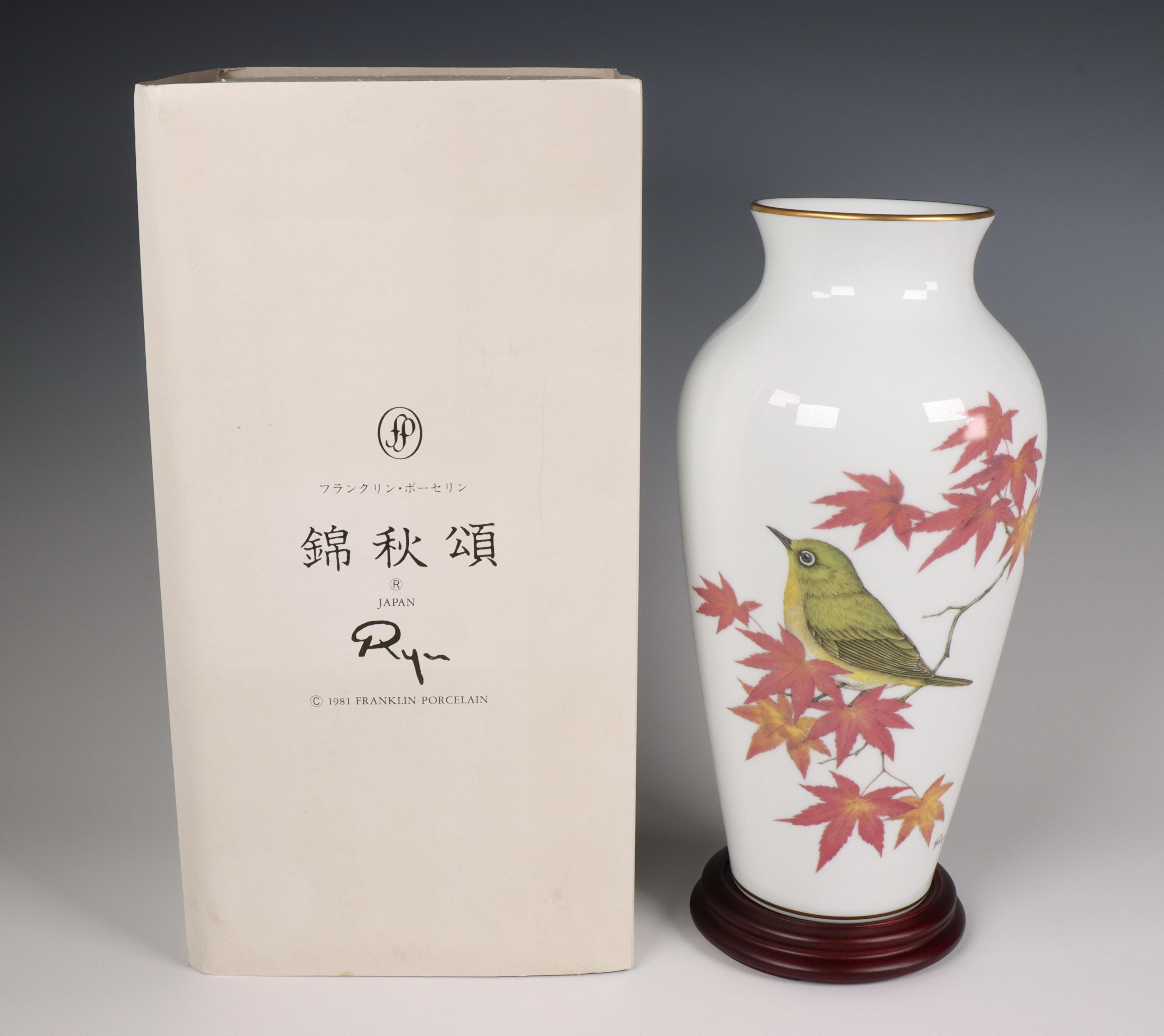 Franklin porcelain, een porseleinen vaas 'Herfst Gezellen' door Ryu Okazaki, 1981,