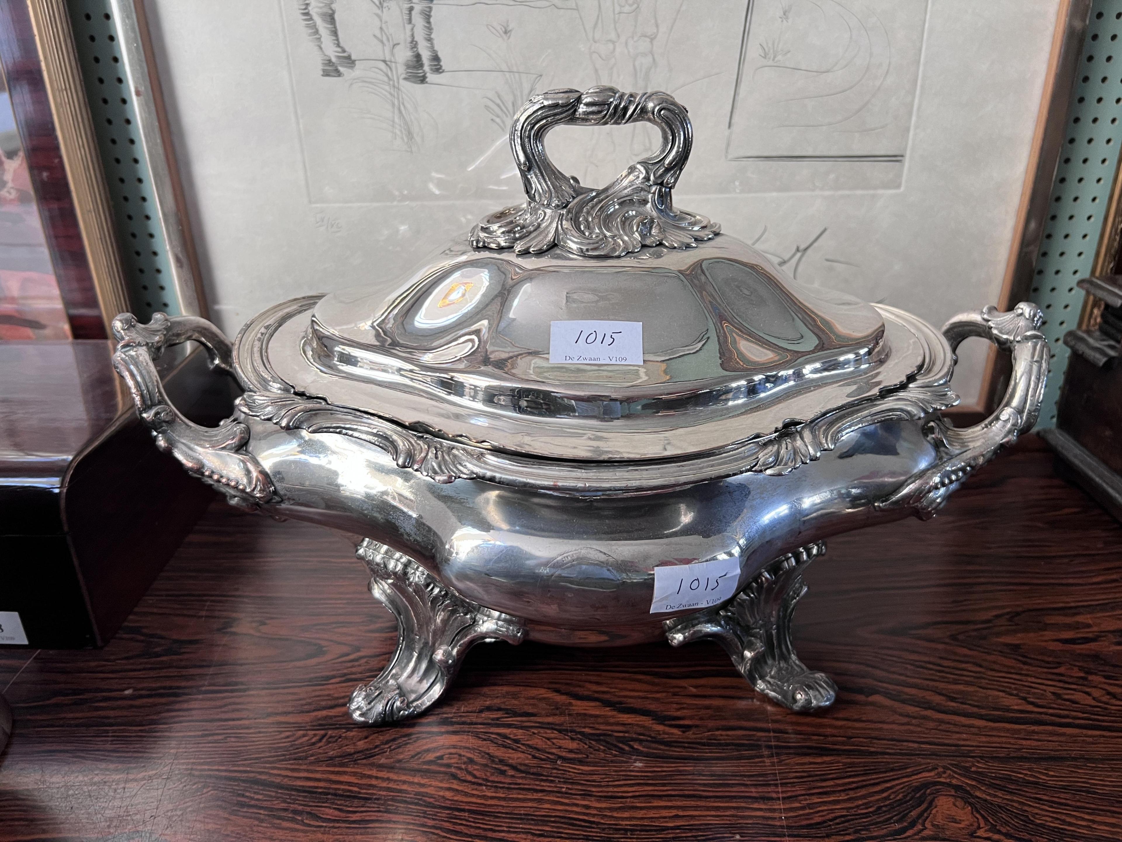 ovaal model over vier acanthusbladvormige poten, aan een zijde cirkel met onduidelijke inscriptie, gemerkt(niet geïdentificeerd), op enkele plekken sleets,