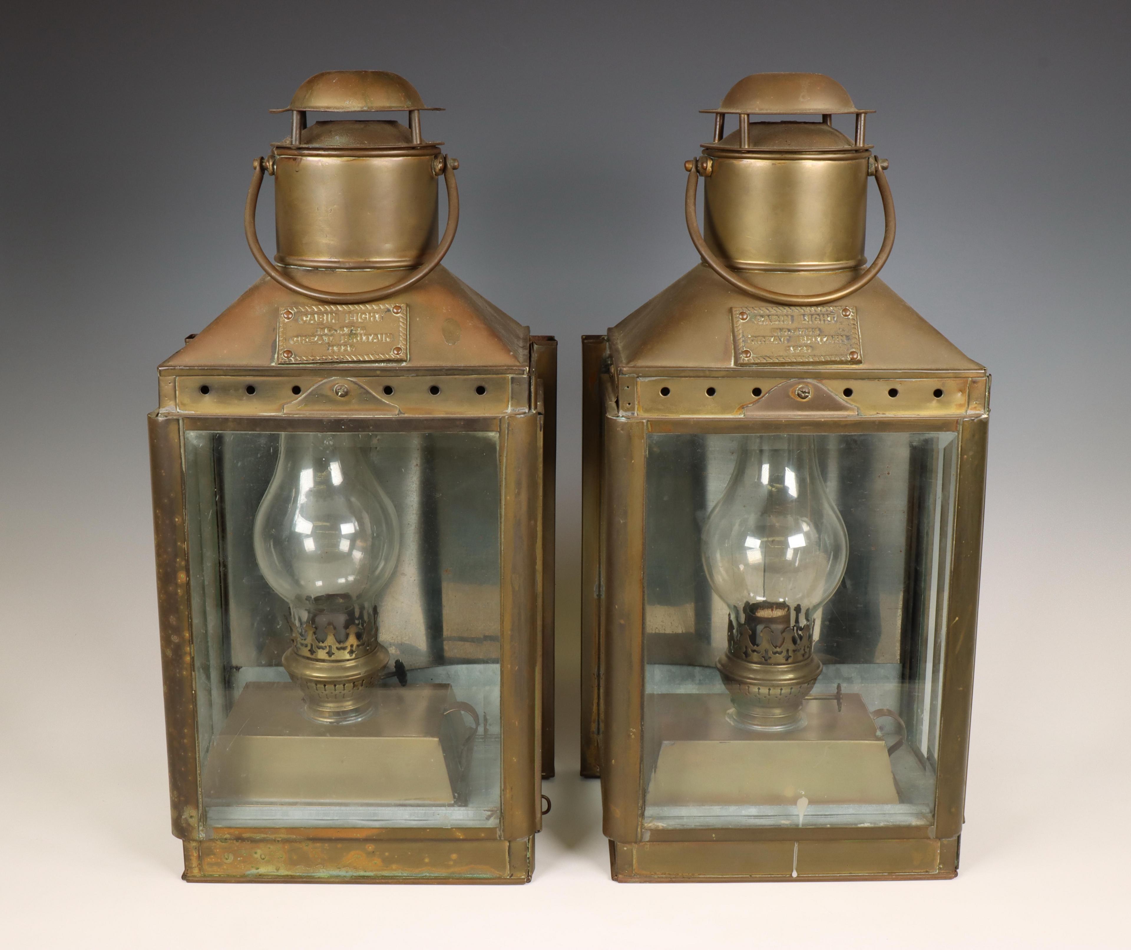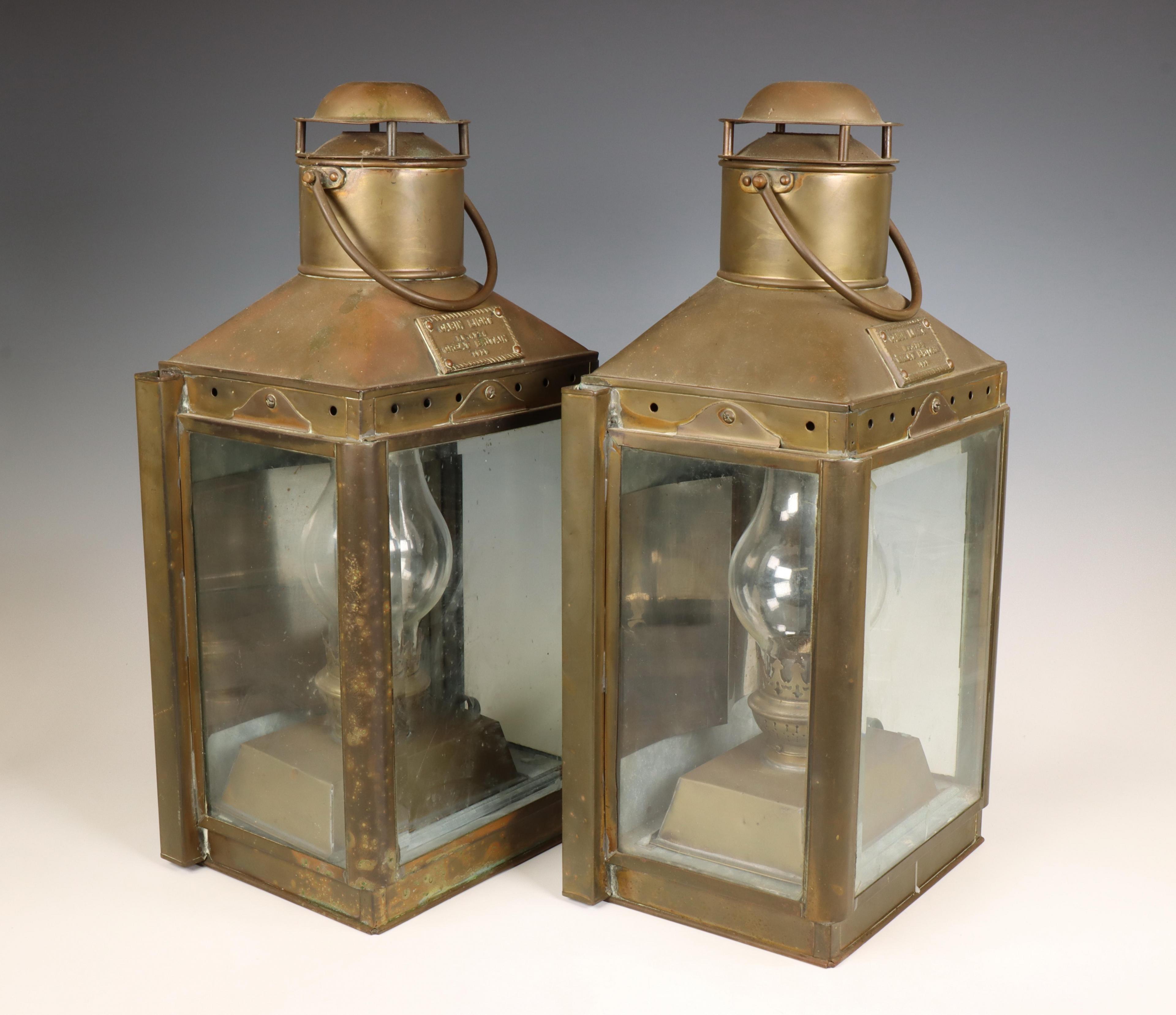Twee koperen lantarens, 'Cabin Light No. 1754, Great Britain, 1929',