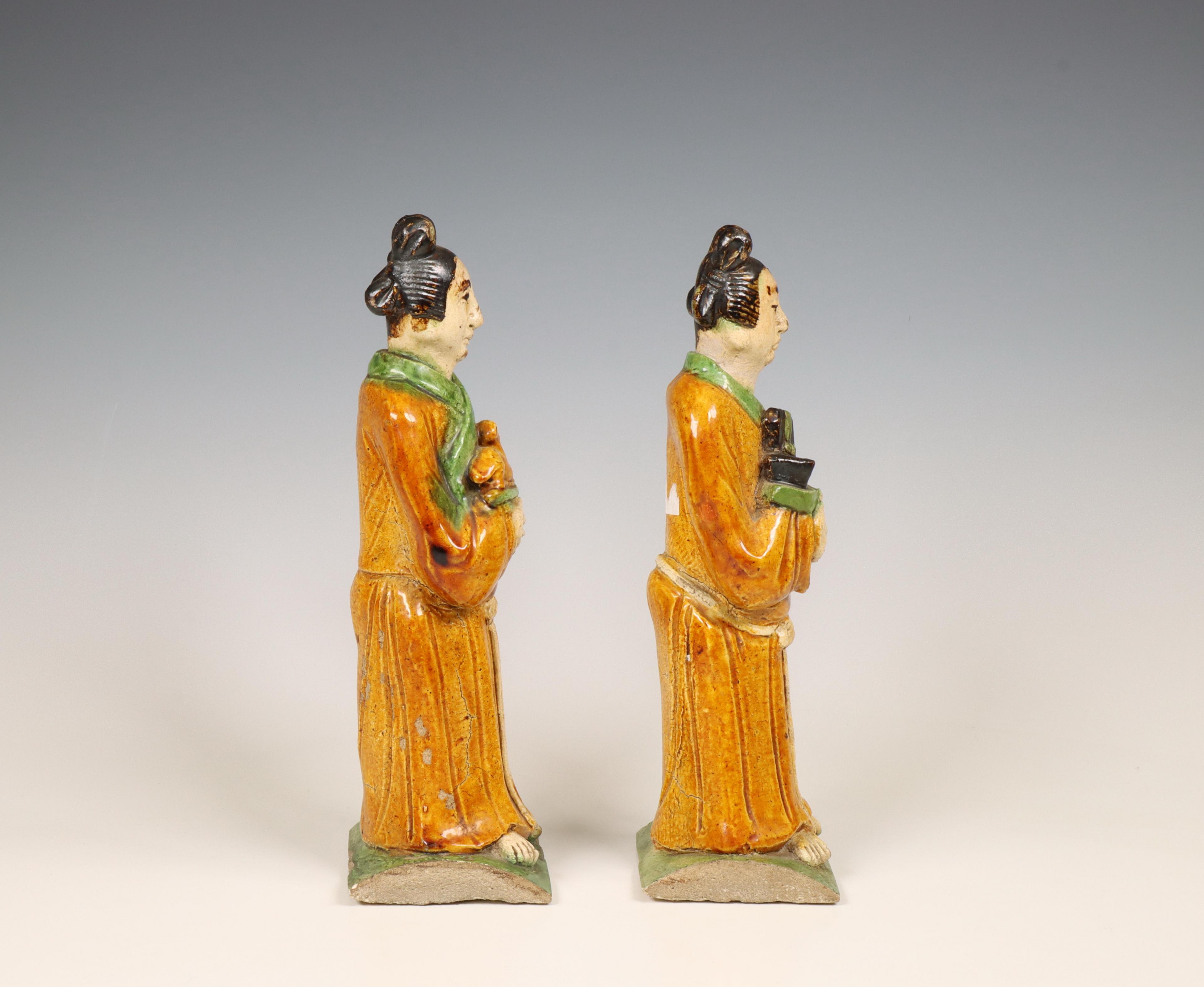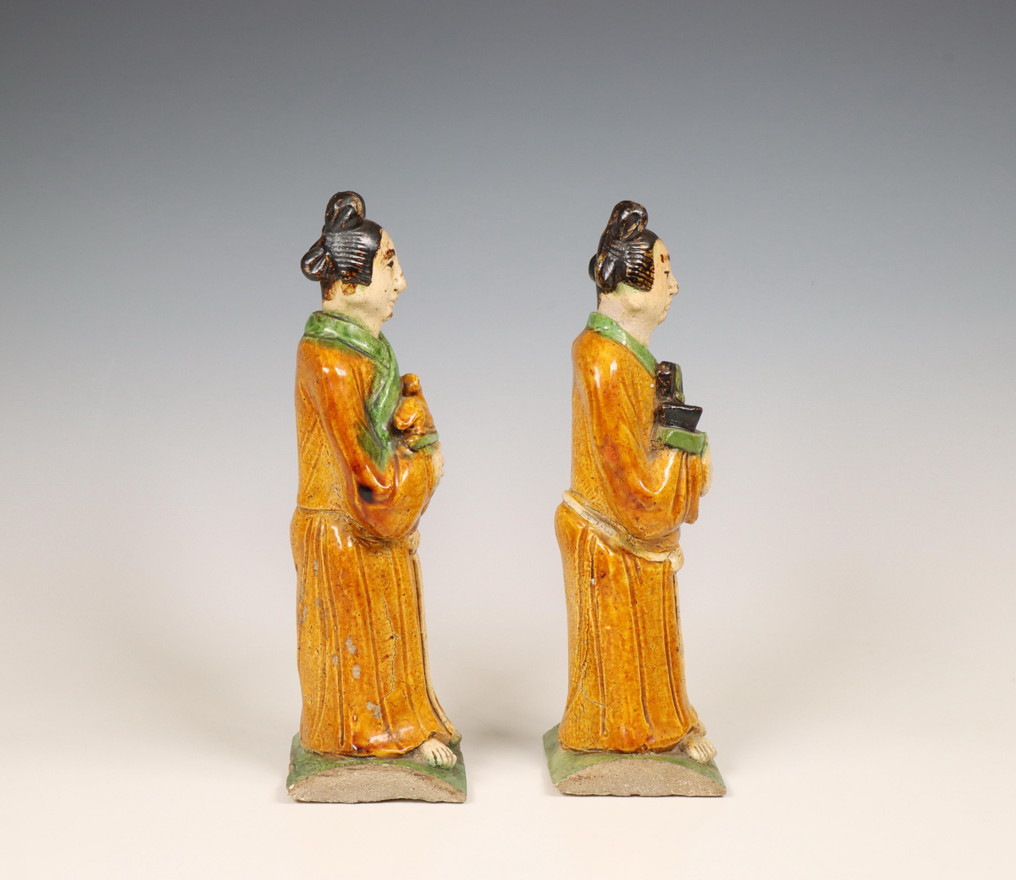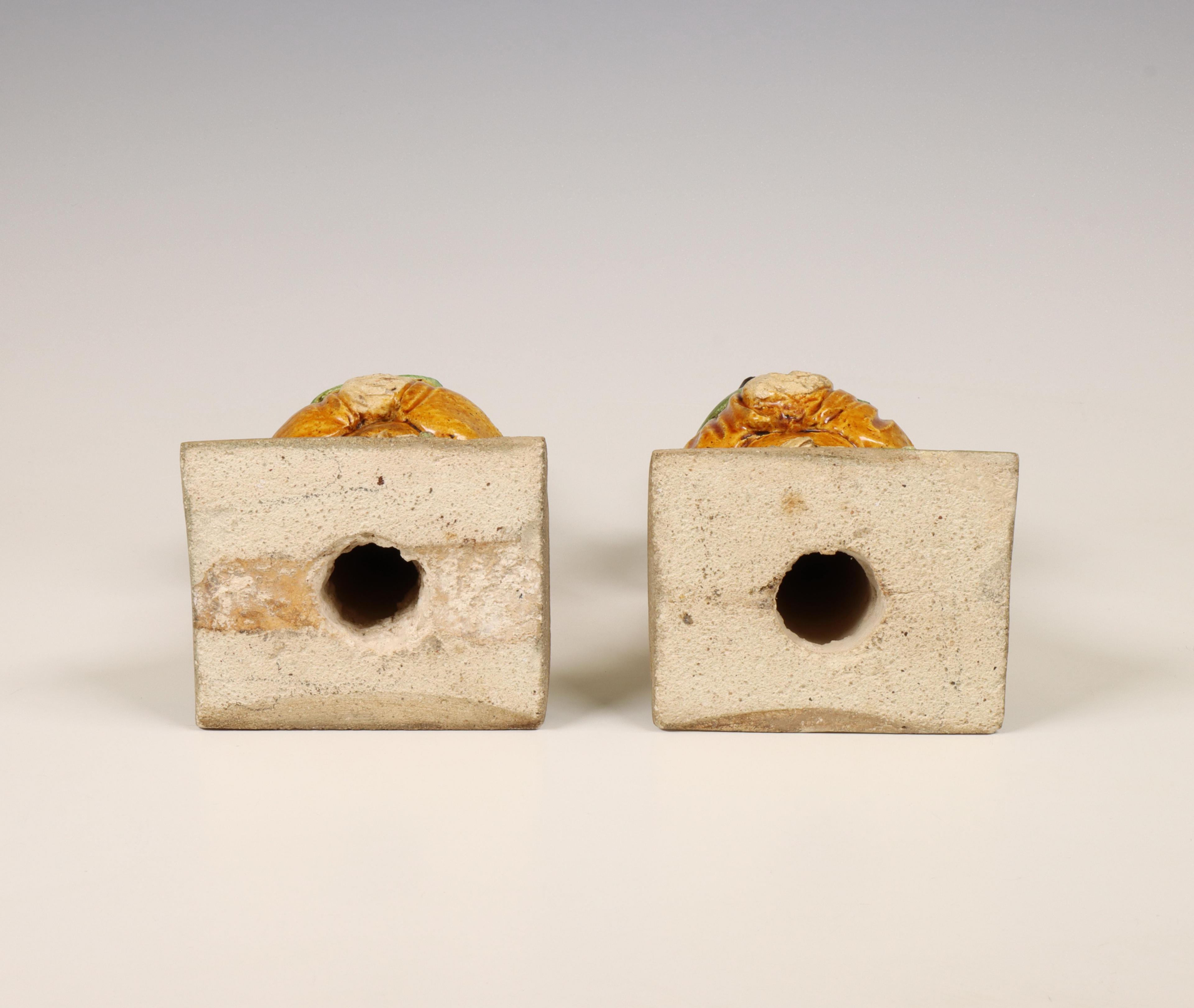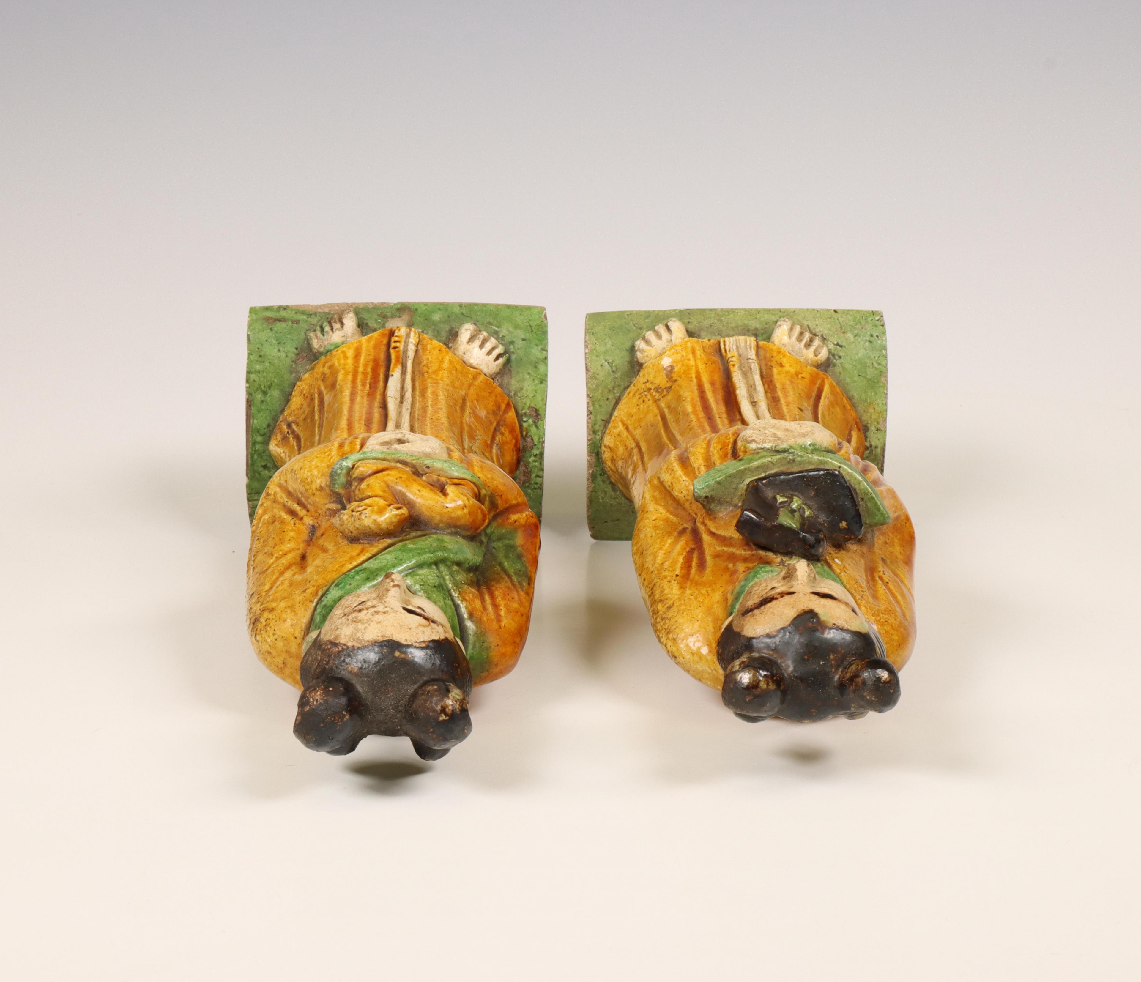 China, two Sancai-glazed pottery rooftile figures, Ming dynasty (1368-1644),