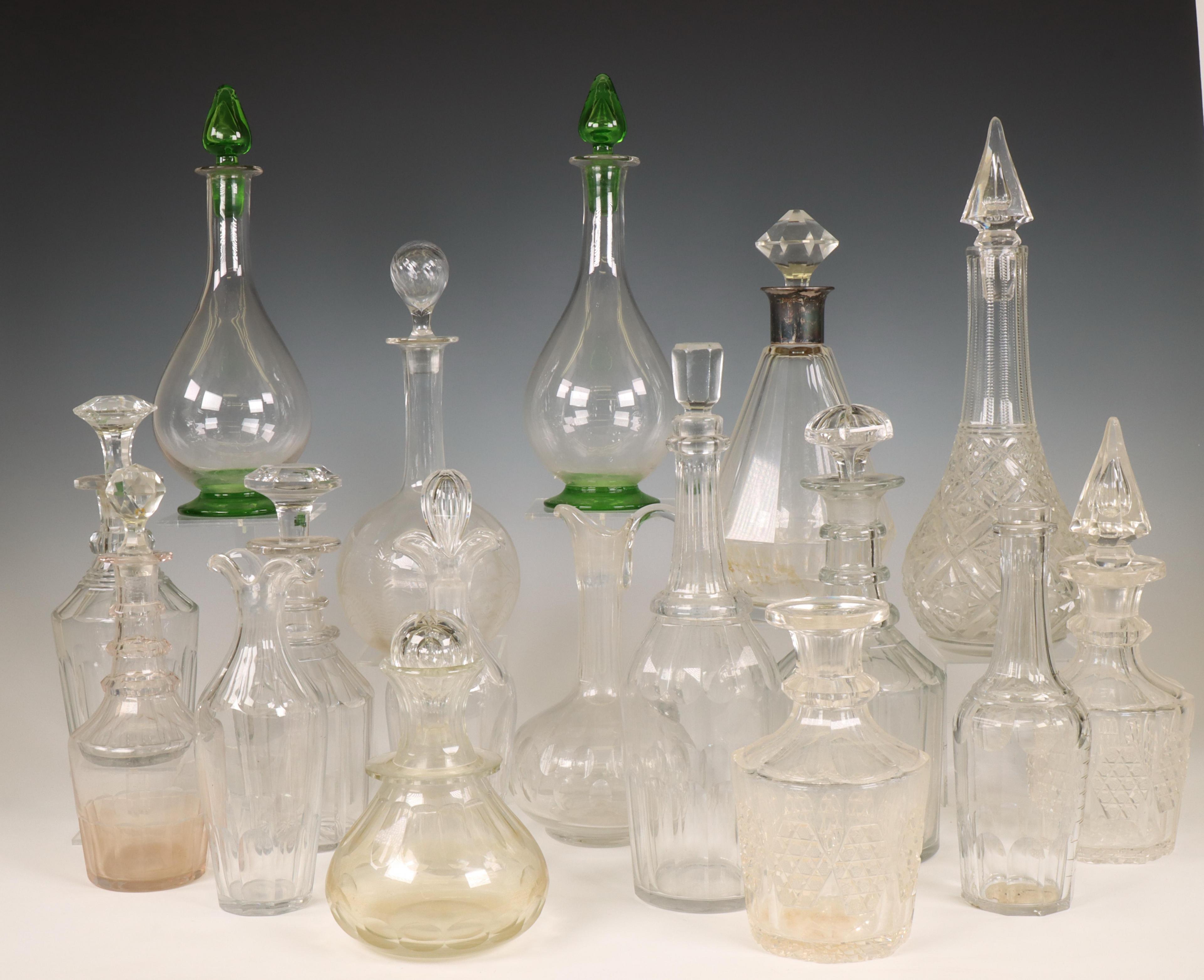 w.b. paar groen glazen buik karaffen.