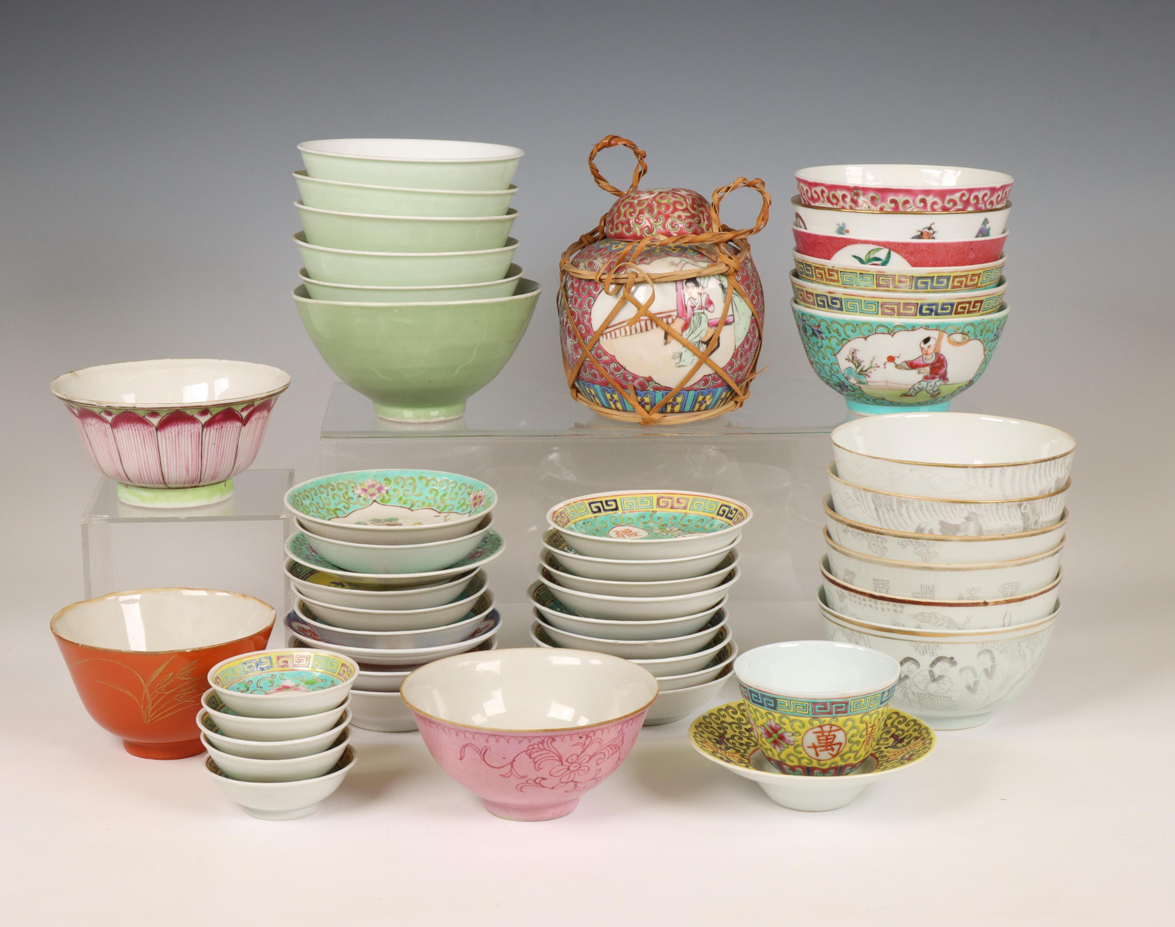 China, collectie polychrome porseleinen kommen en schotels. modern