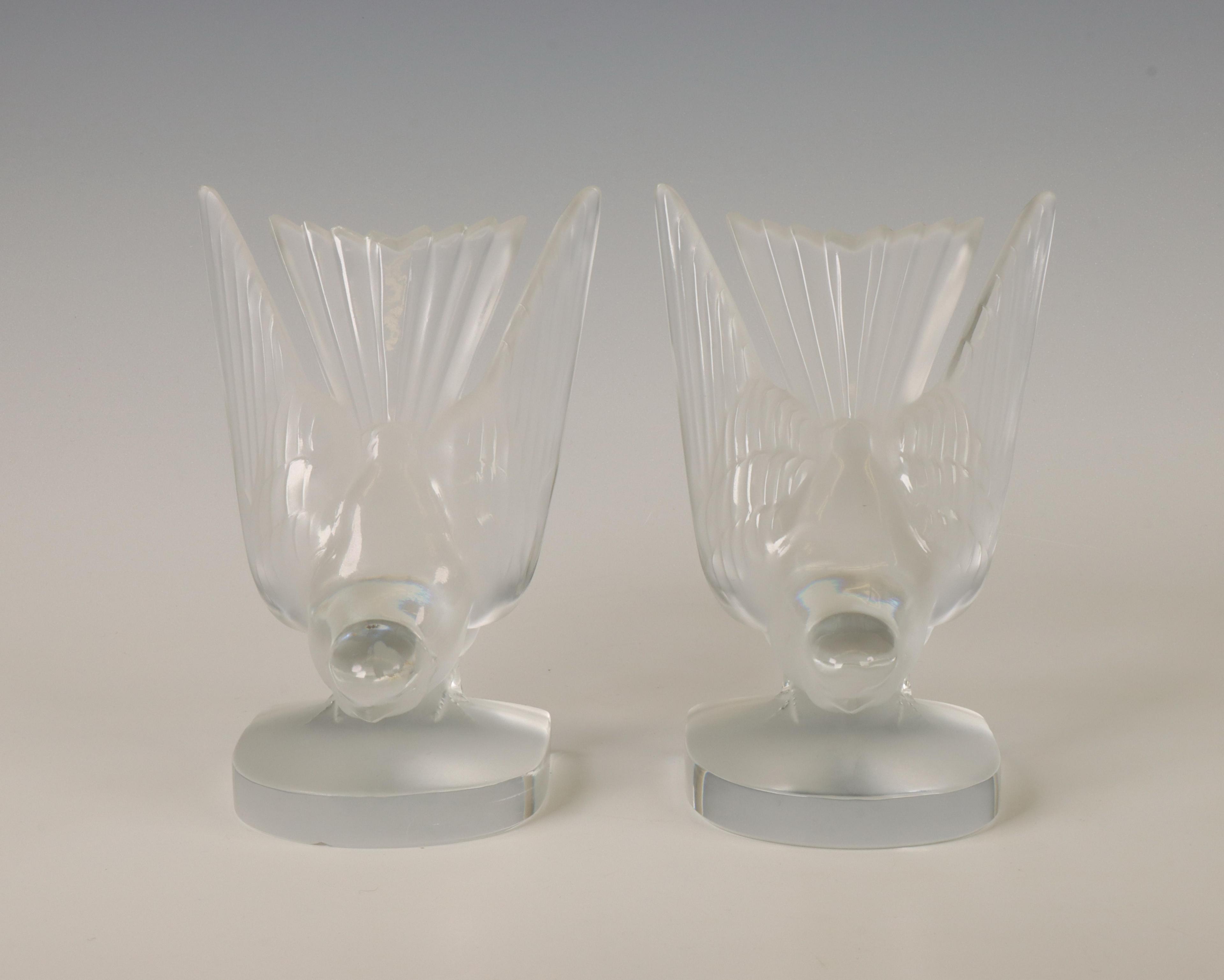 Lalique, paar persglazen en gesatineerde boekensteunen, 'Hirondelles', tweede helft 20e eeuw