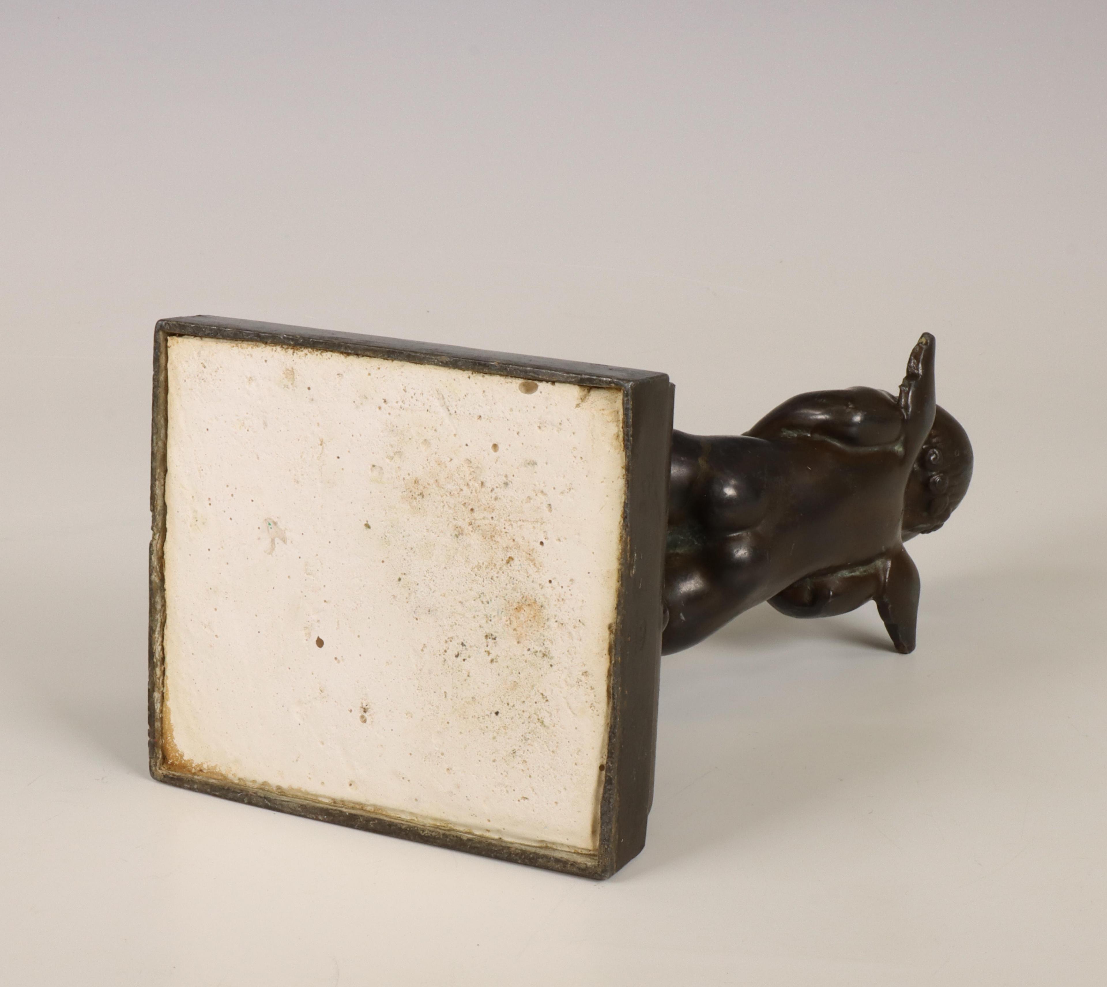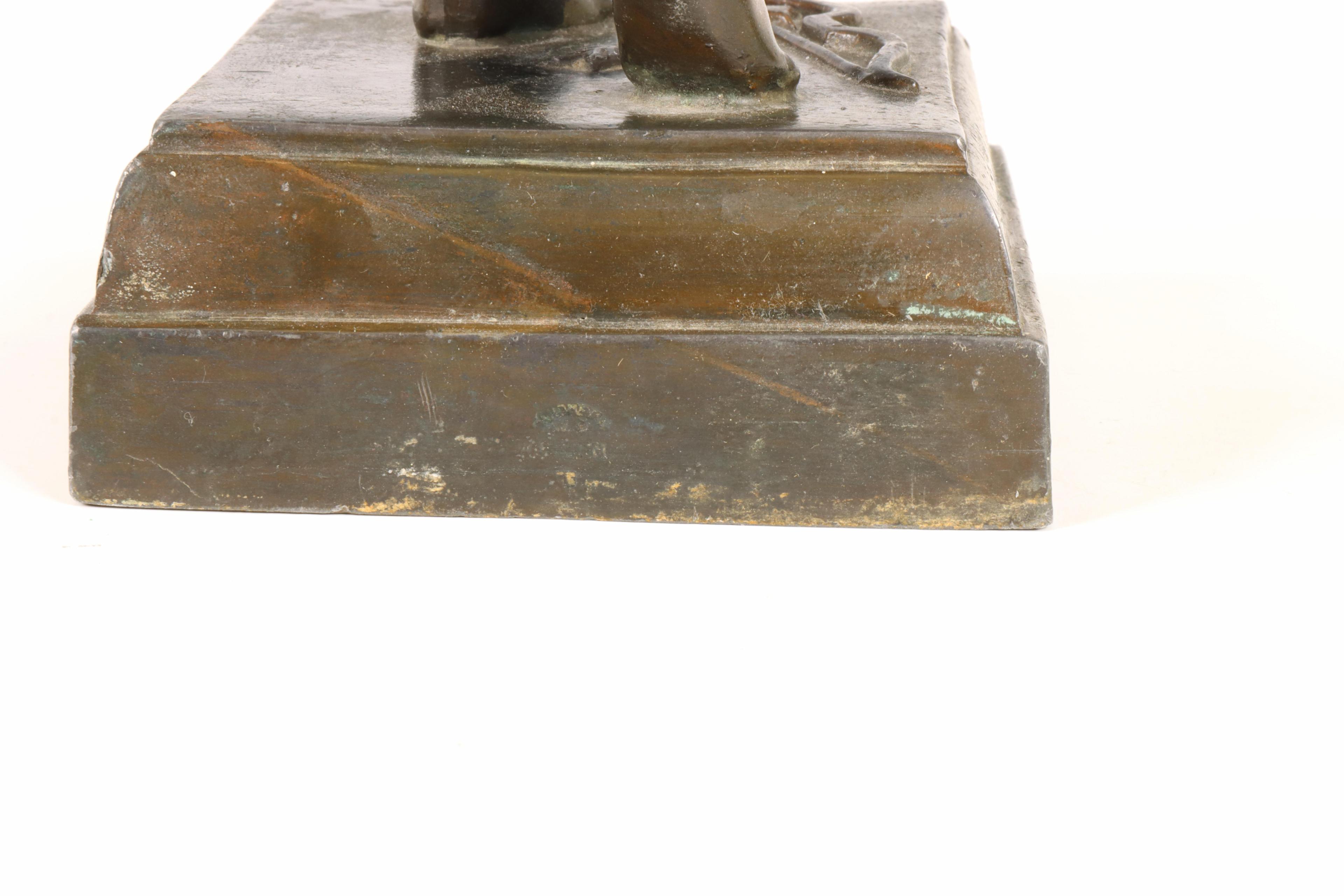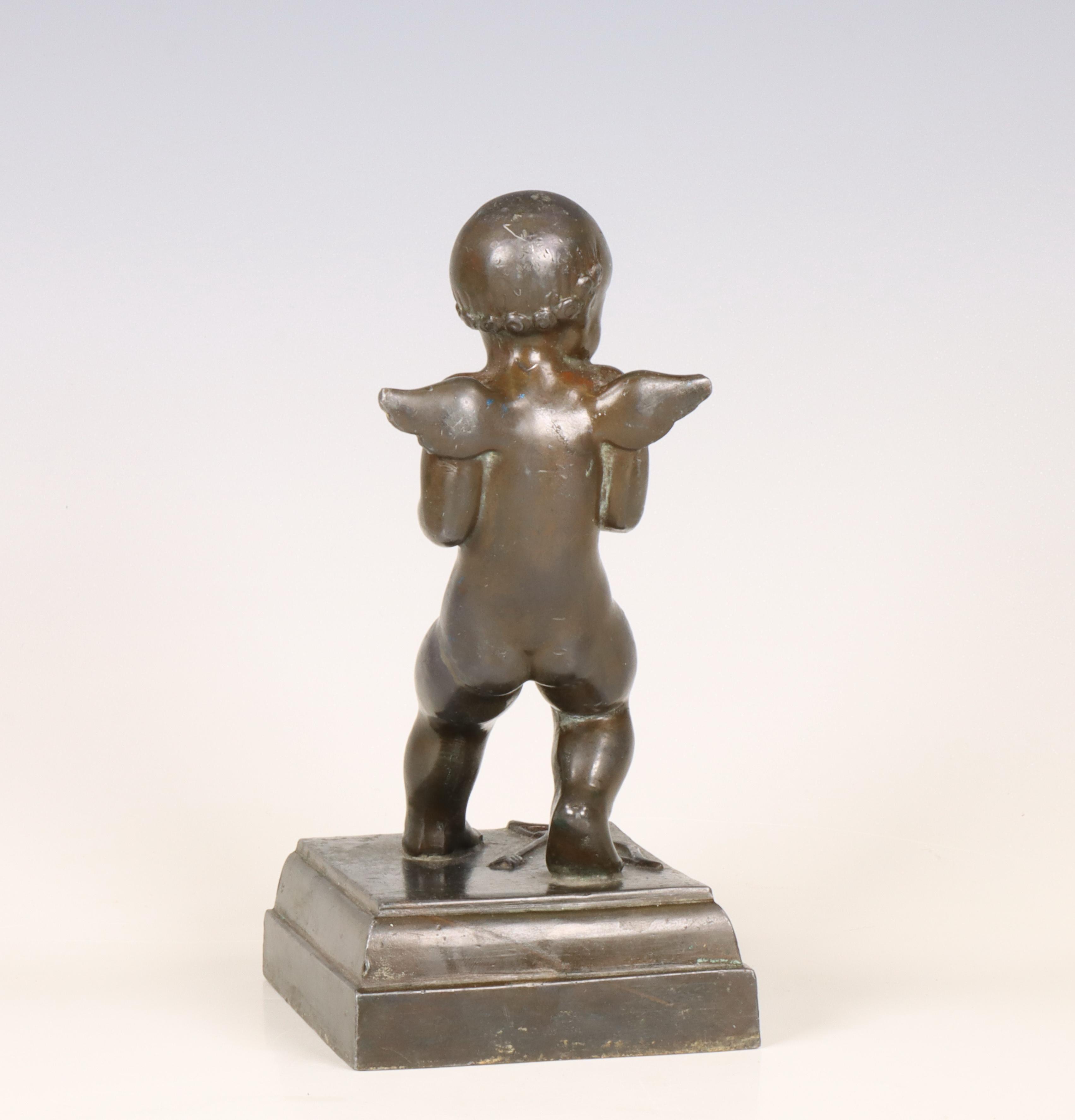 Metalen sculptuur van Cupido met hart in zijn handen, ca. 1930.