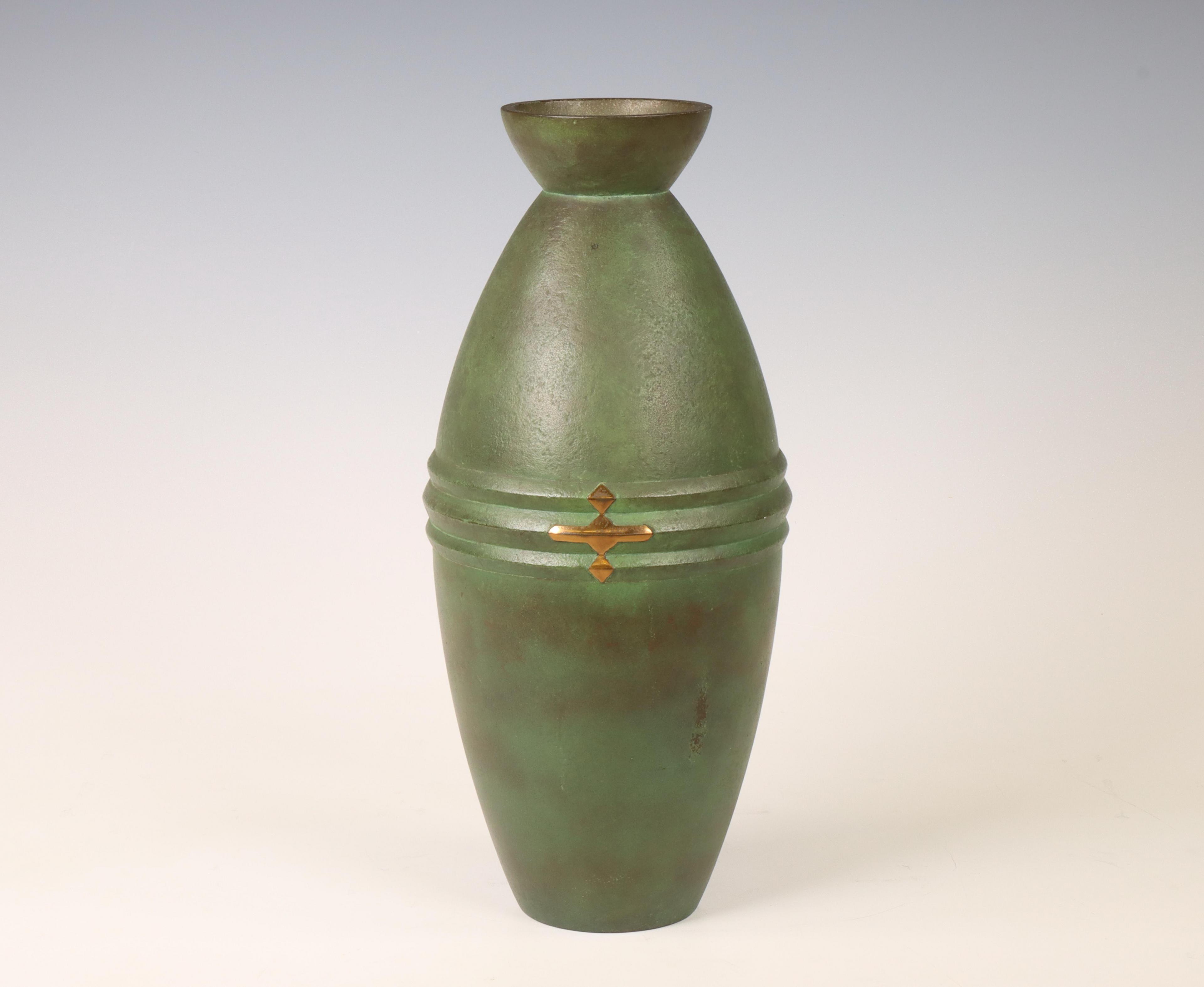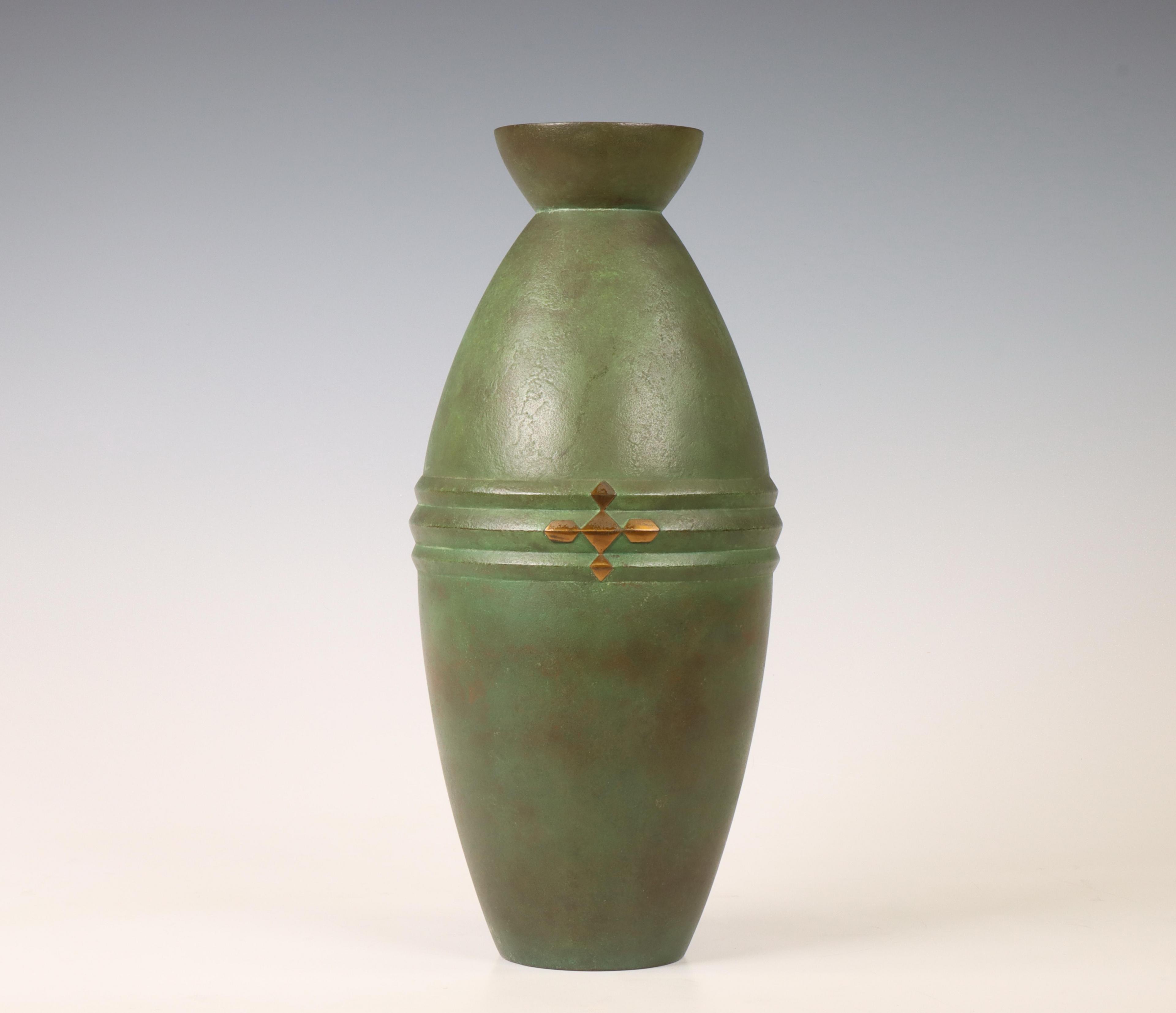 Japan, green patinated bronze Art Deco vase, signed Neya Churoku (1897-1987), Showa period (1926-1989),