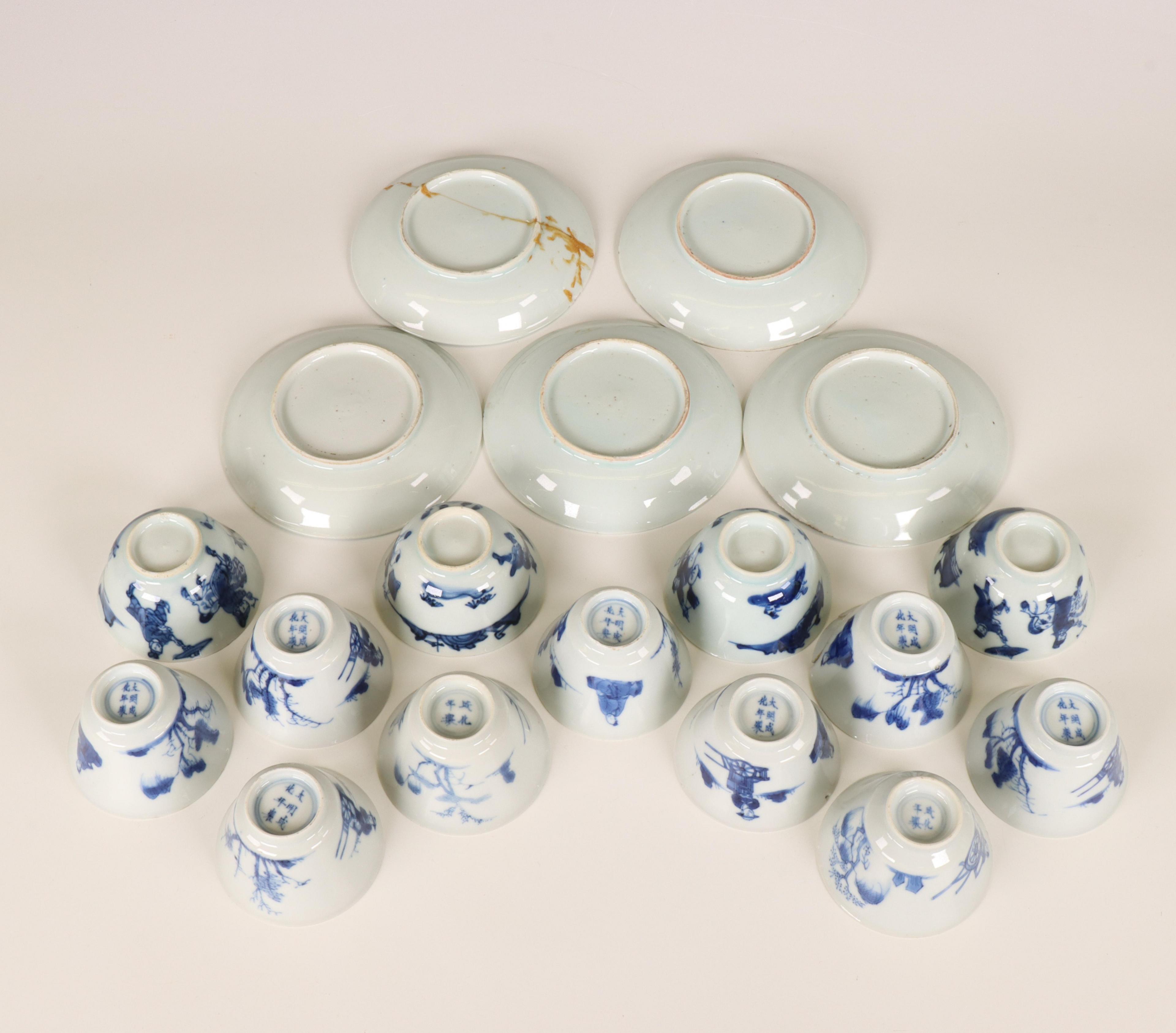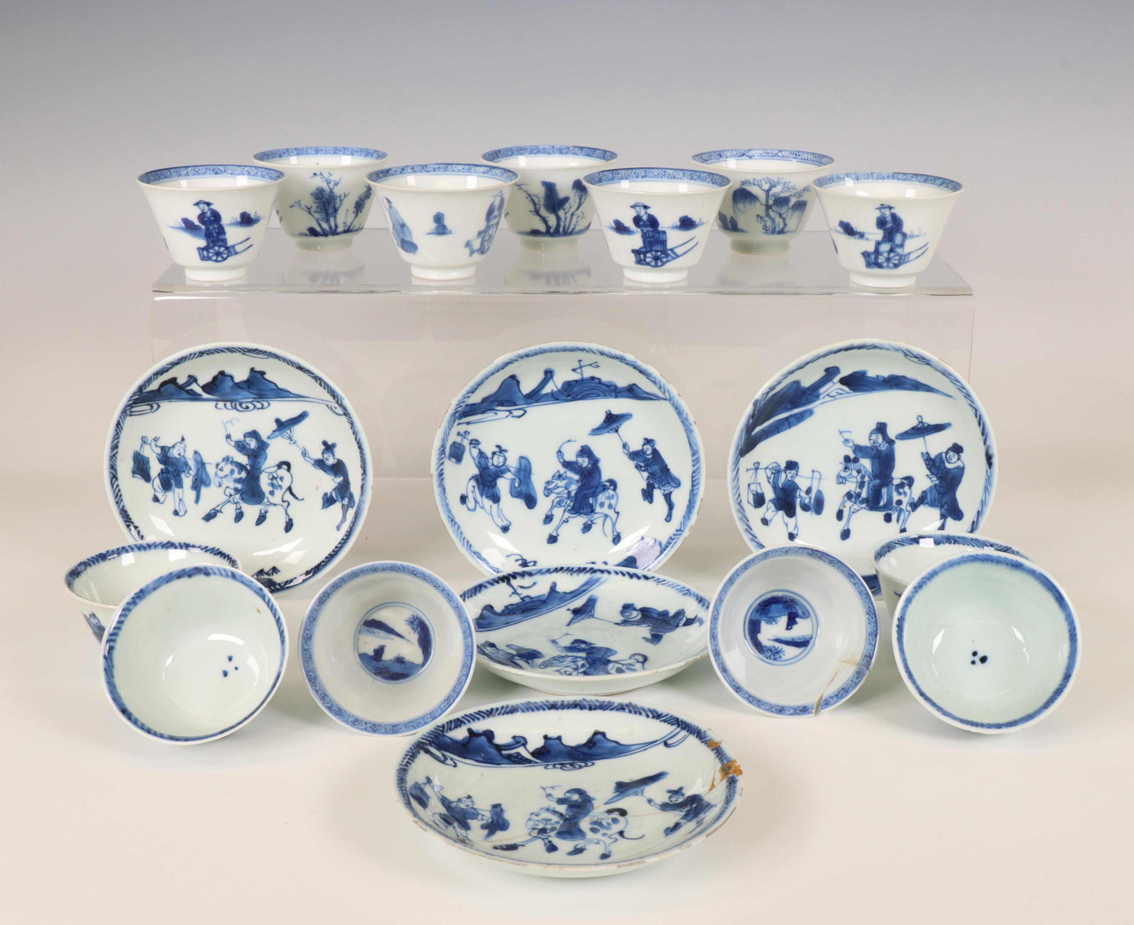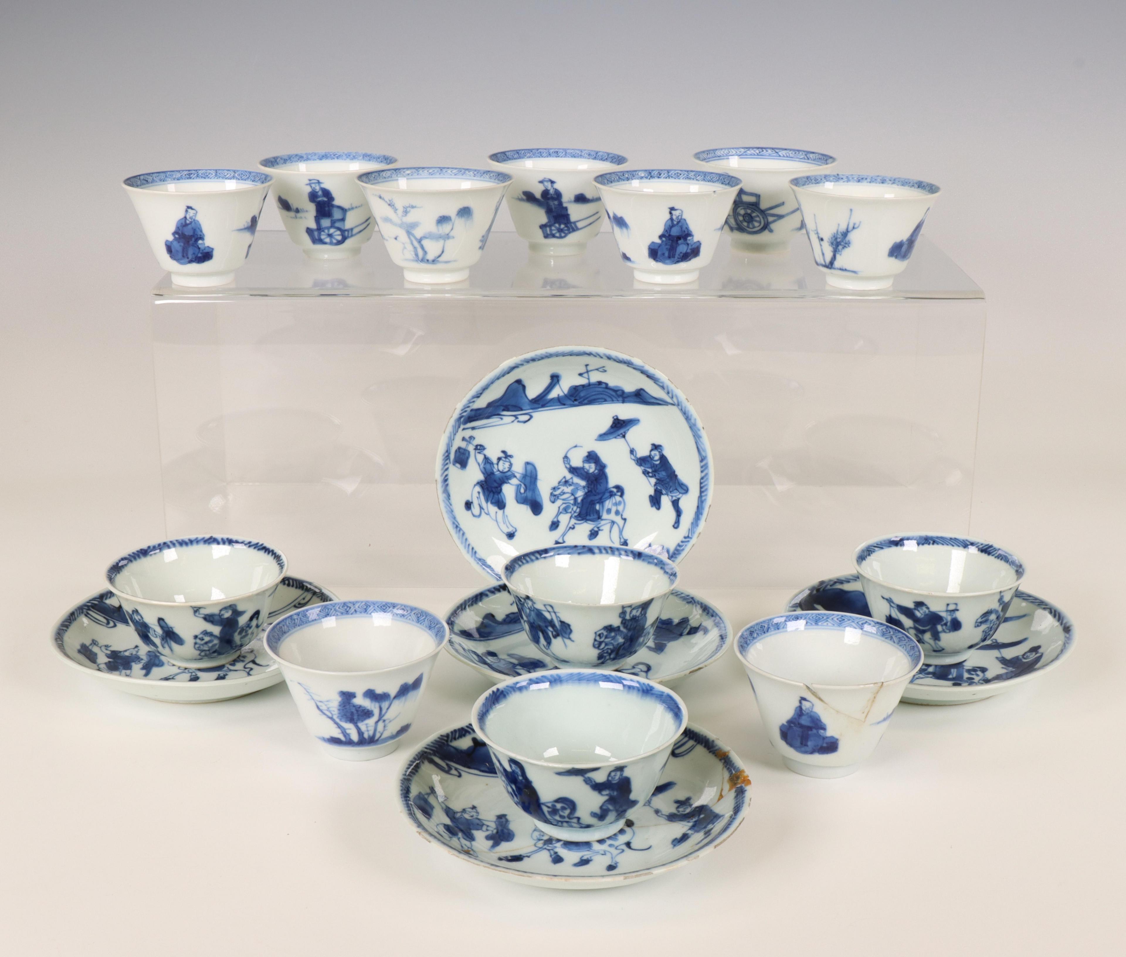 China, collection of blue and white porcelain cups and saucers, mainly 18th century,