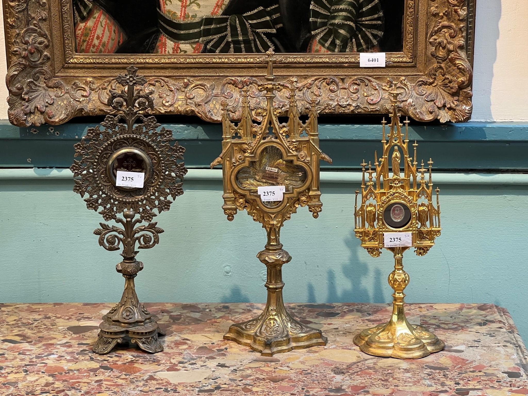 Allen gegoten metaal, twee verguld, in neo-gotische stijl