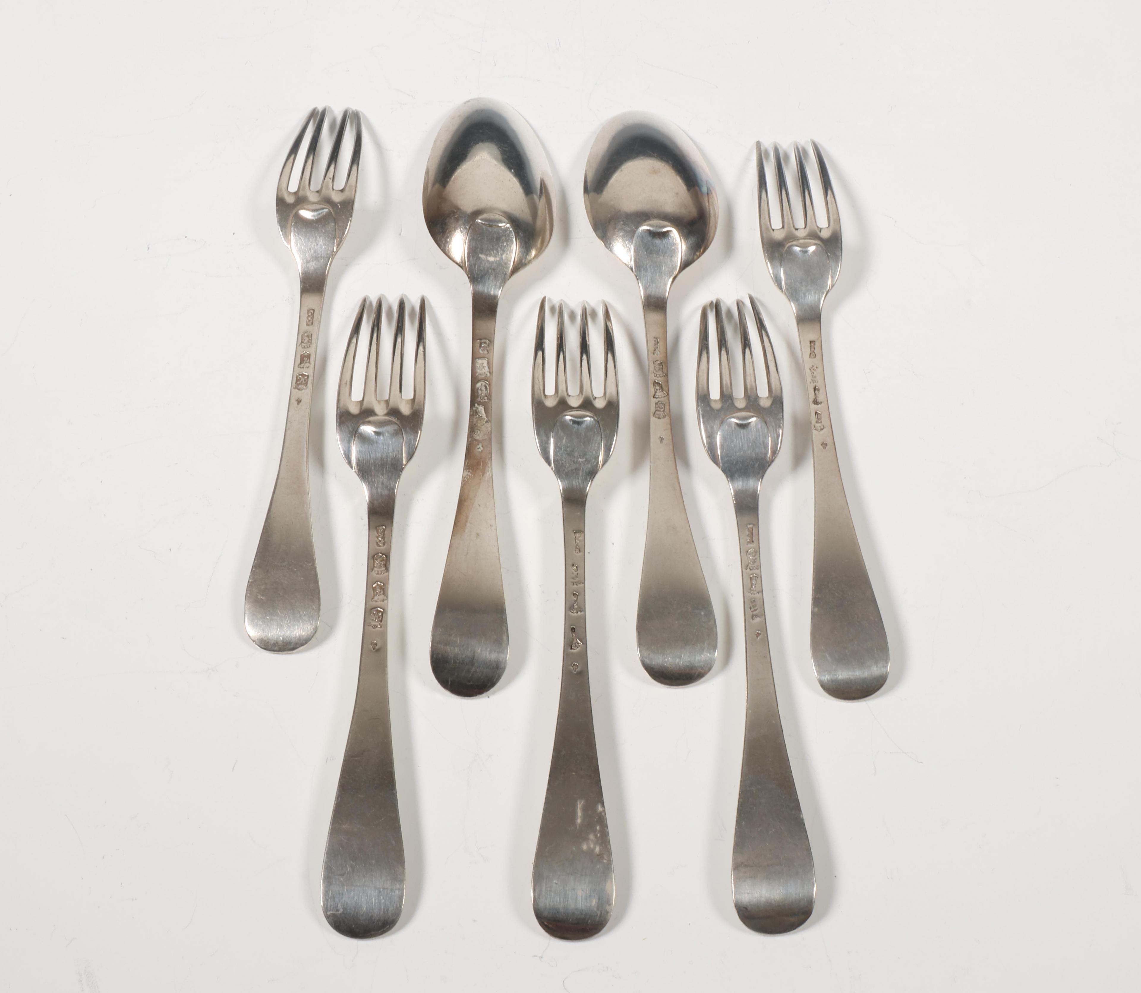 Set van vijf vorken en twee lepels, 18e eeuw,