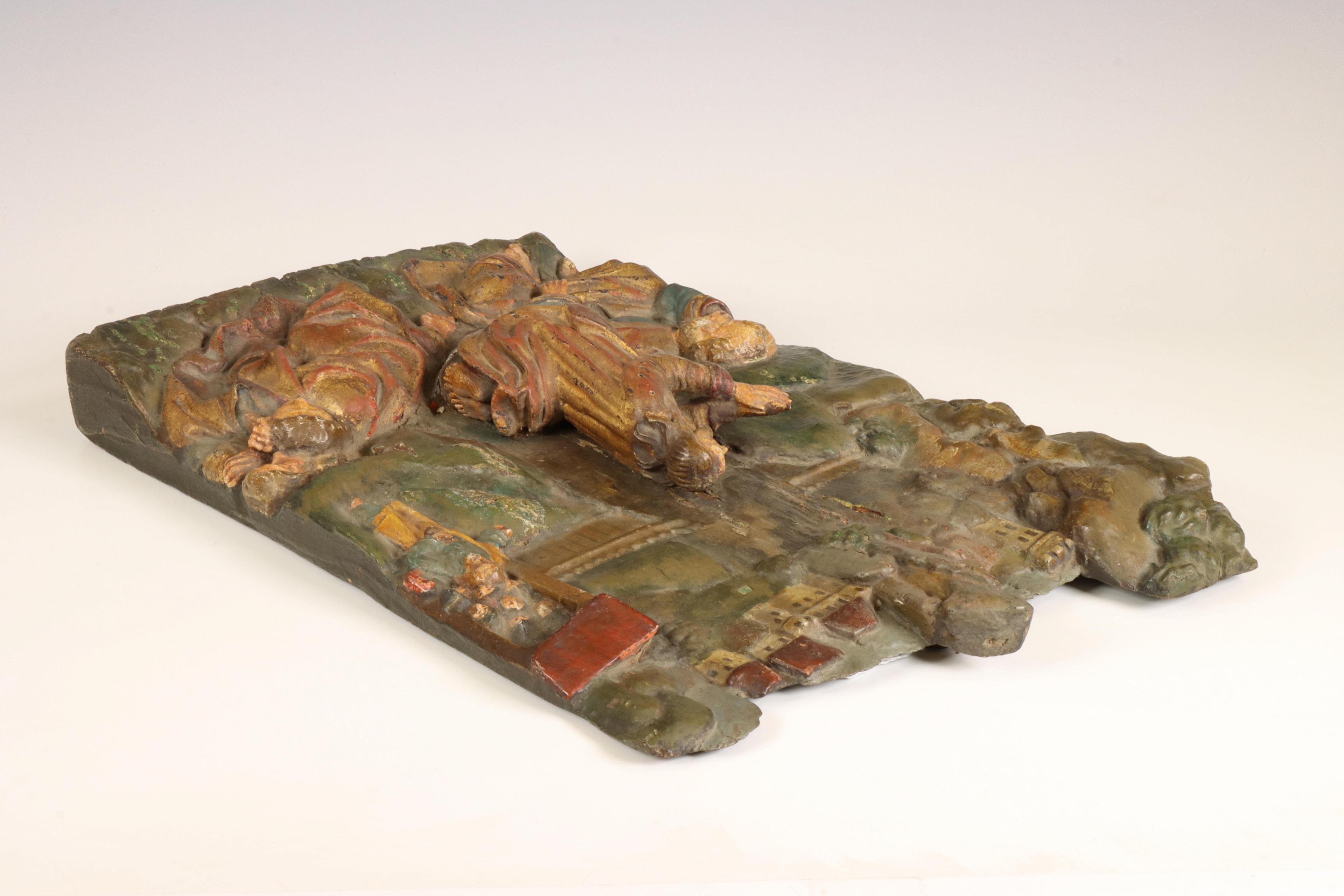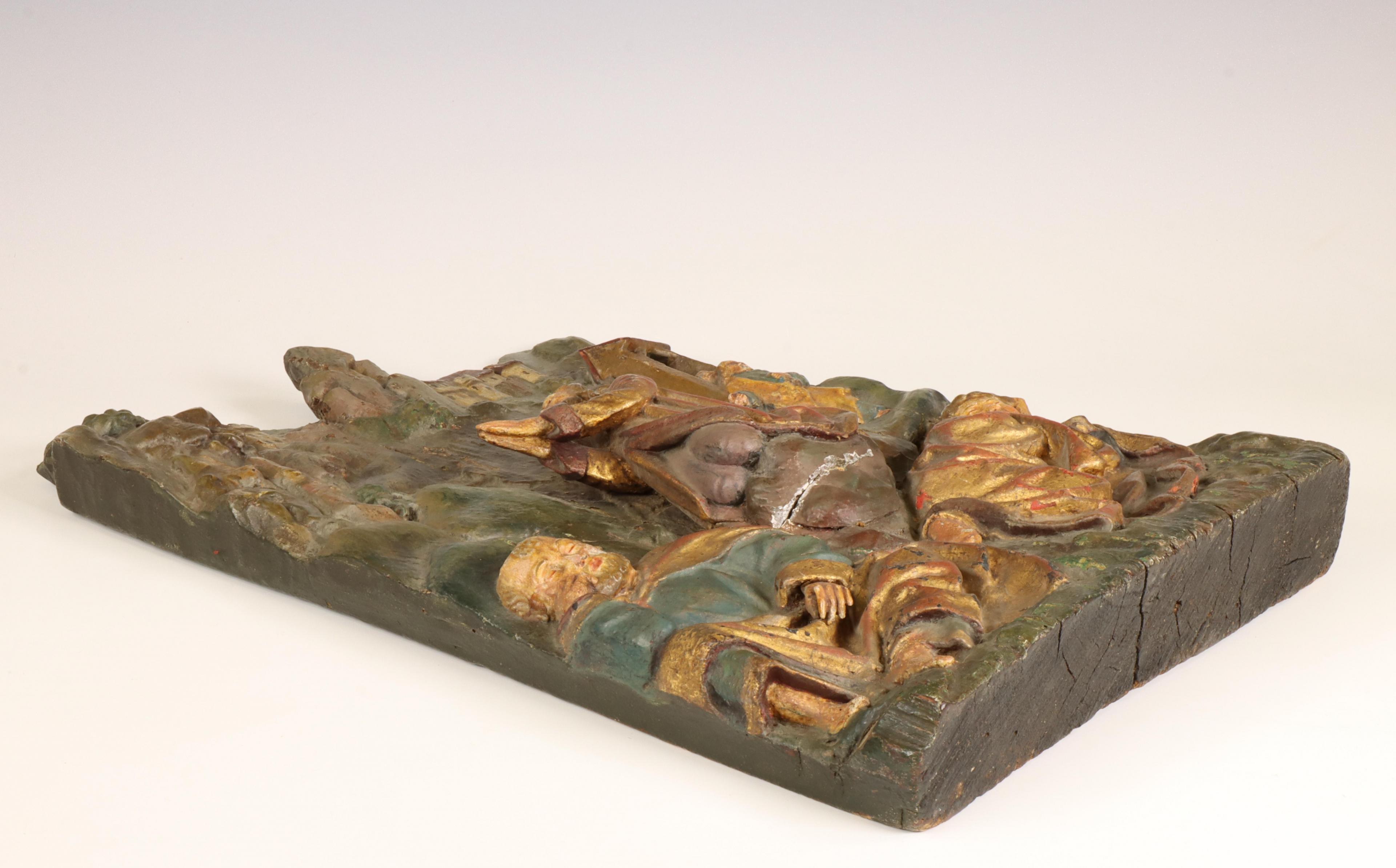 Duitsland, gestoken houten en polychroom geschilderd reliëf paneel, 18e eeuw;