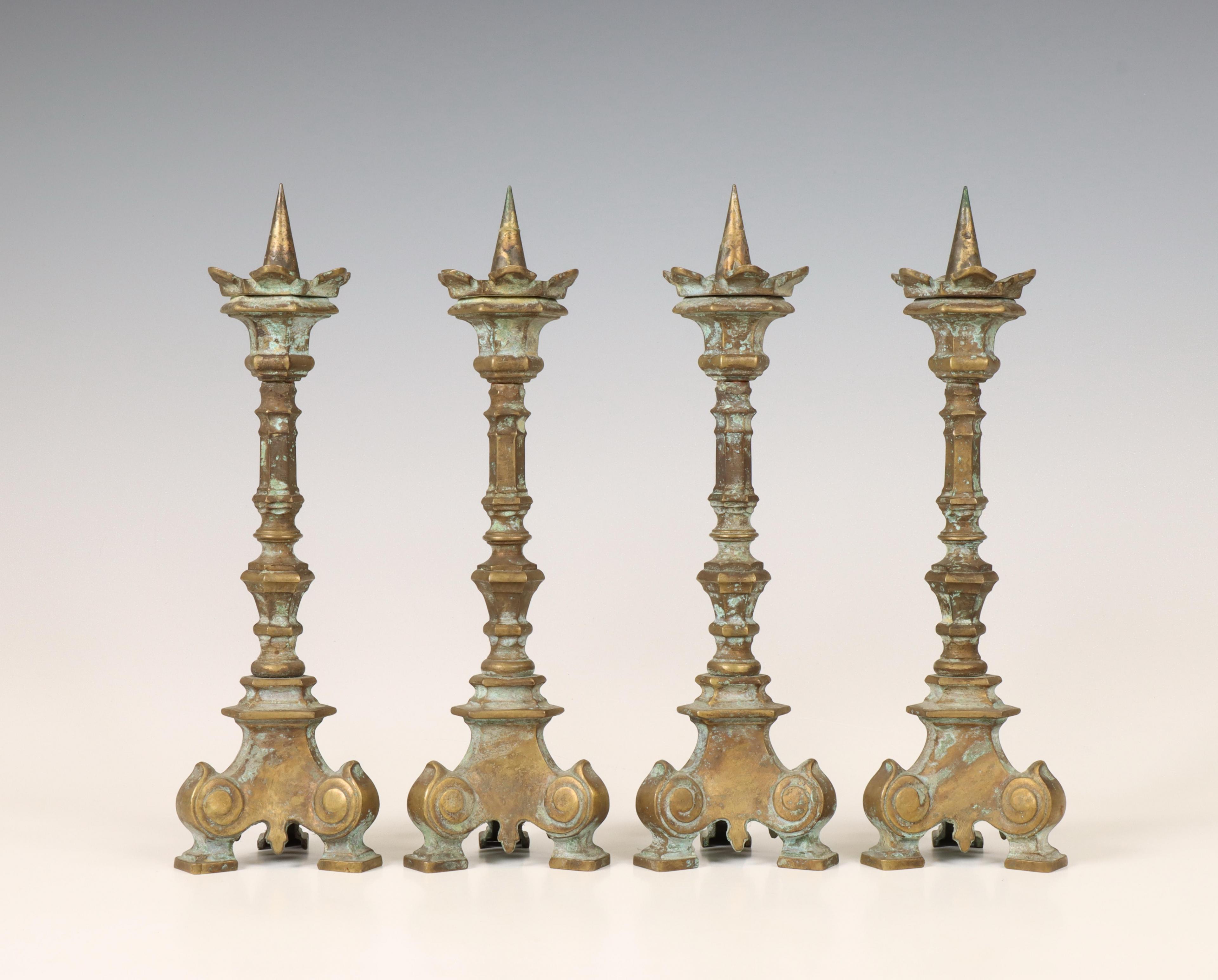 Vier koperen penkandelaars in barok stijl