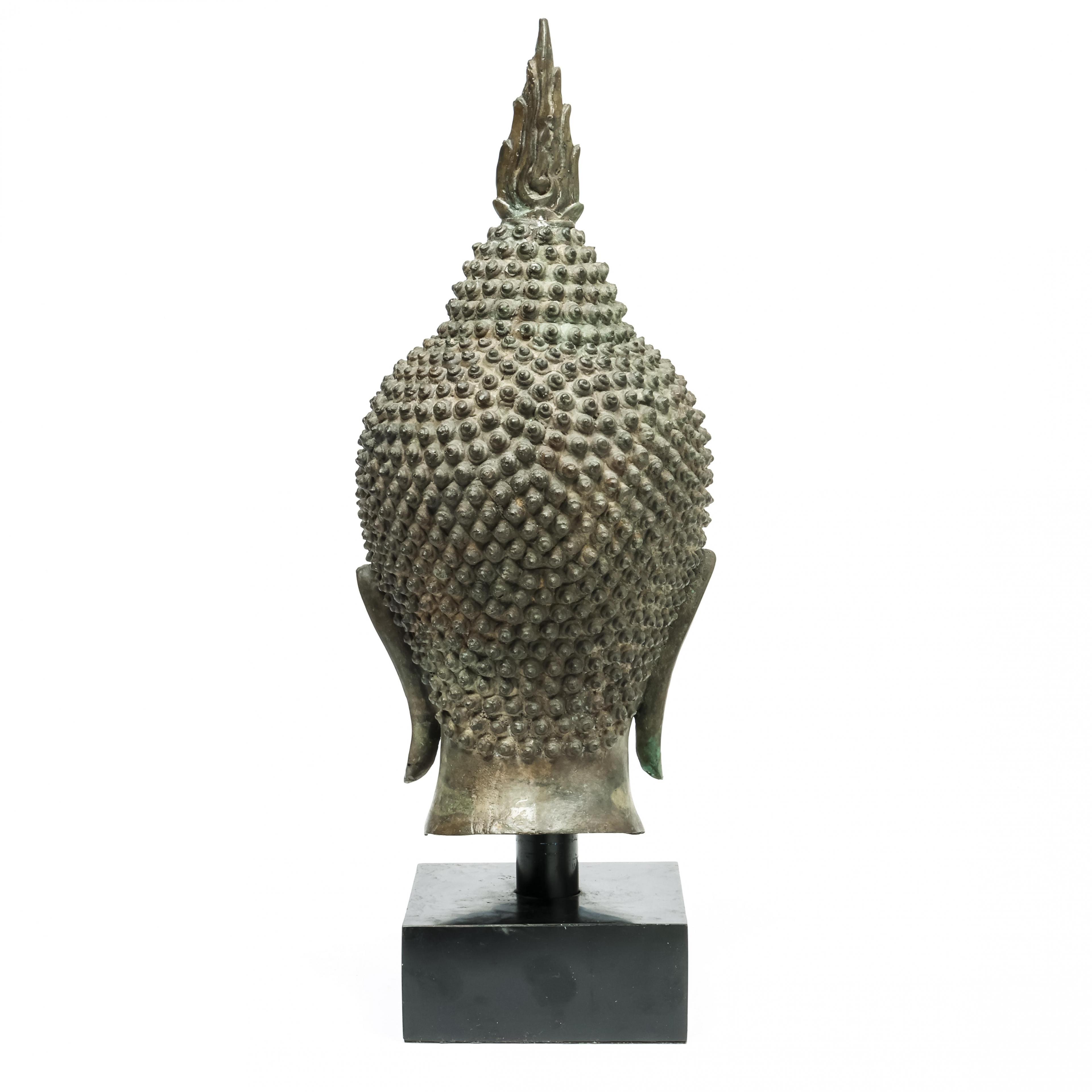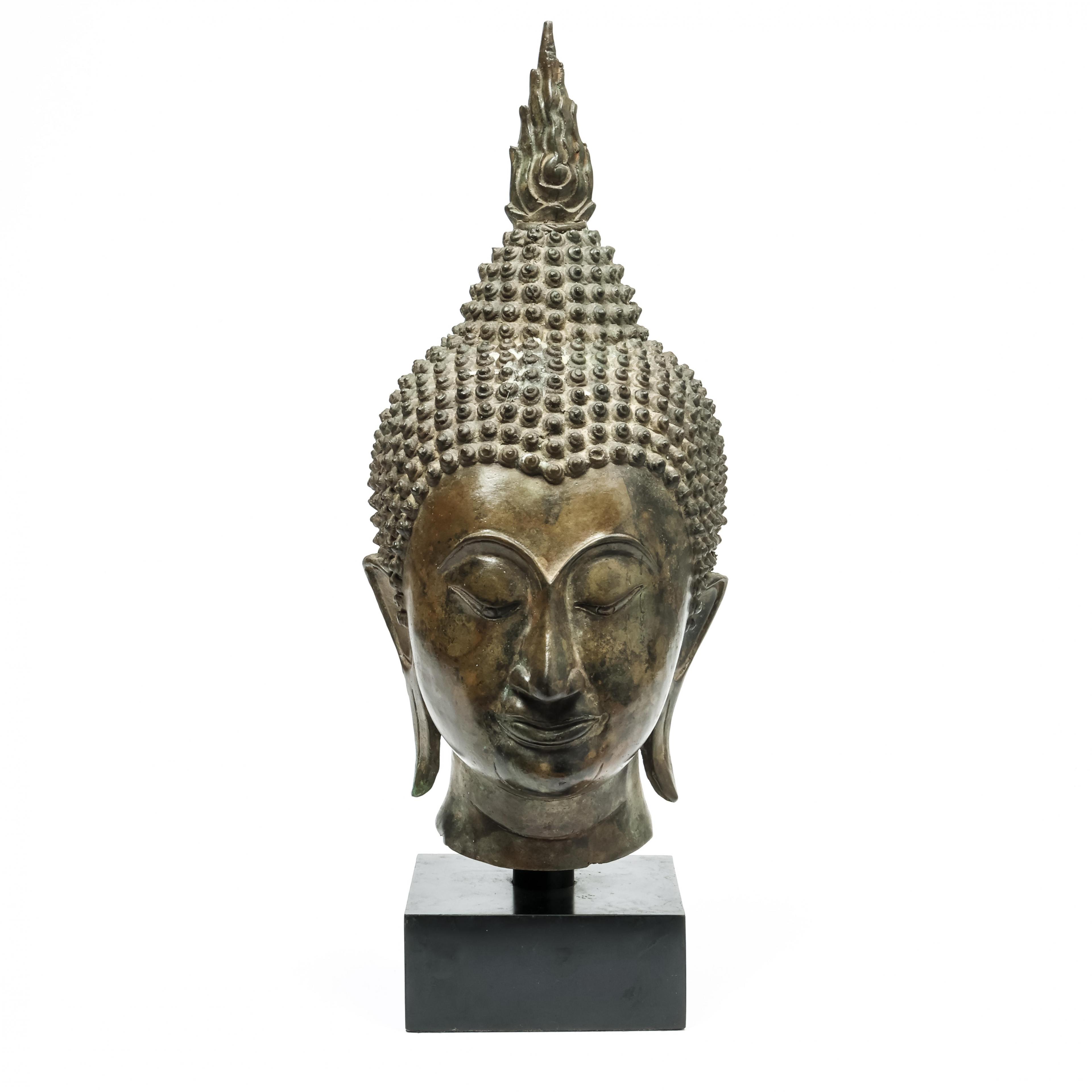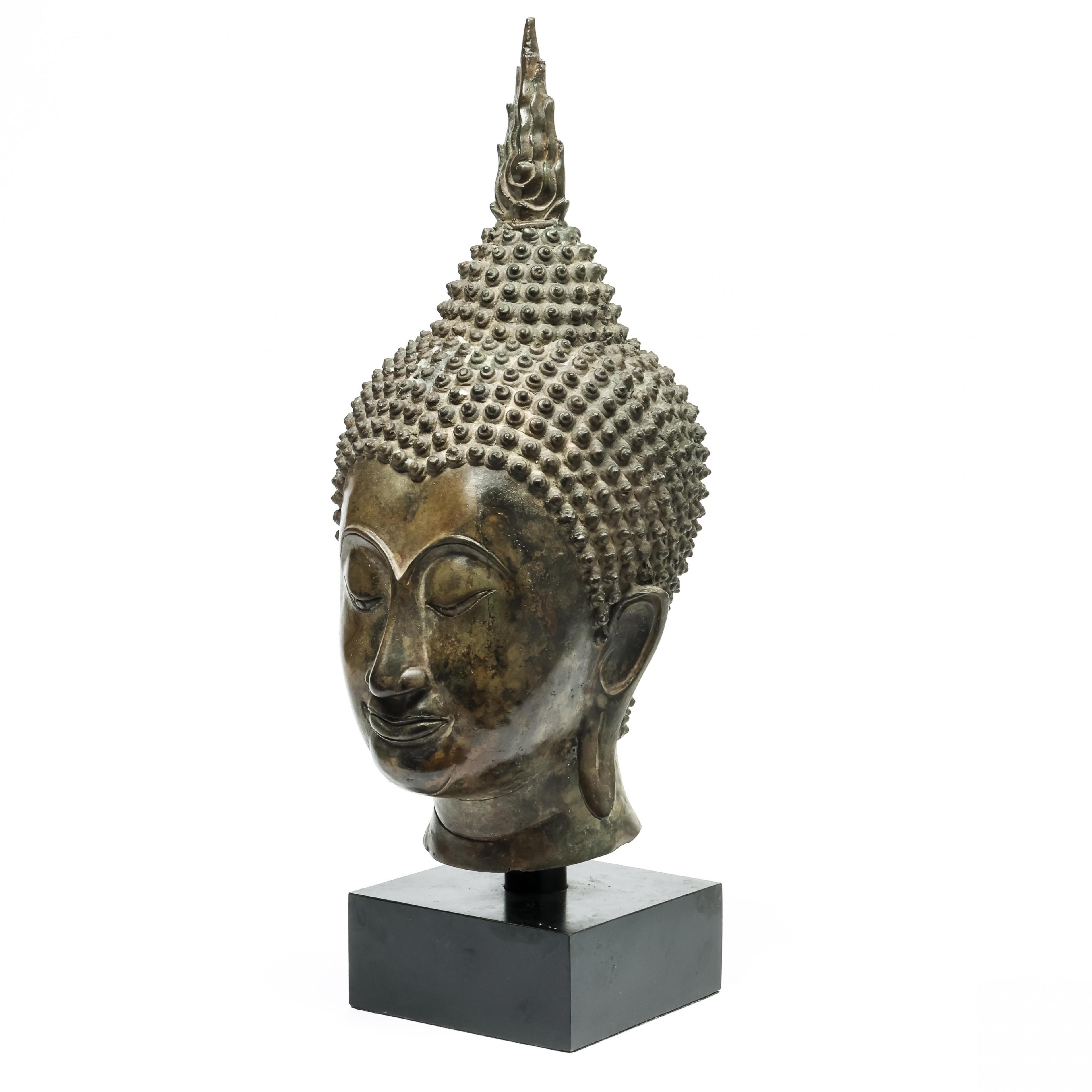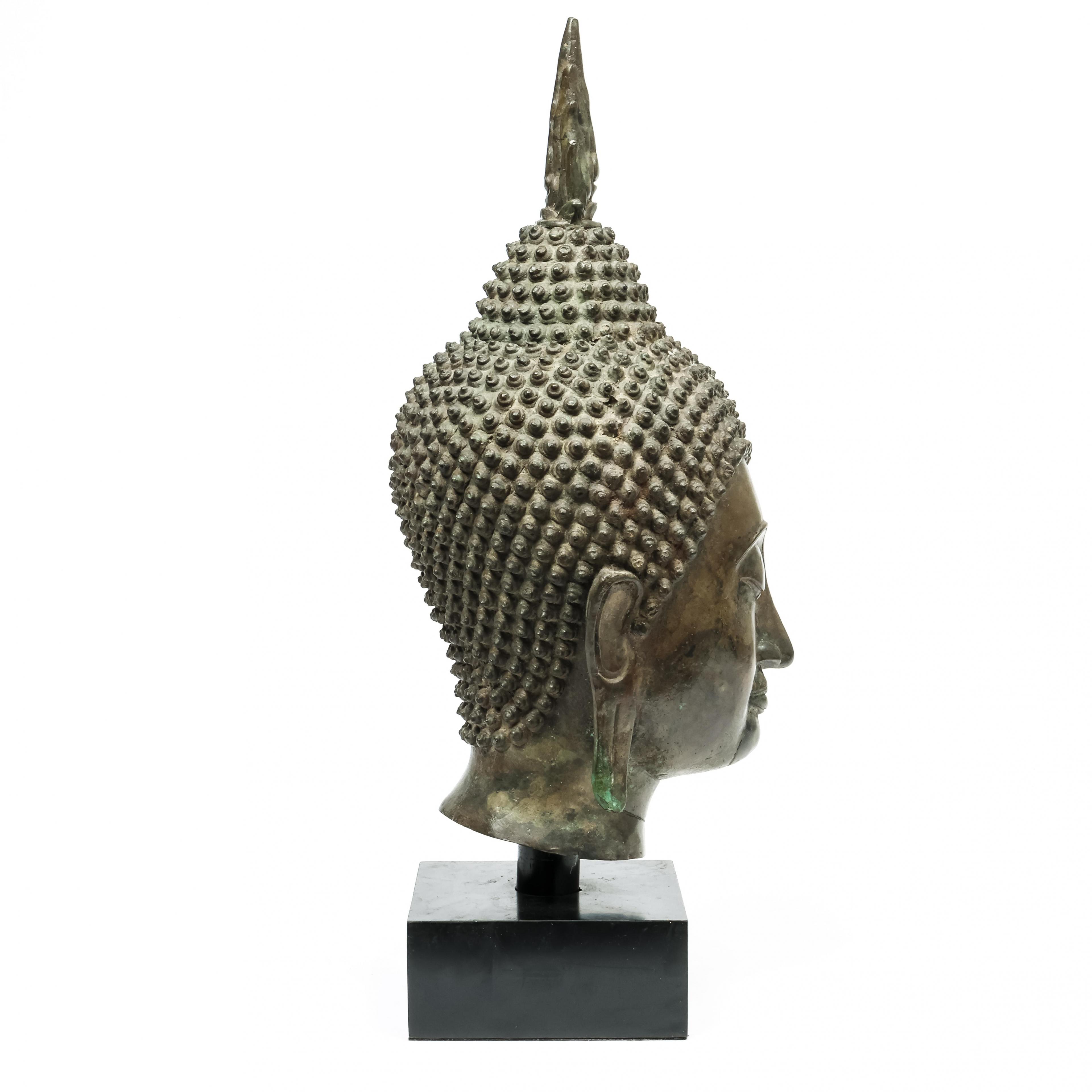 Thailand, bronzen boeddha hoofd in Ayutthaya stijl, 20e eeuw,