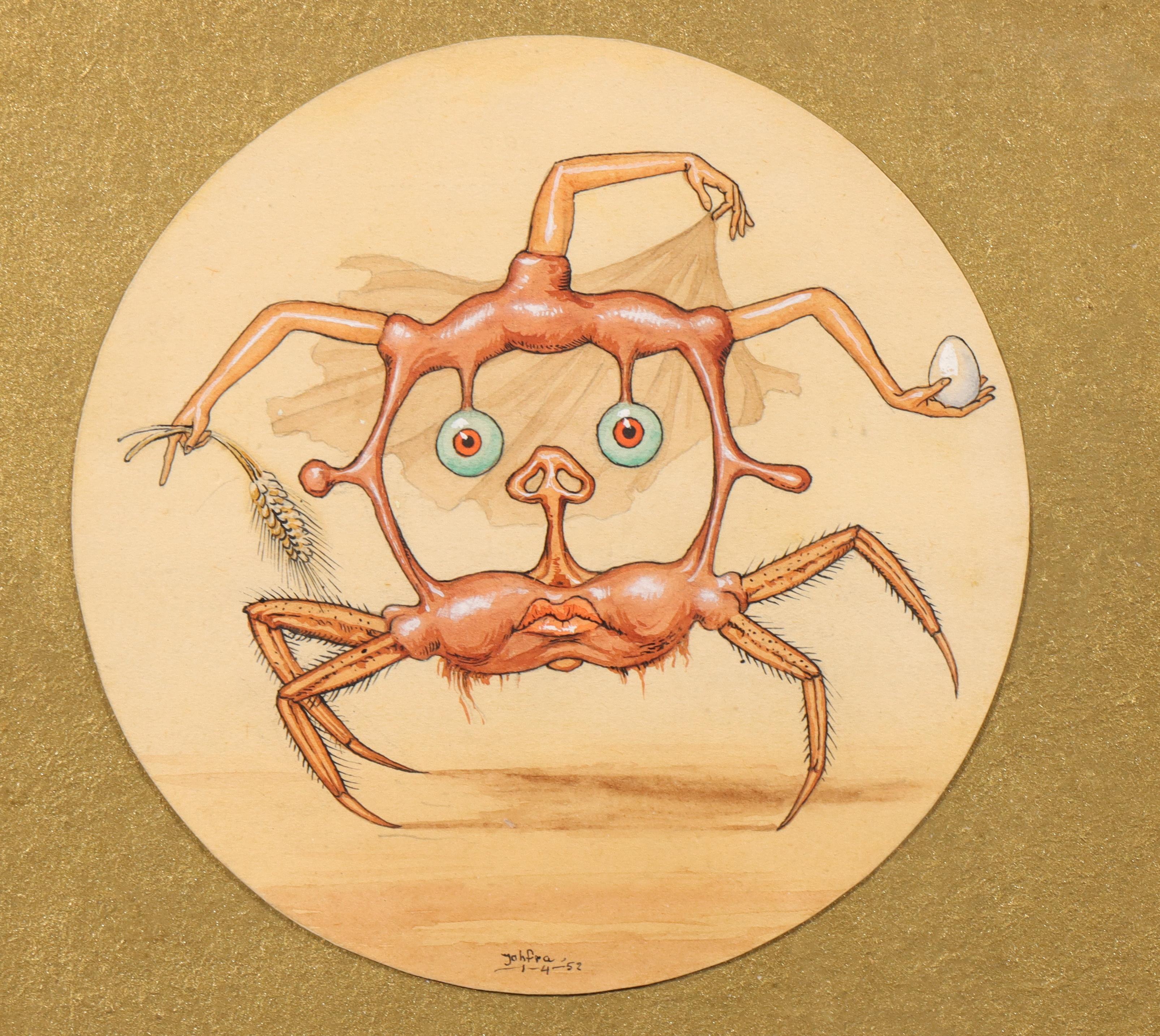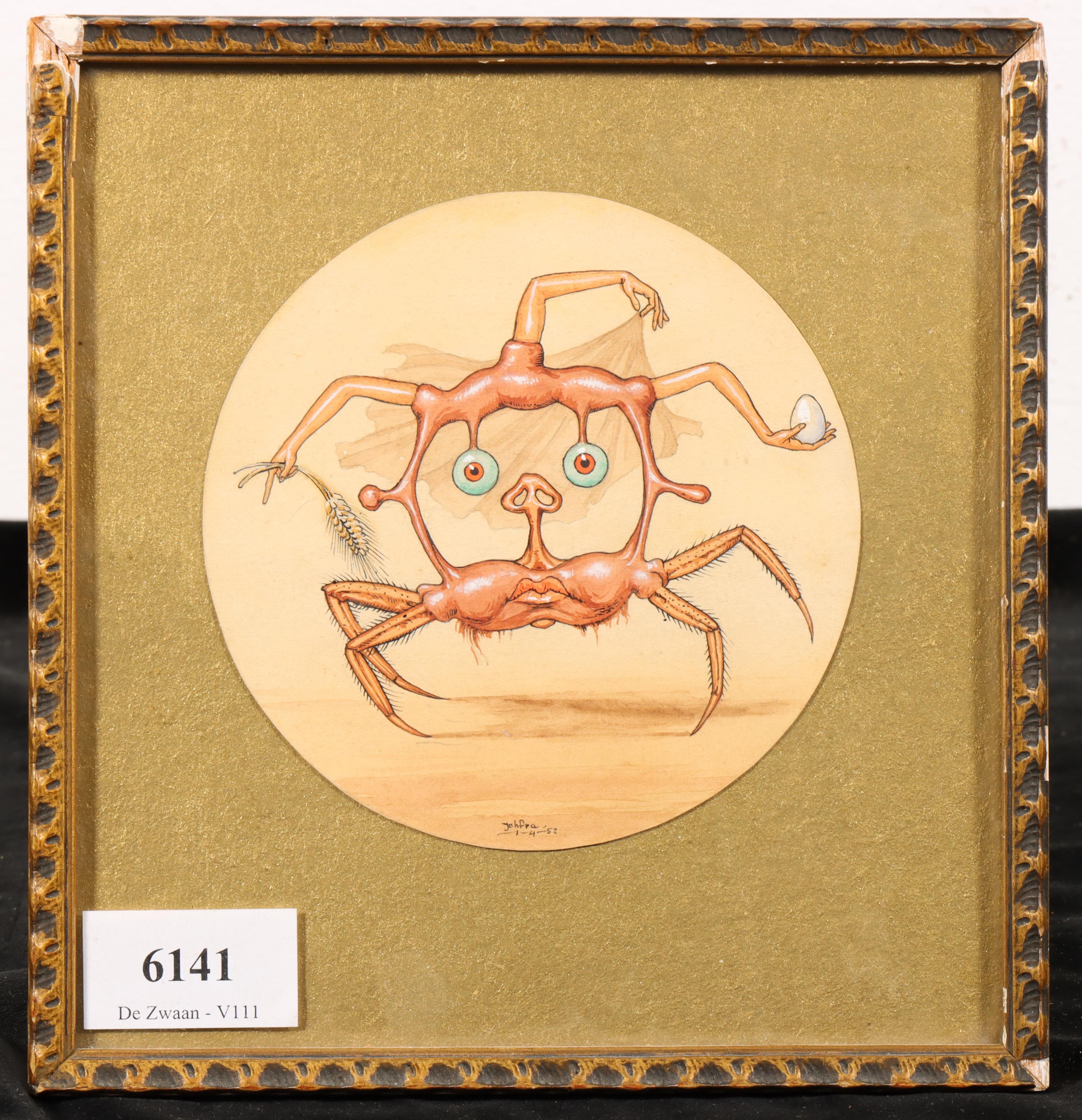aquarel, gesign. m.o., 1-4-'53, diam. 11,6 x 11,6 cm.