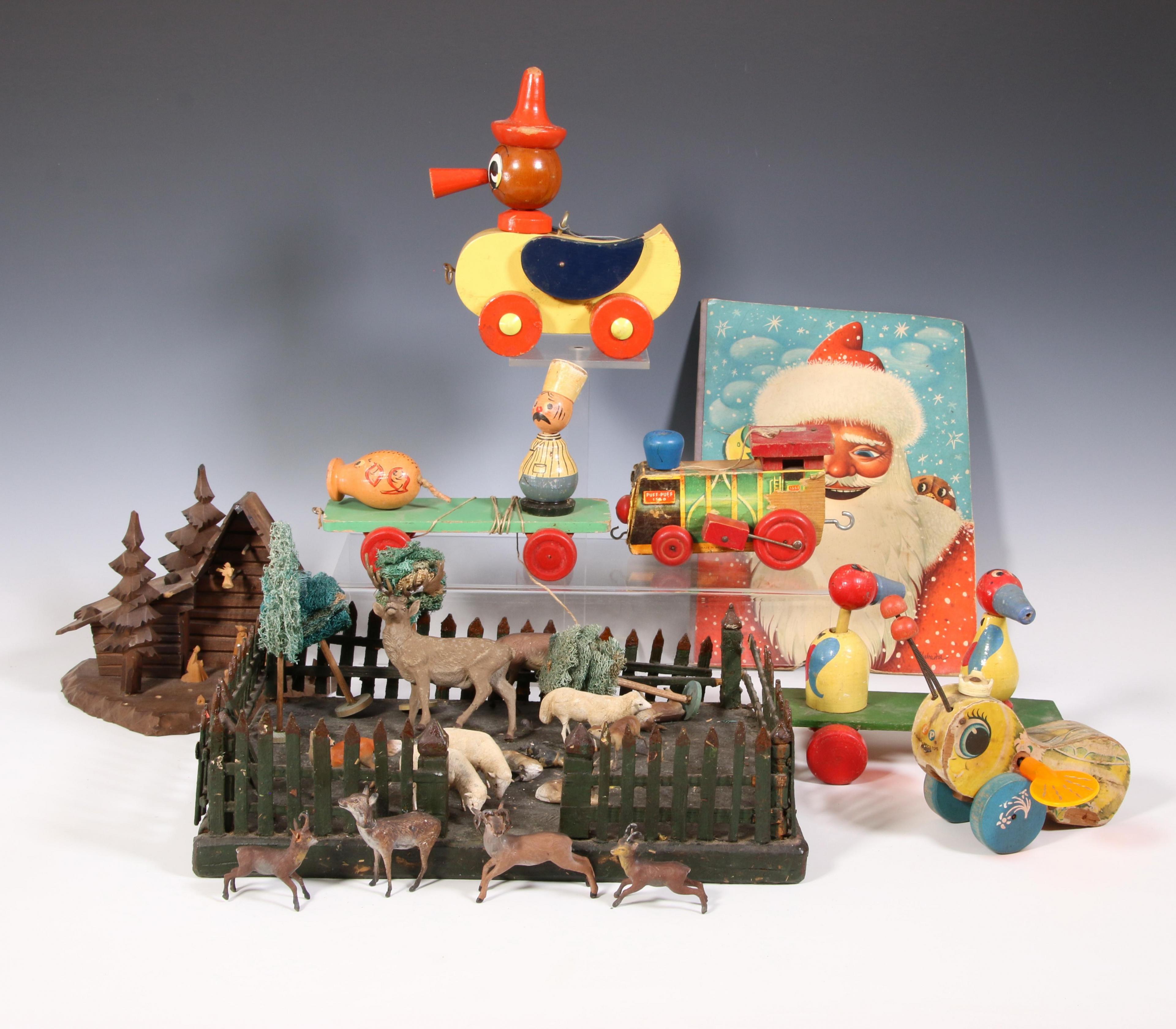 Samen met o.a. dierentuin figuren, houten speelgoed.