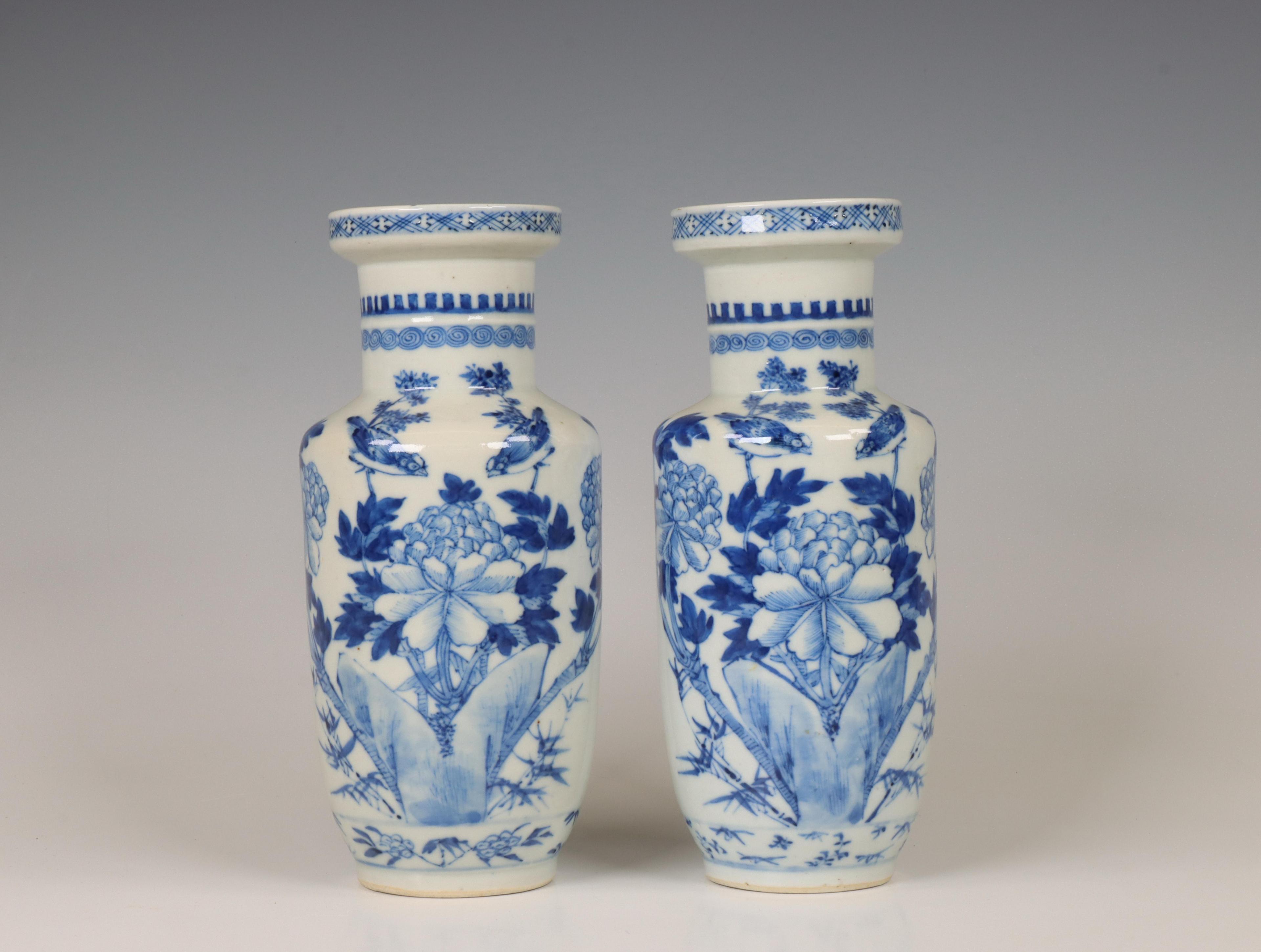 each decorated with birds in flower garden, the bases with apocryphal Kangxi marks (minor nicks and hairlines)