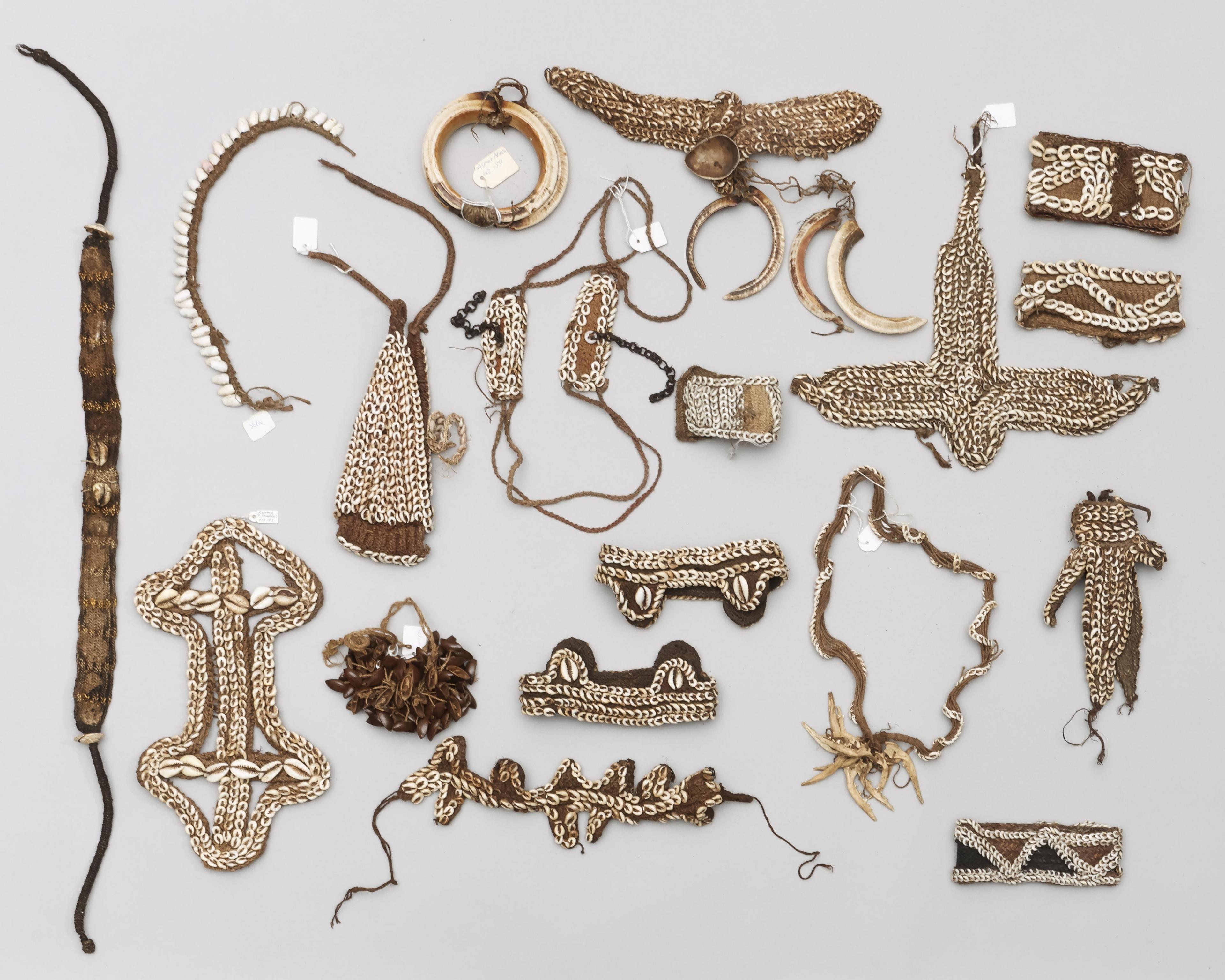 P.N. Guinea, an assorted collection of ornaments, mainly consisting of braided plant fibre material with shell.