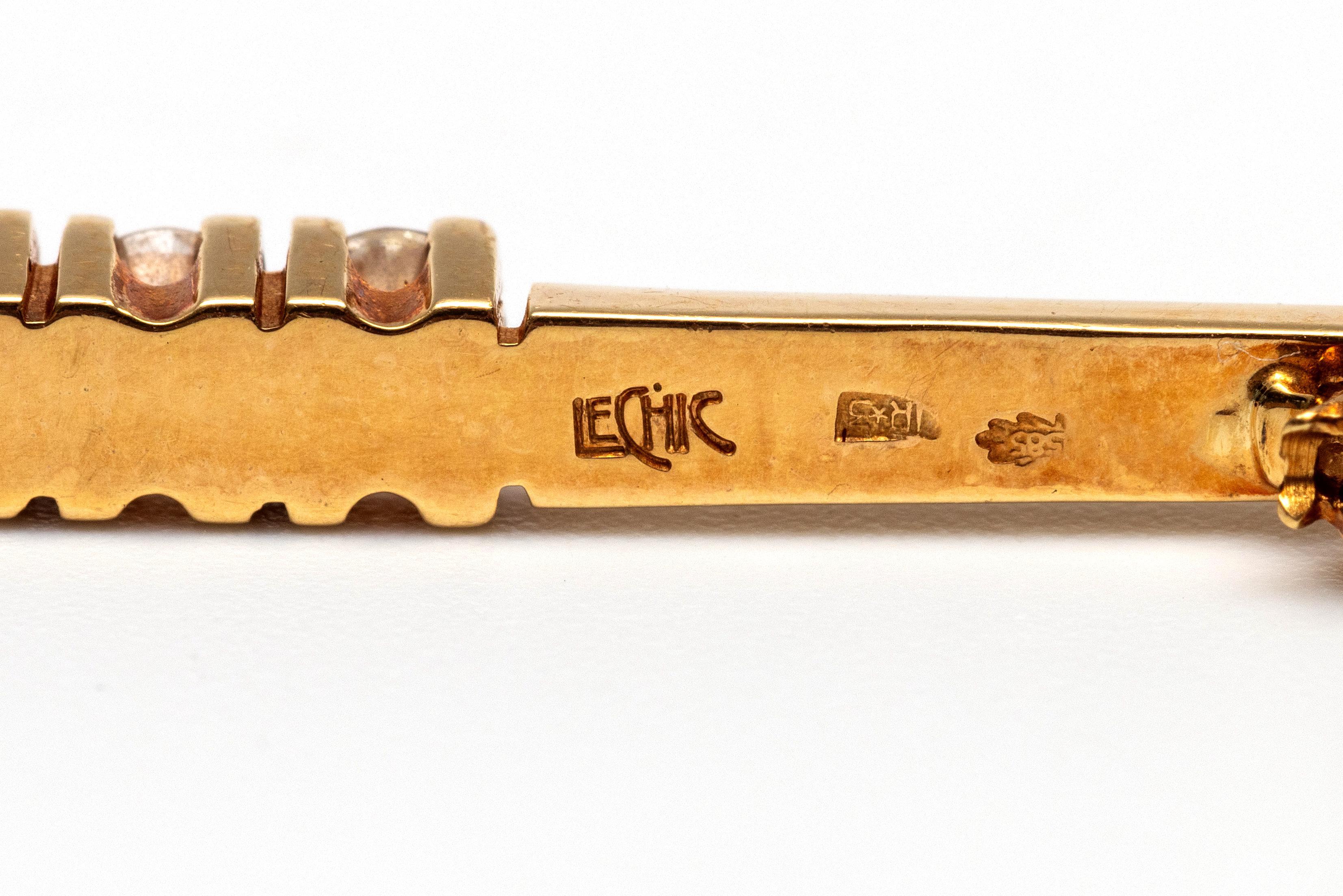 LeChic, 14 k. gold bar brooch set with a row of brilliant cut diamonds with a total weight of approx. 0.40 ct.