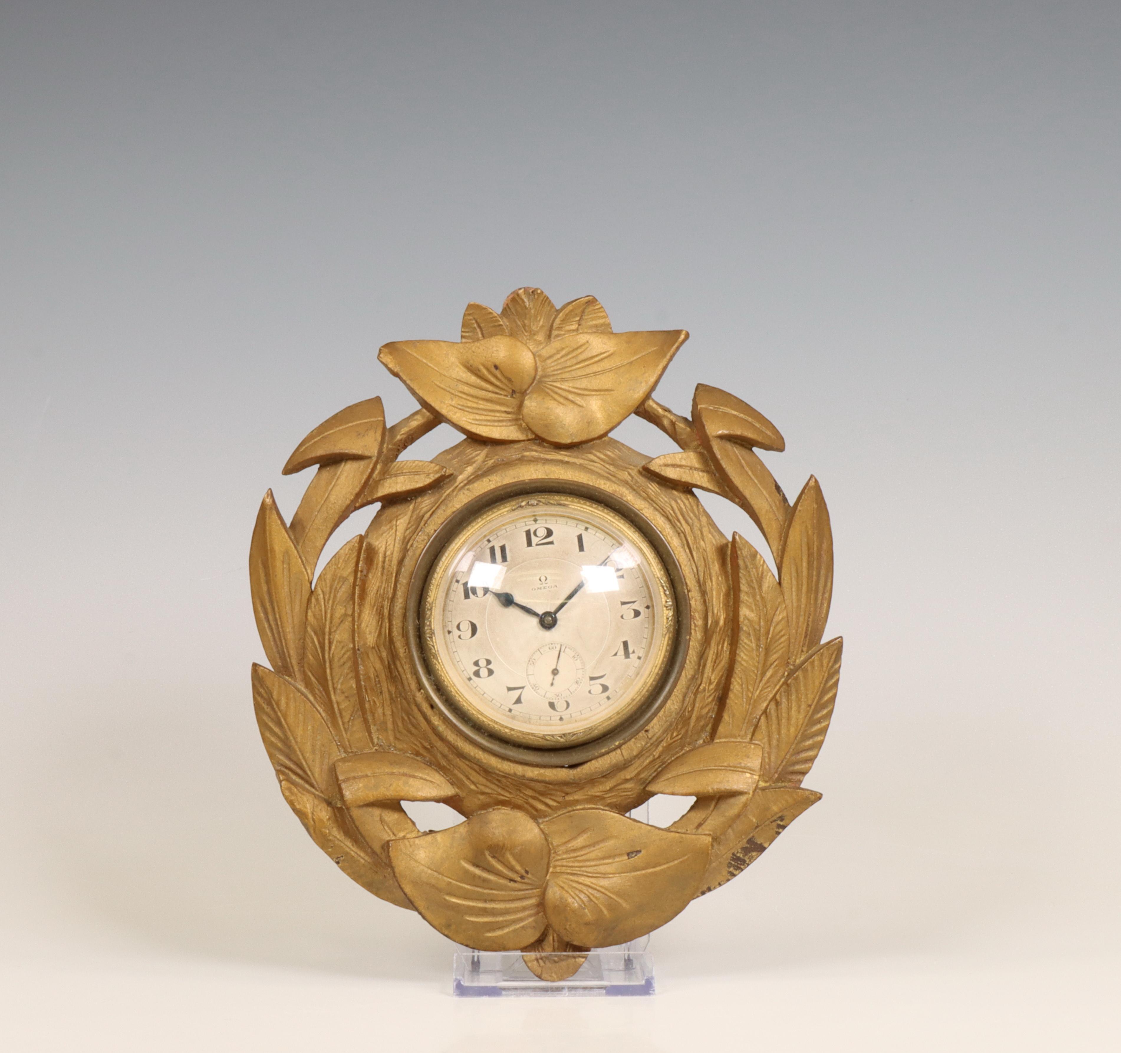 Omega, wandklok in gestoken houten lijst, ca. 1920