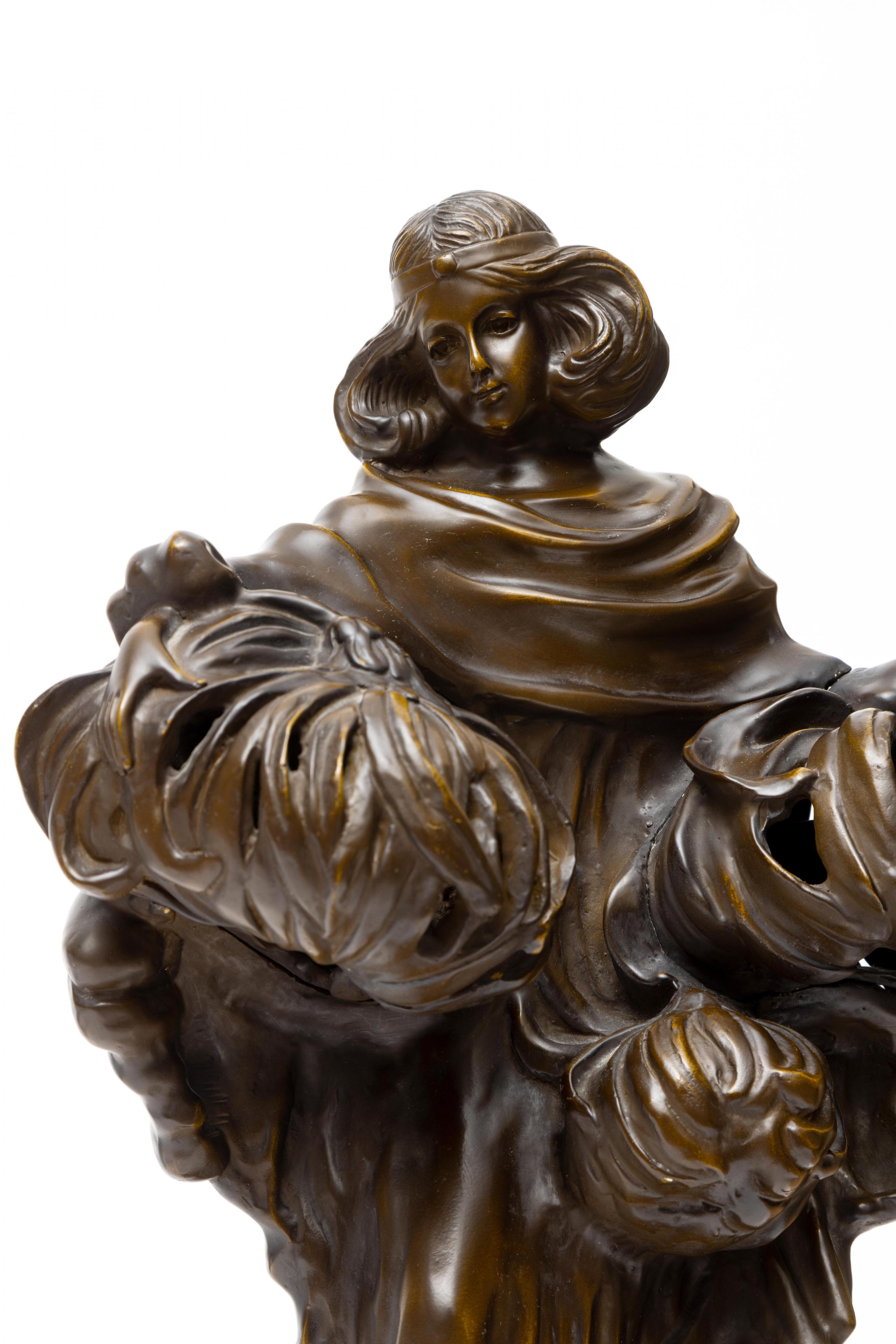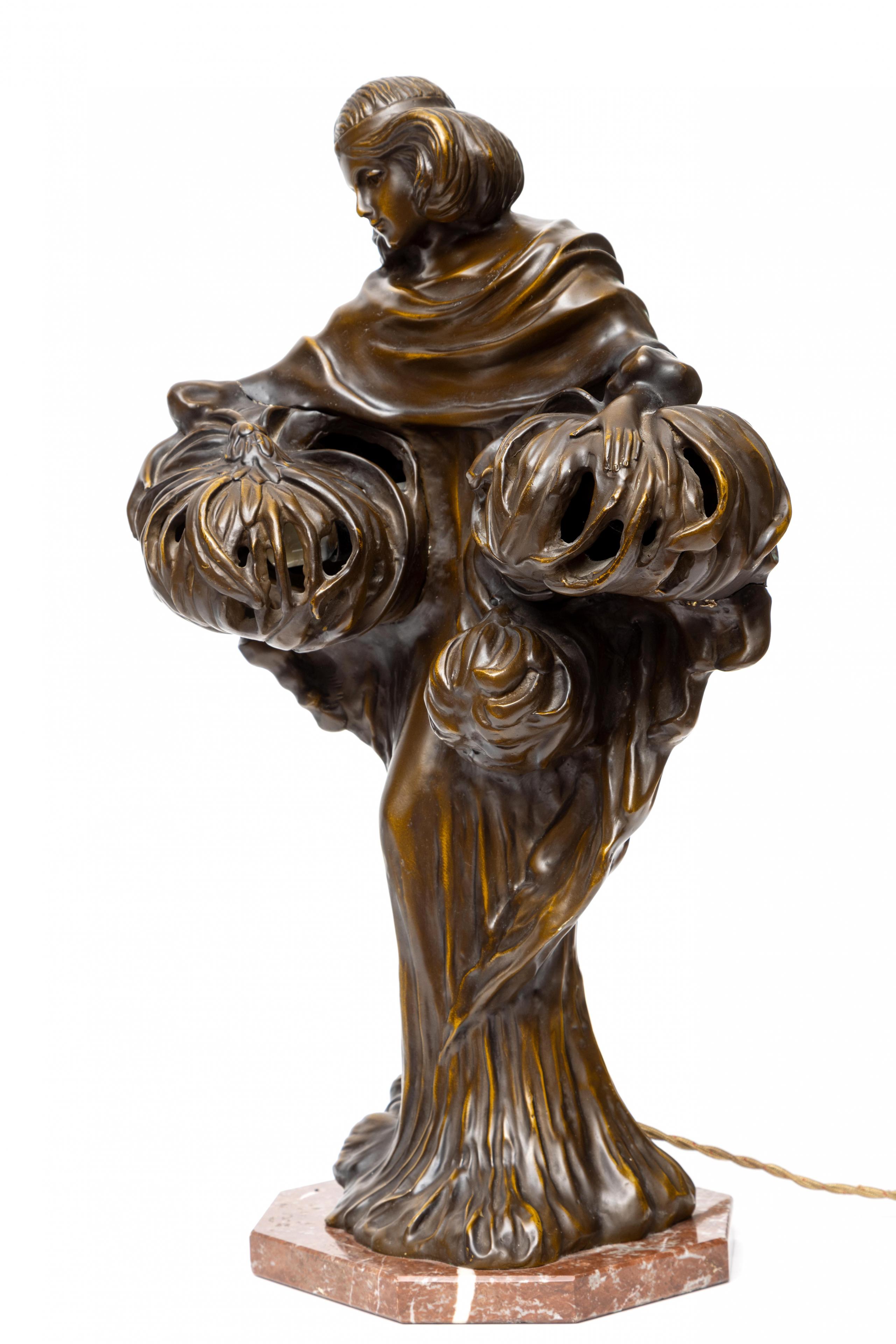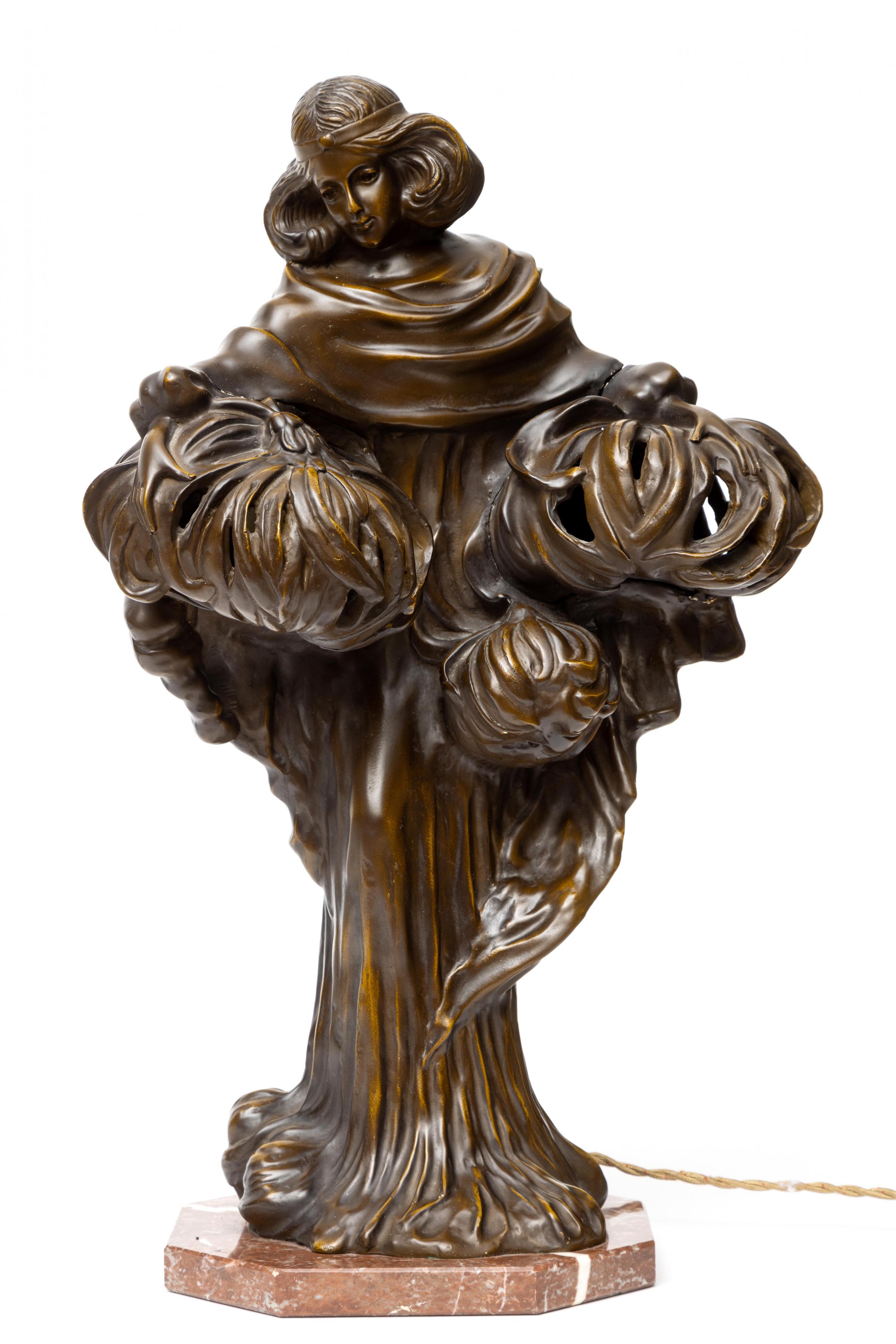 Frankrijk, bronzen lamp in de vorm van een staande vrouw, Art Nouveau stijl