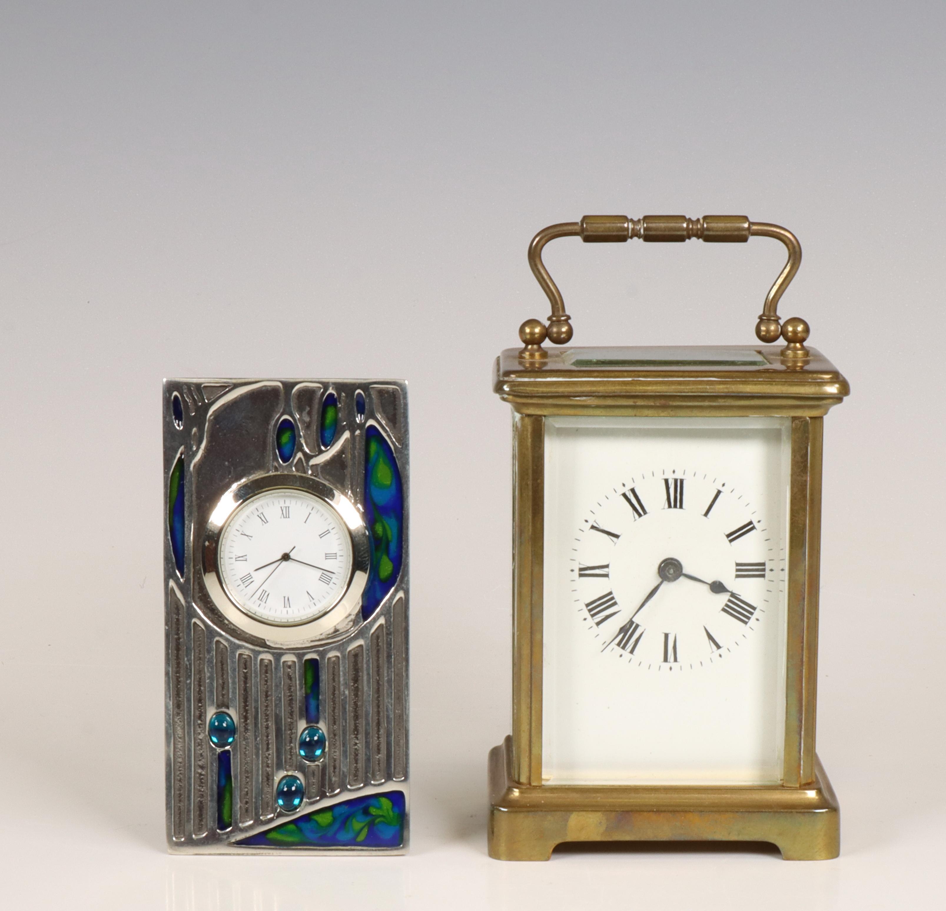 Uitgevoerd met cilindergang, hierbij een bureauklok in Charles Rennie Macintosh stijl.