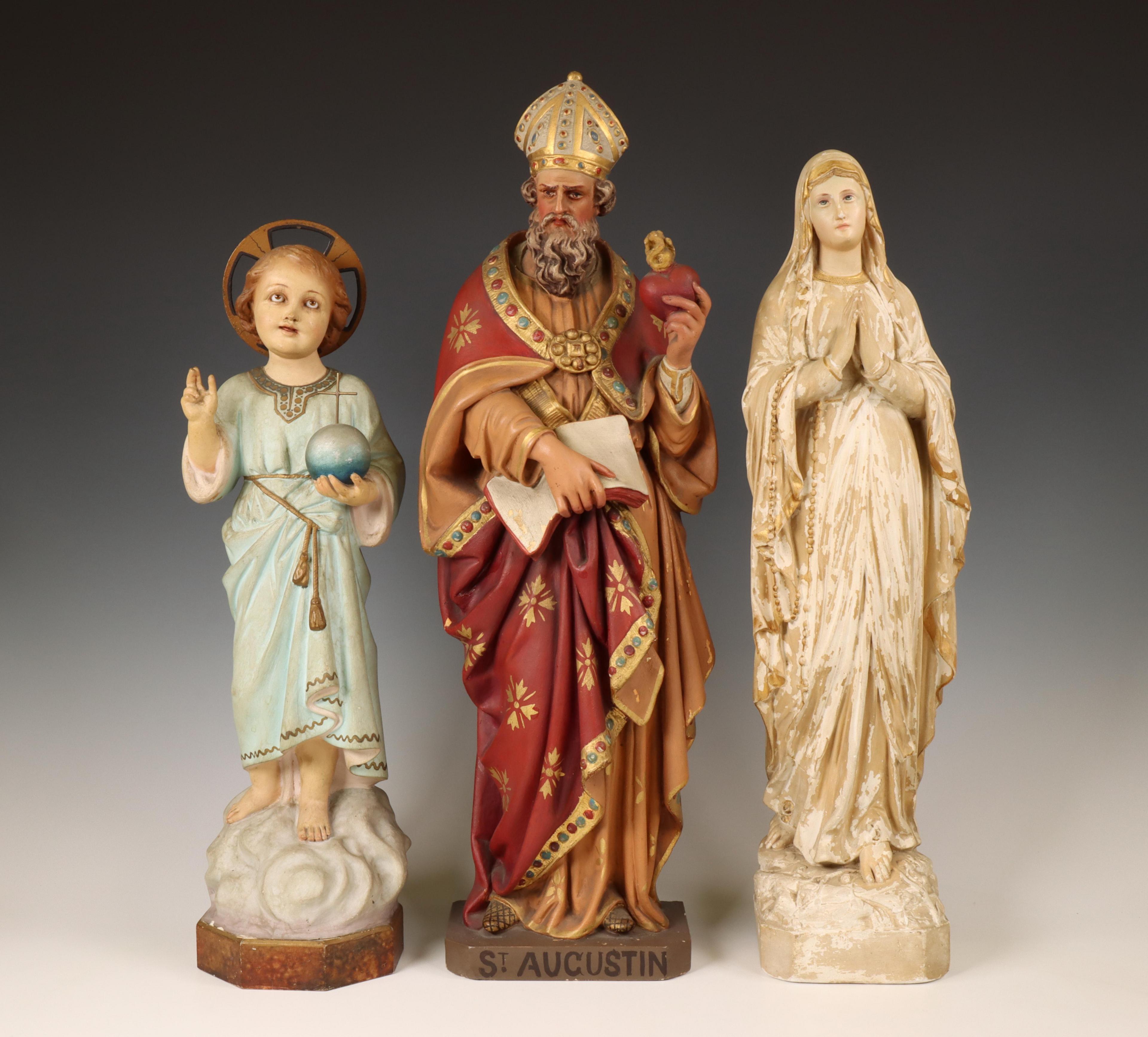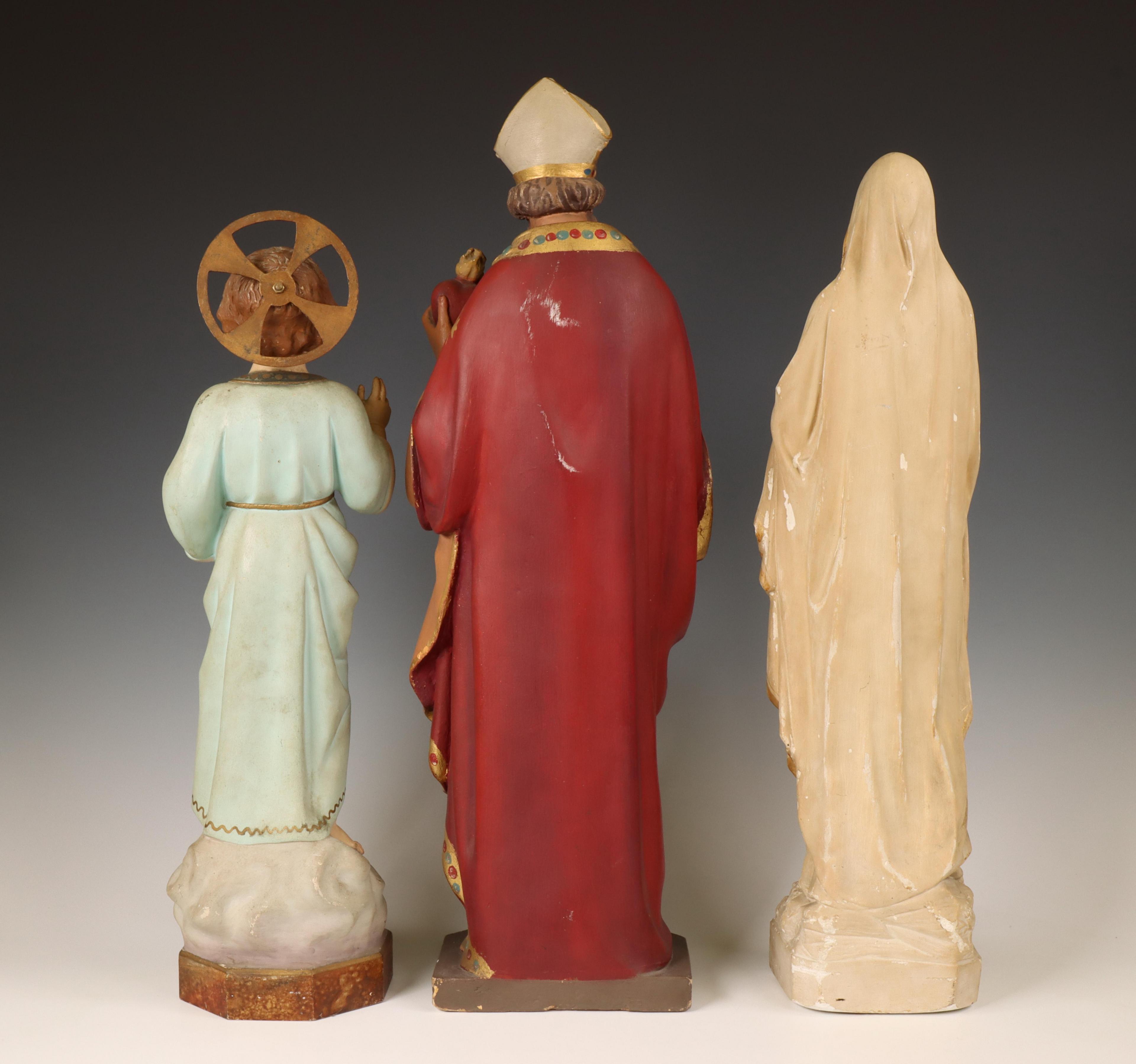 Drie gipsen heiligenbeelden, laat 19e/begin 20e eeuw;