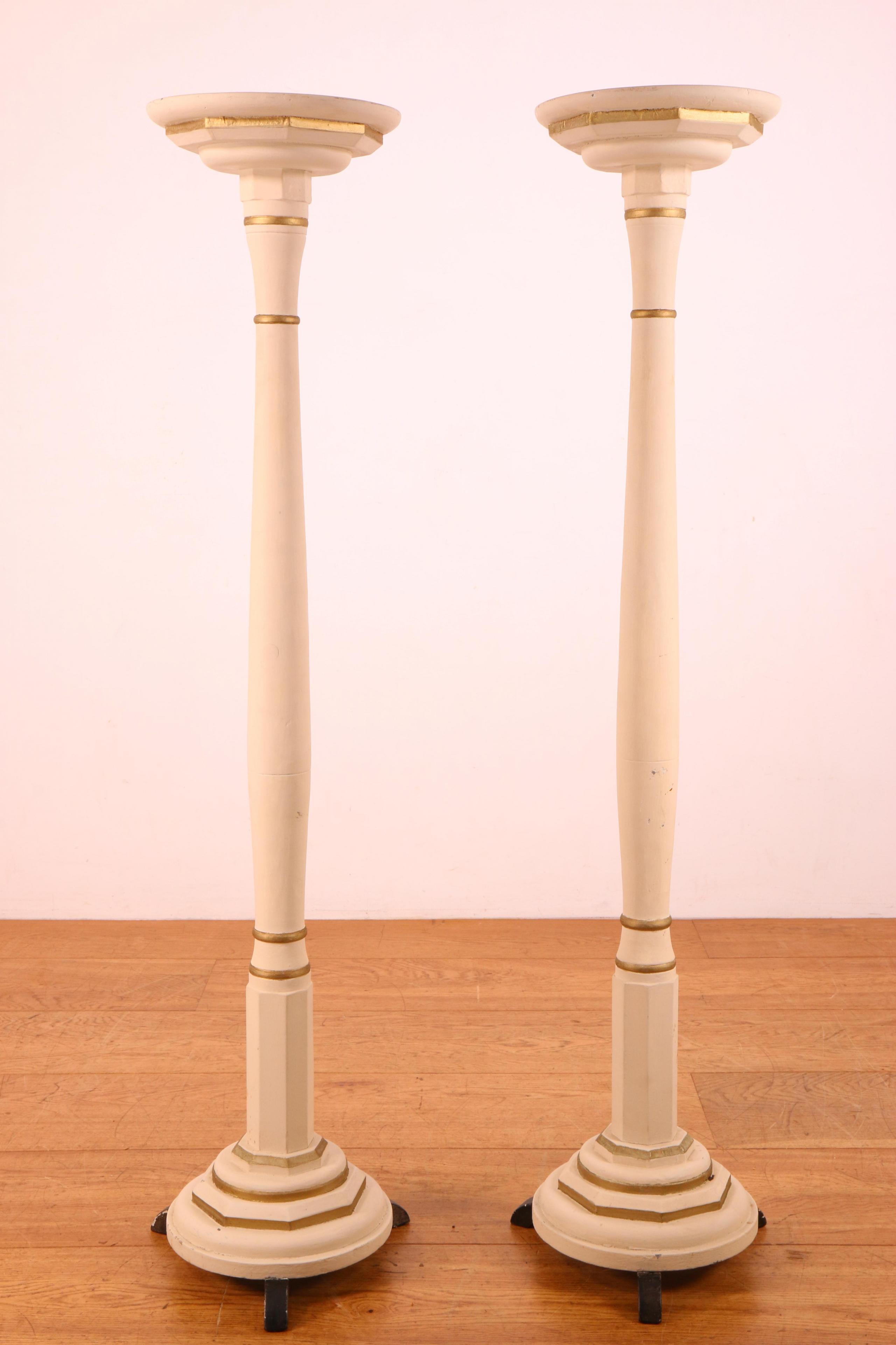 Paar witgelakte notenhouten piëdestals, circa 1900