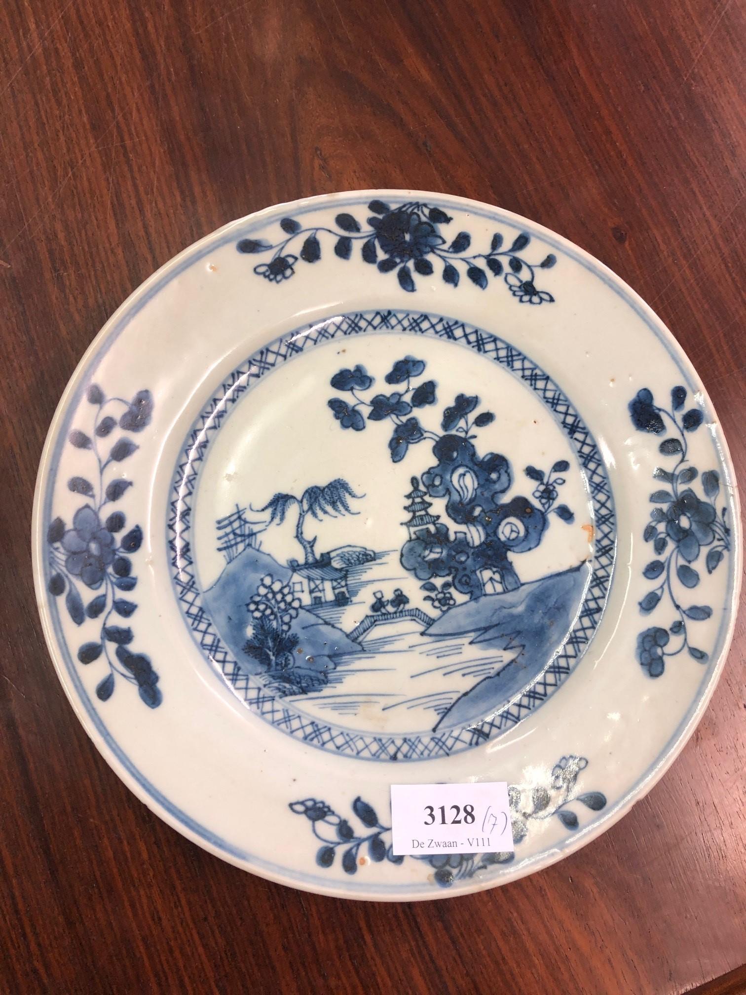 China, a set of seven blue and white porcelain plates, Qianlong period (1736-1795),