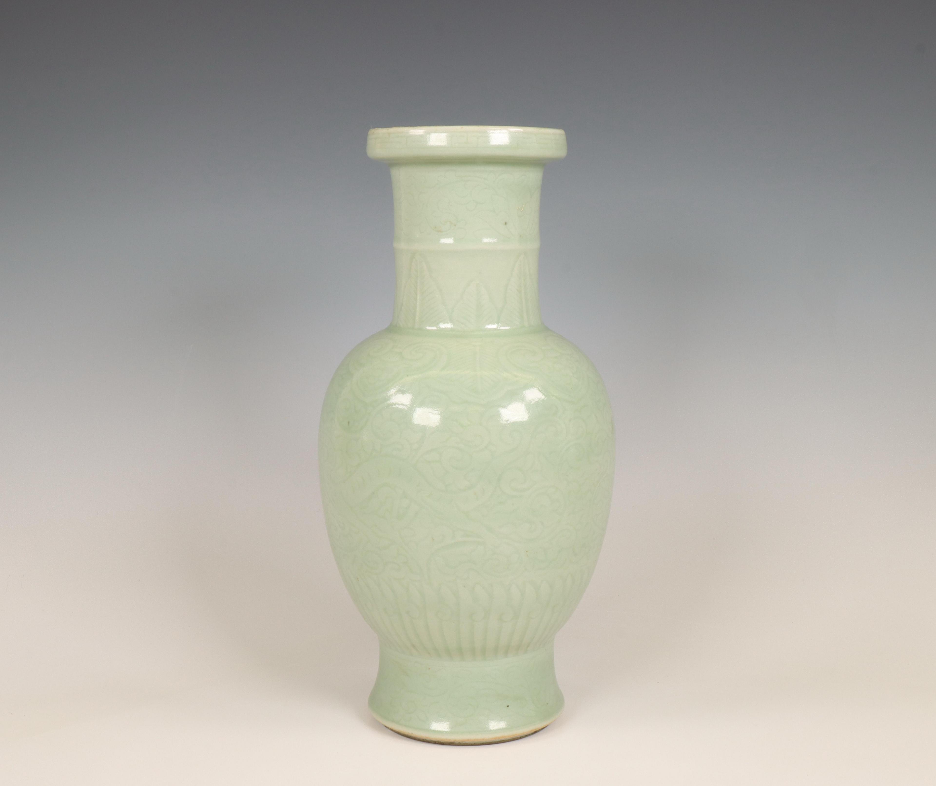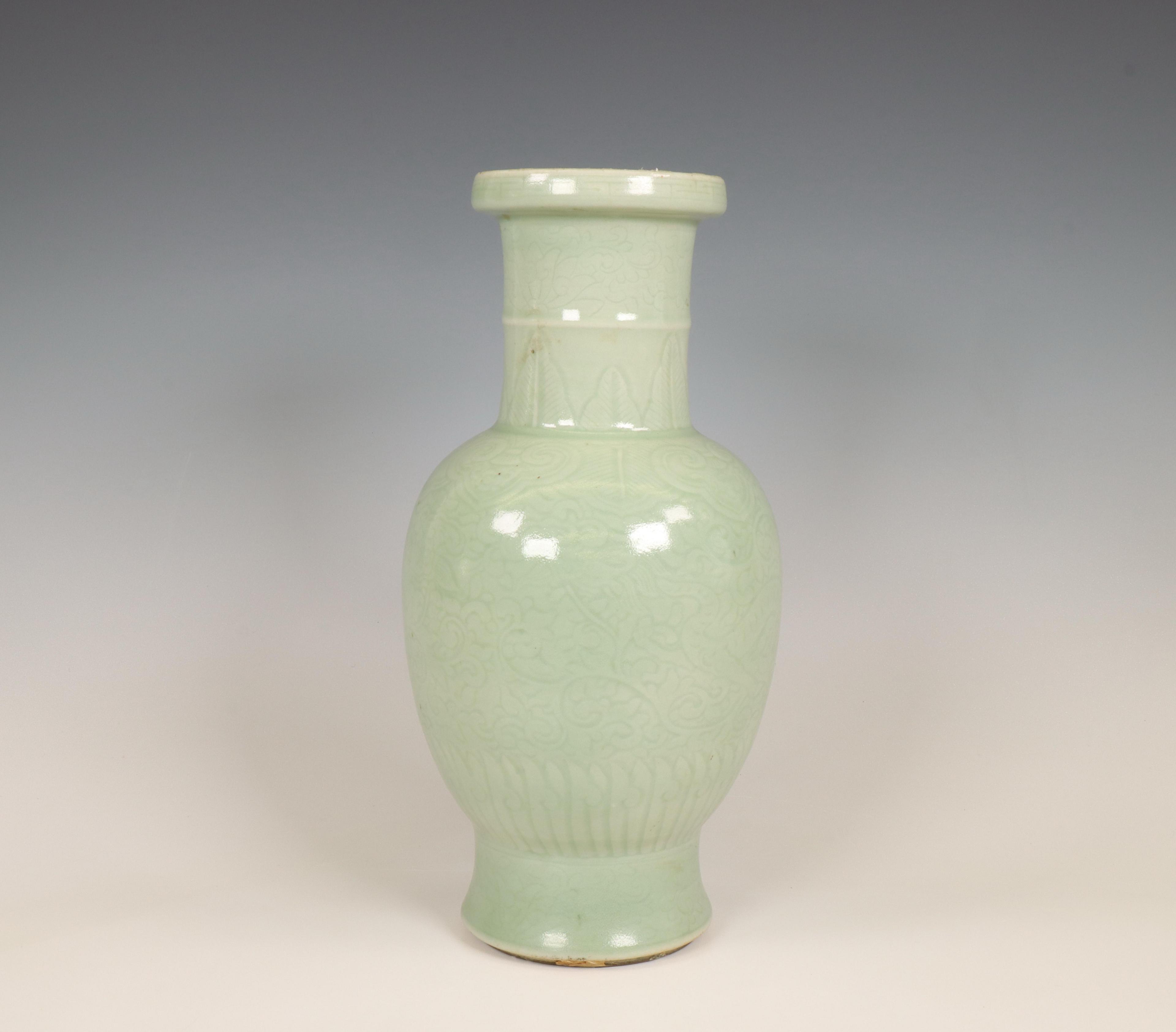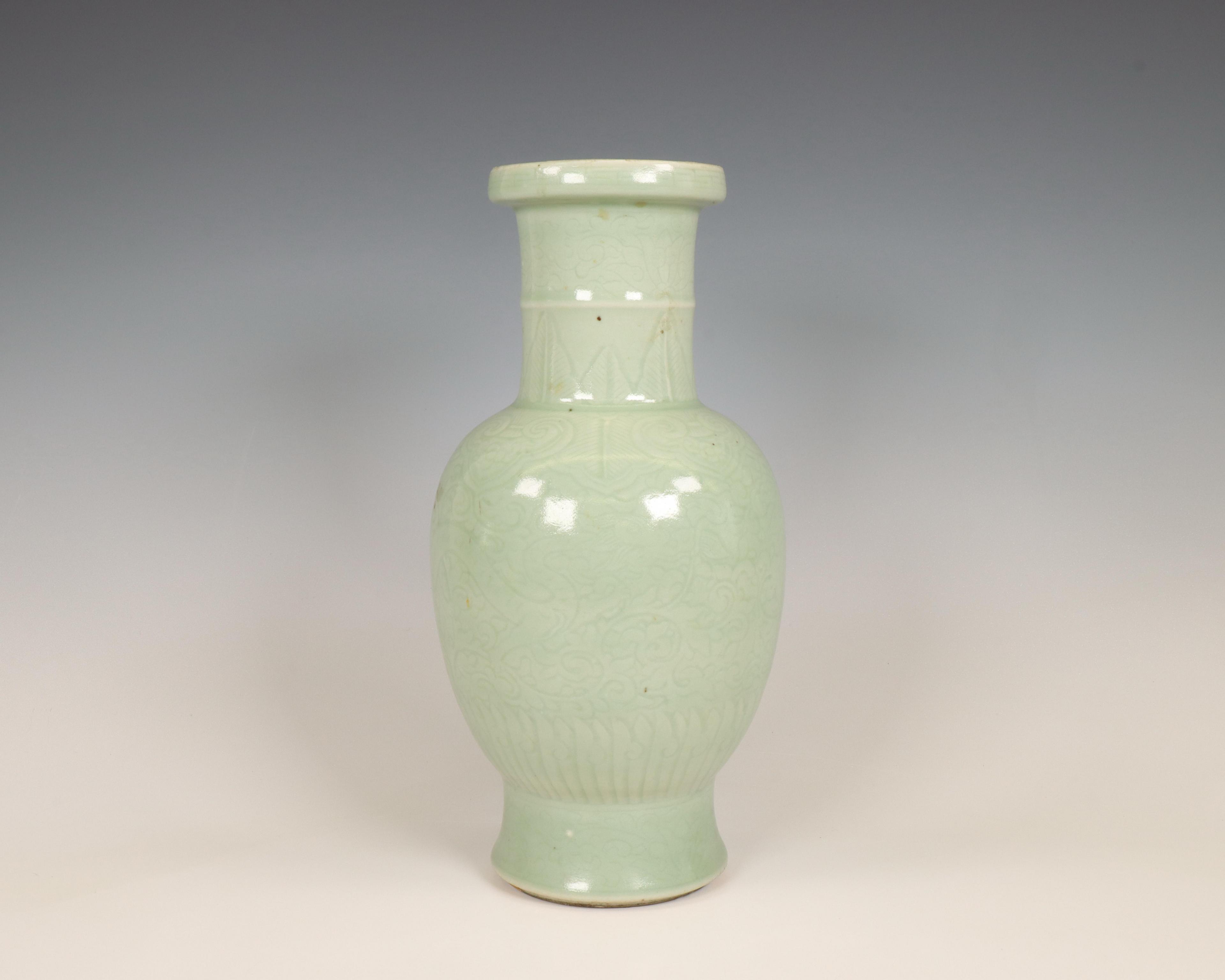 China, celadon-glazed baluster vase, 19th-20th century,