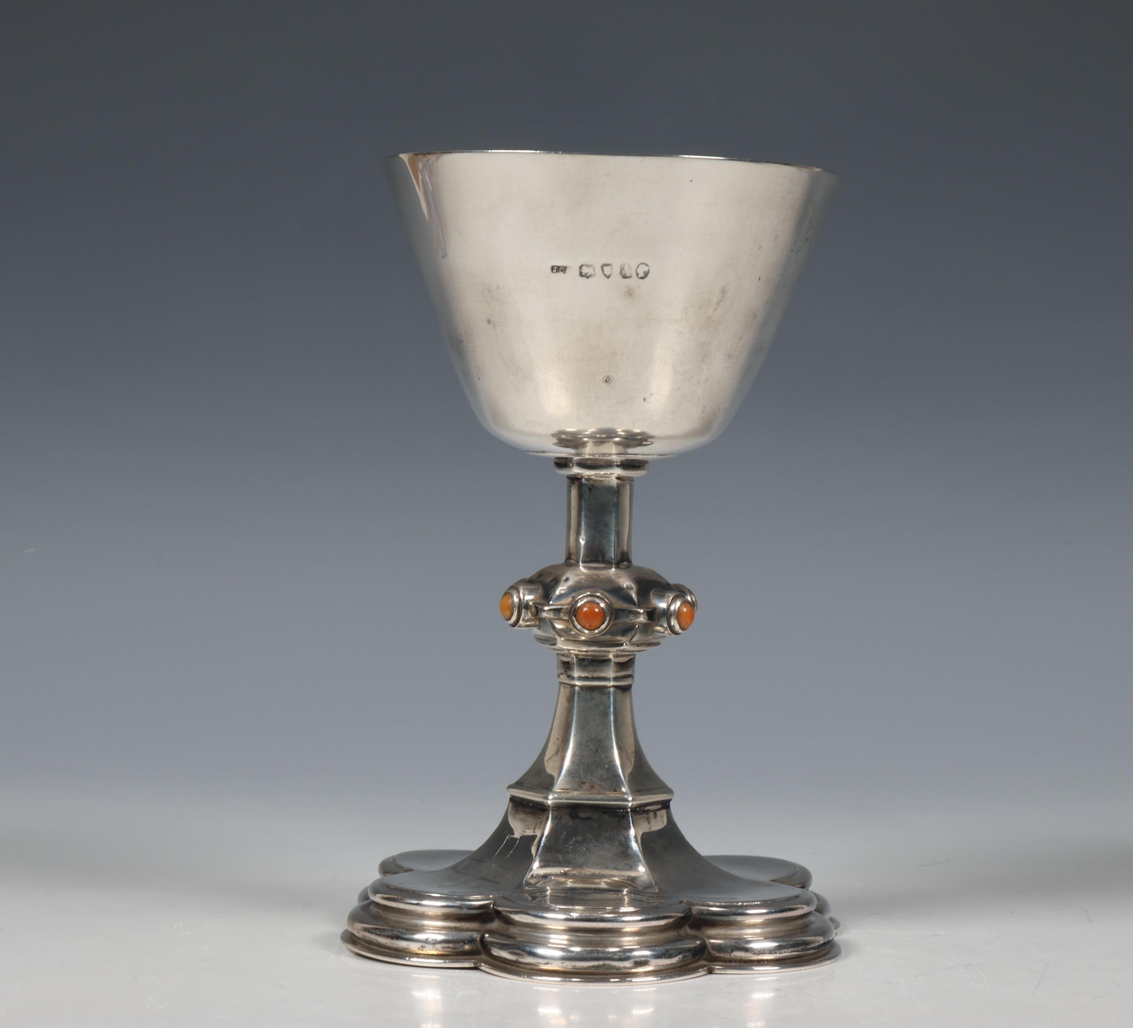 op gelobde voet in de stam koraal cabochon versieringen, mt. John Crane Salt 1868-1875 Londen 1876, winkelier Pravy & Sons London, sterling, pateen mt. Thomas Pratt & Sons Londen 1886, sterling,