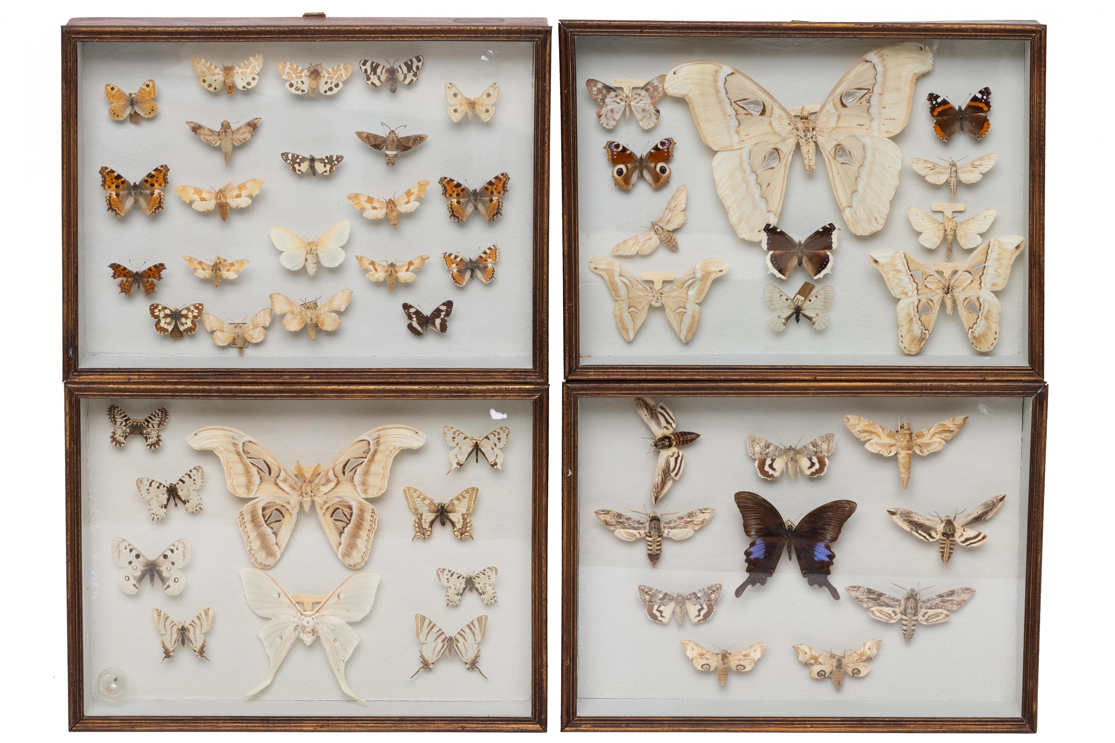 Taxidermy, geprepareerde vlinders in vier houten wandvitrines, ca. 1950;