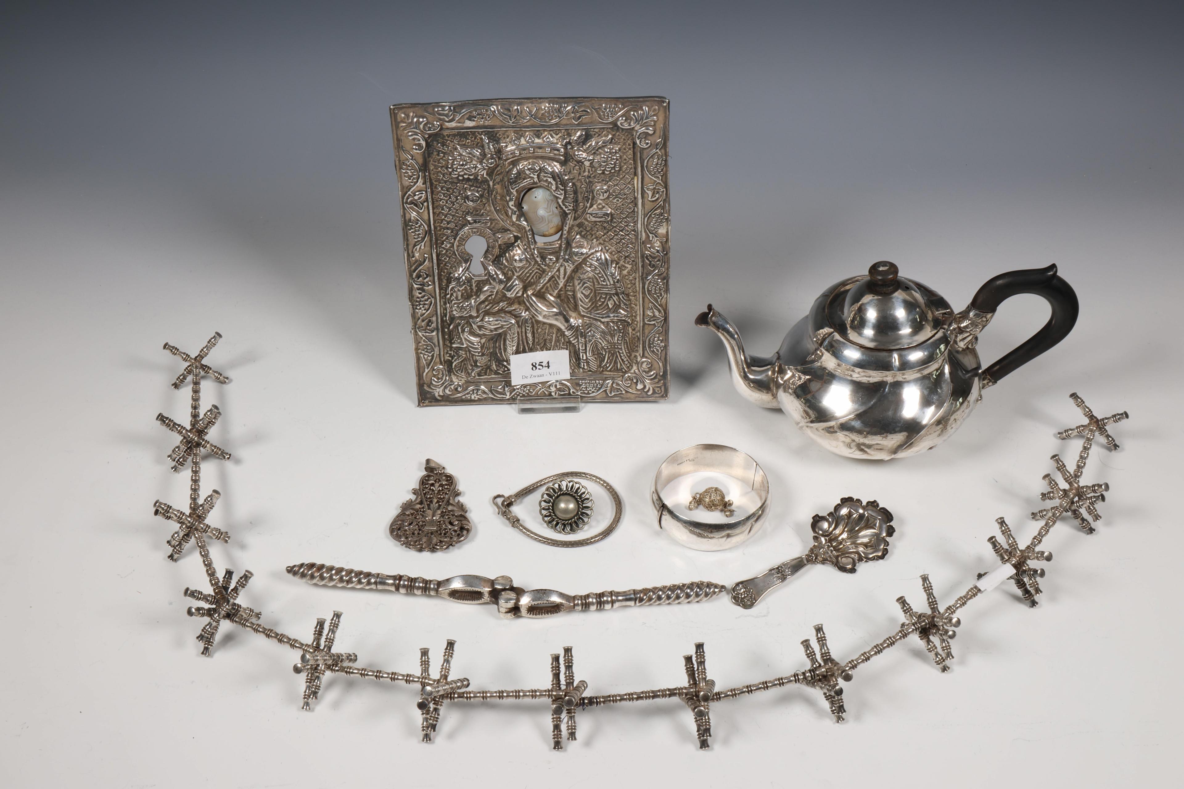 rond model met kam, bestaande uit negen tafelvorken, dertien tafellepels, vijftien dessertlepels, acht dessert vorken, paar groentelepels, mt. J.M. van Kempen Voorschoten, 2e gehalte, diverse jaarletters o.a. 1893 en 1913, en model puntfilet drie lepels en twee vorken, vroeg 19e eeuw, 2e gehalte,