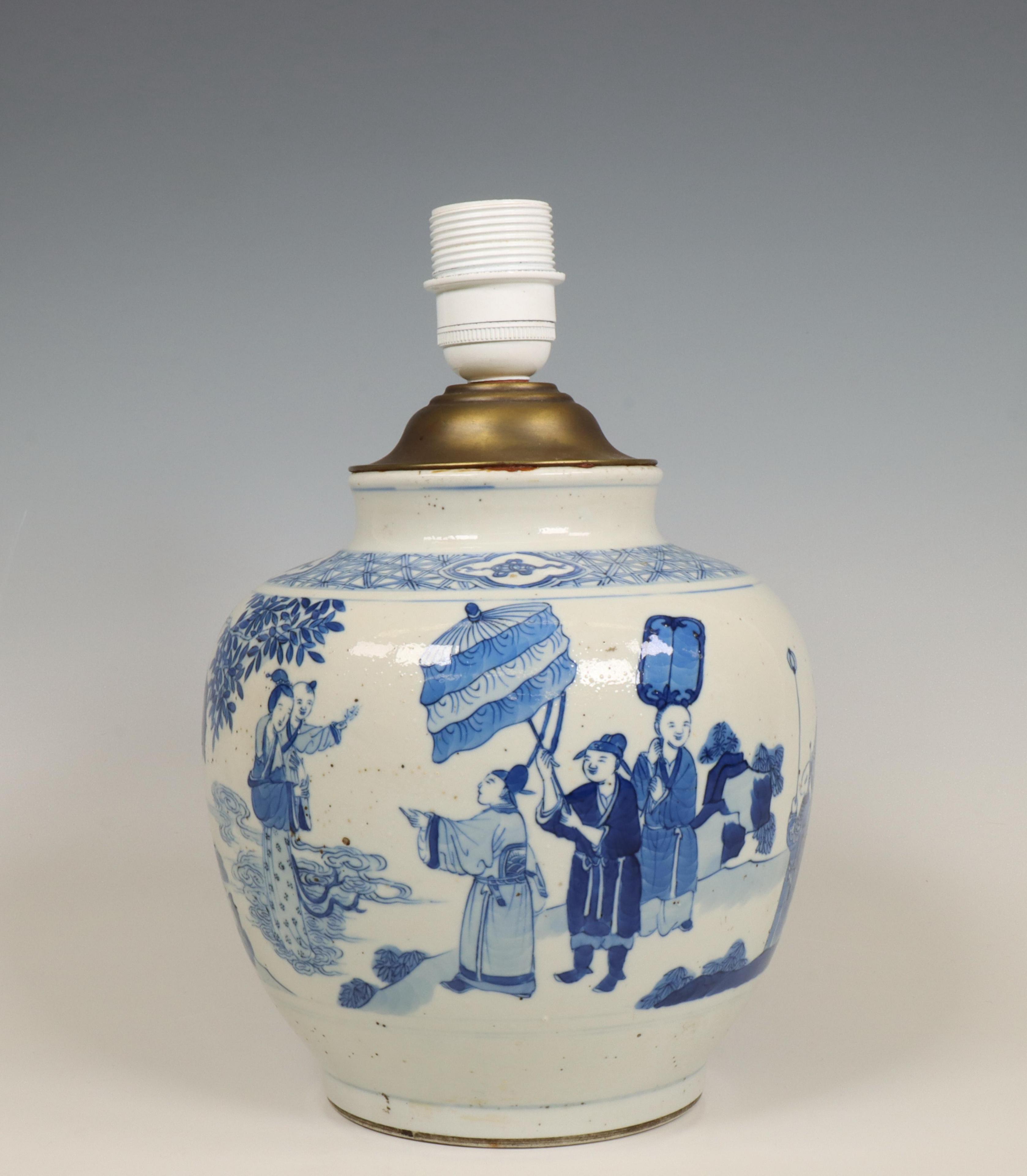 China, blue and white porcelain vase mounted as a lamp, 19th century,