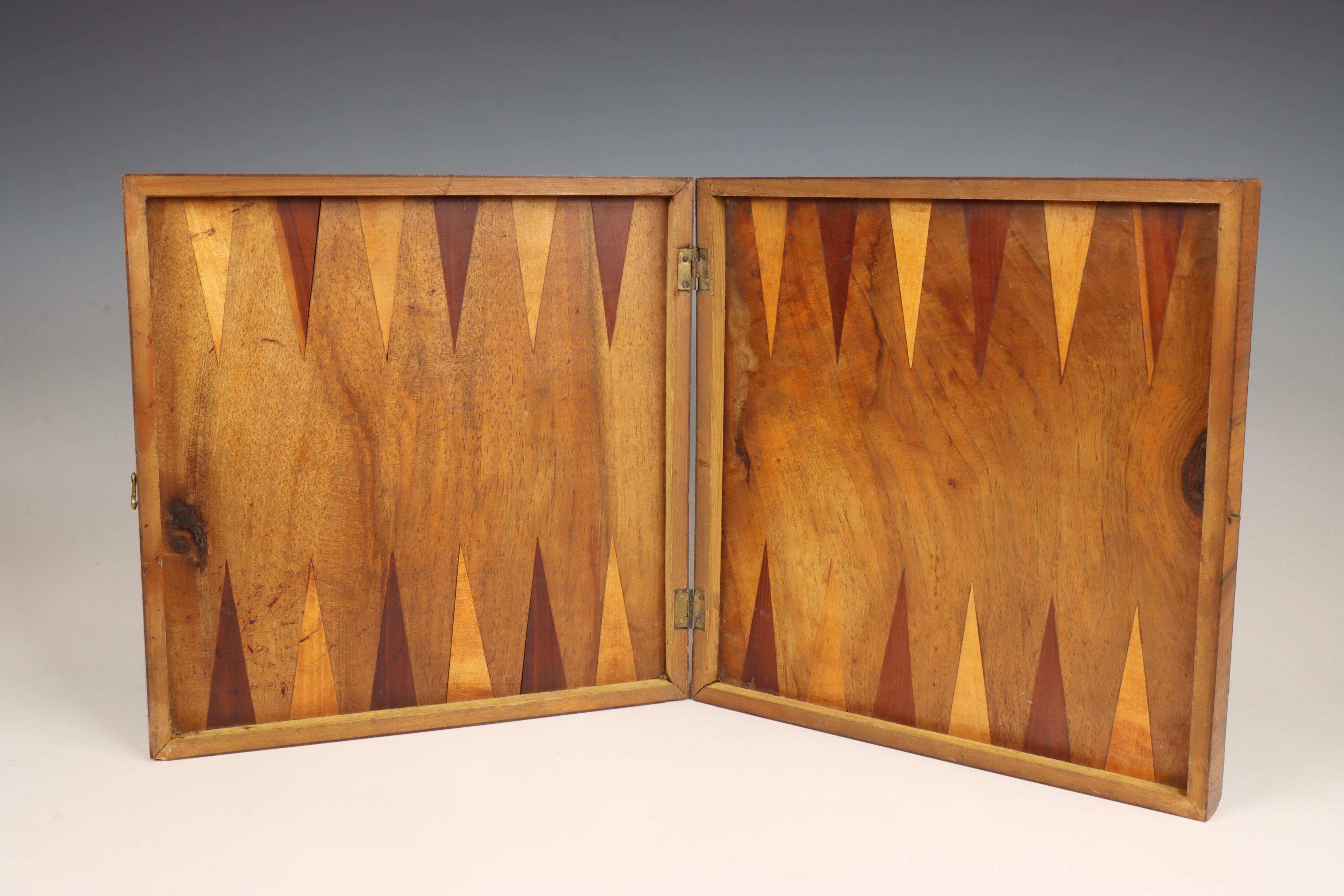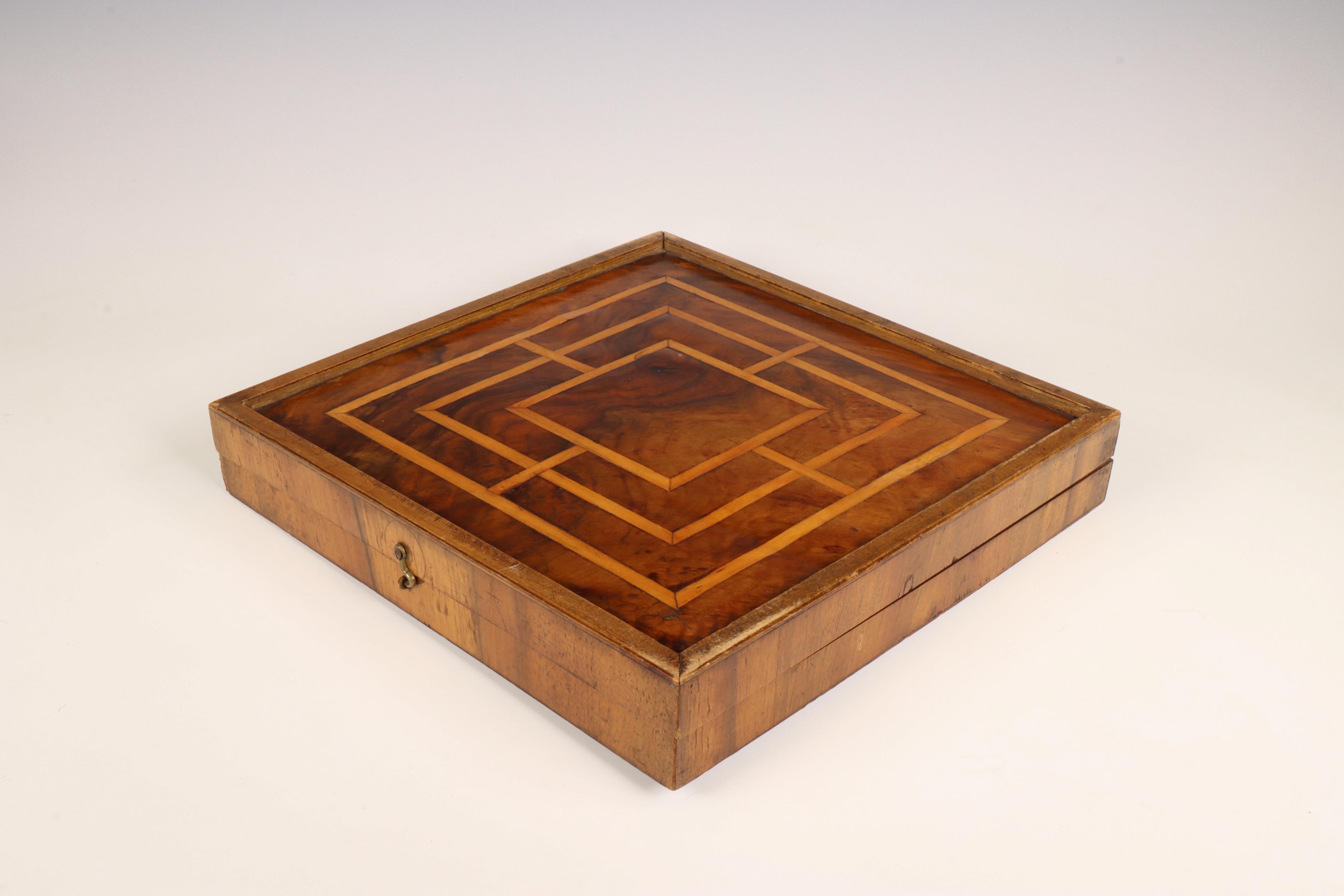 Opgelegd met berken en notenhout. Het interieur met tric-trac veld. [getordeerd]