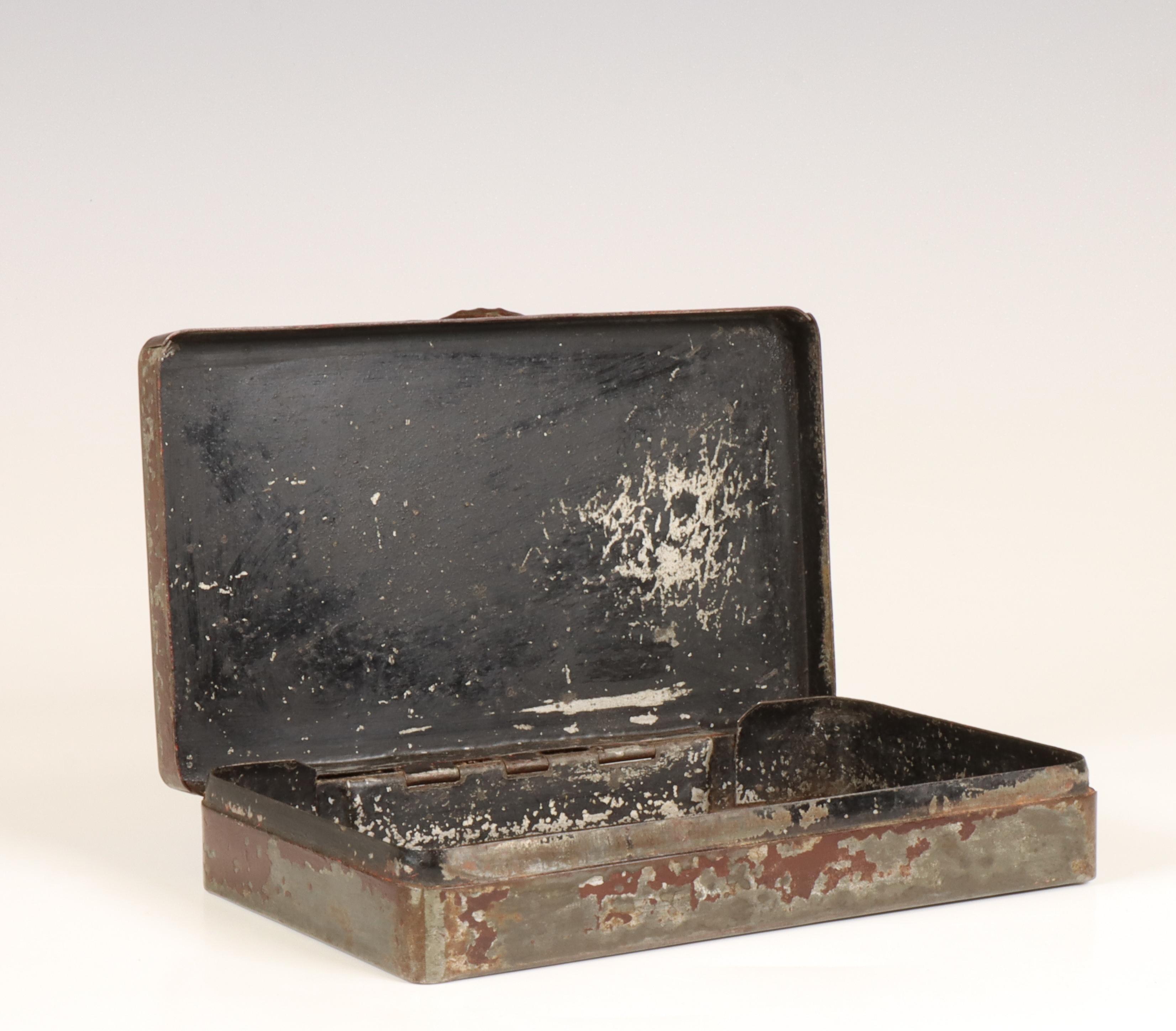 Blikken tabaksdoos, 19e eeuw;