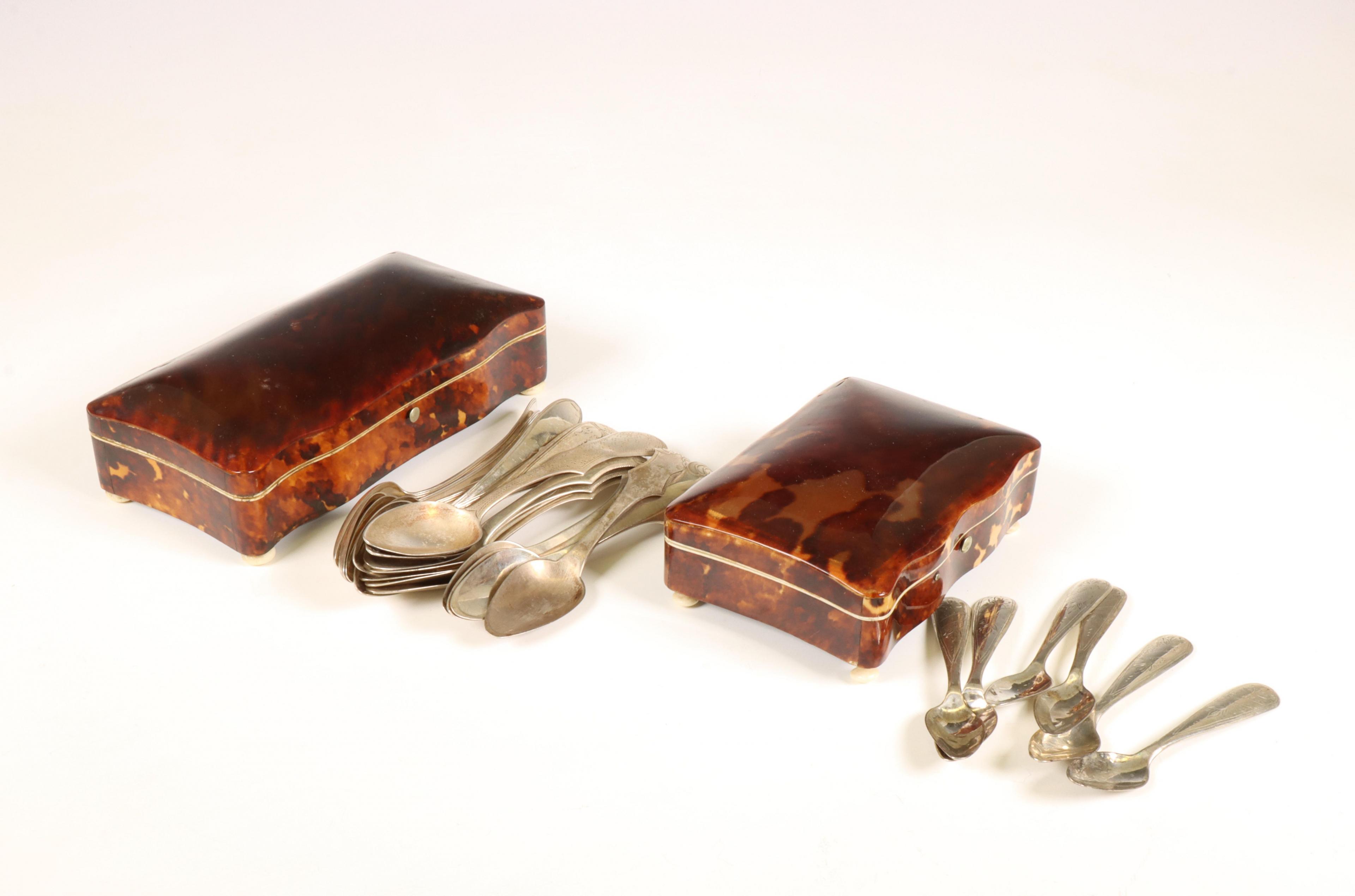 Twee schildpad lepeldoosjes, 19e eeuw;