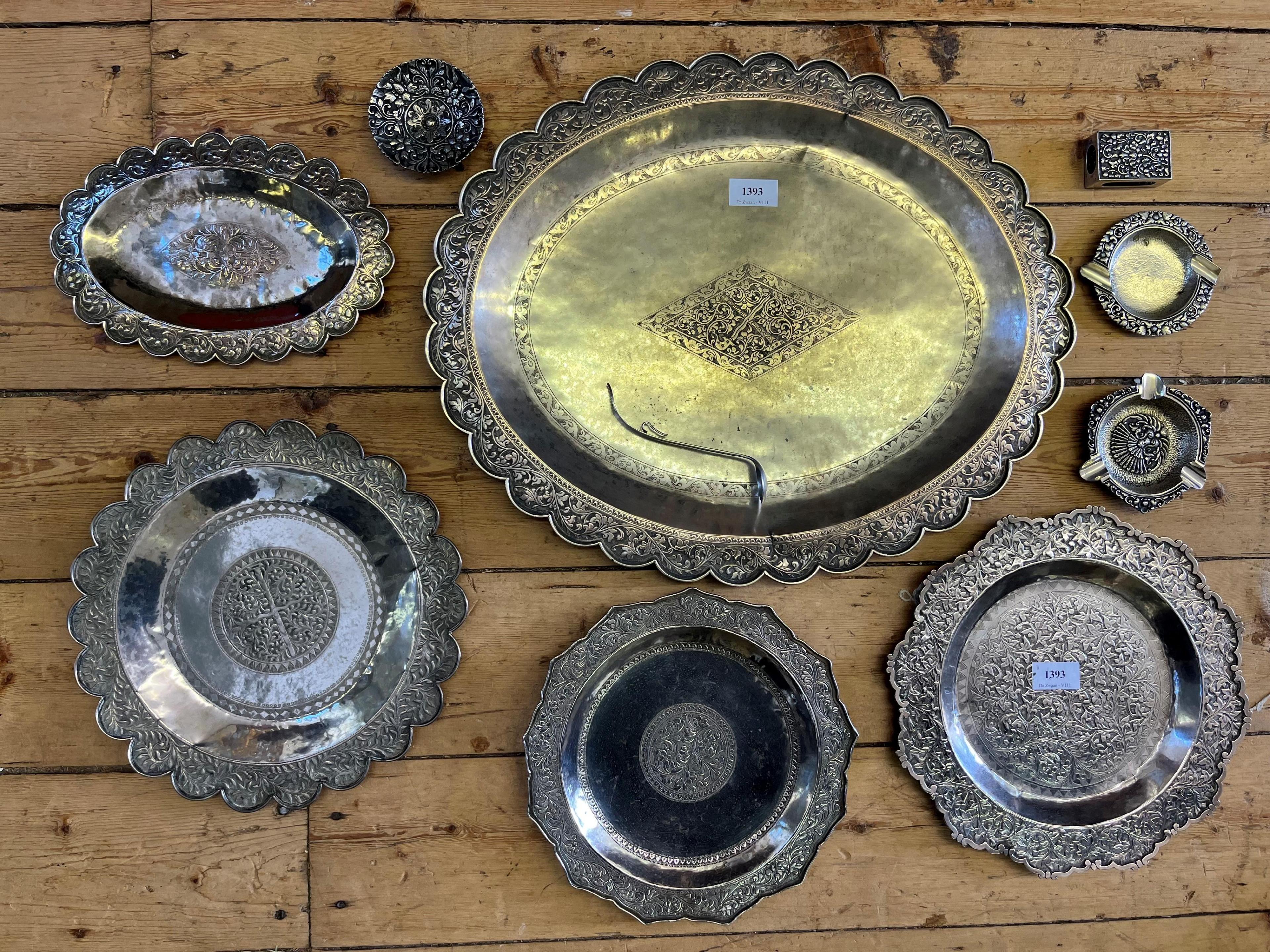 Zuidoost Azië en Indonesië, diverse laaggehalte zilveren serveerschalen en Djokja zilverwerk,