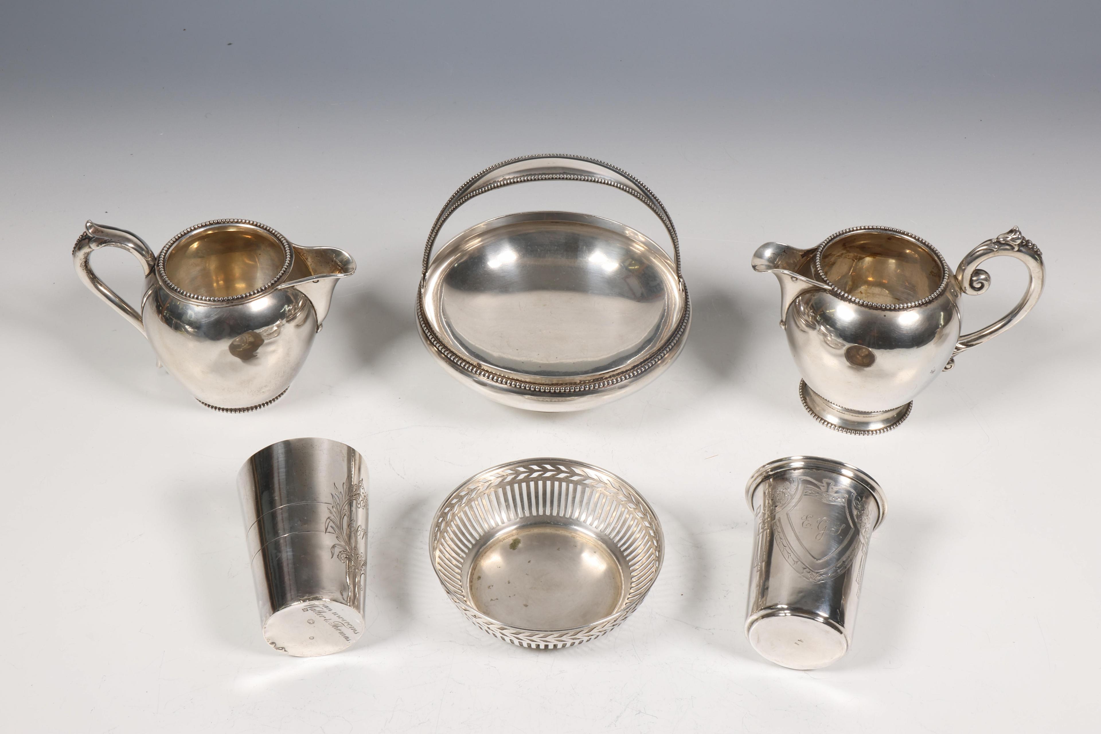 waarbij suikermandje 1884, bonbonbakje Fa. J.M. van Kempen Voorschoten 1916, Art Deco en twee roomkannetjes, 2e gehalte,