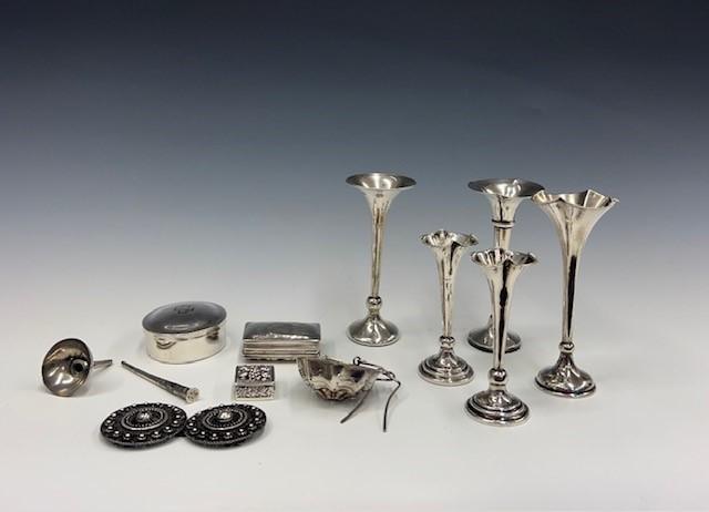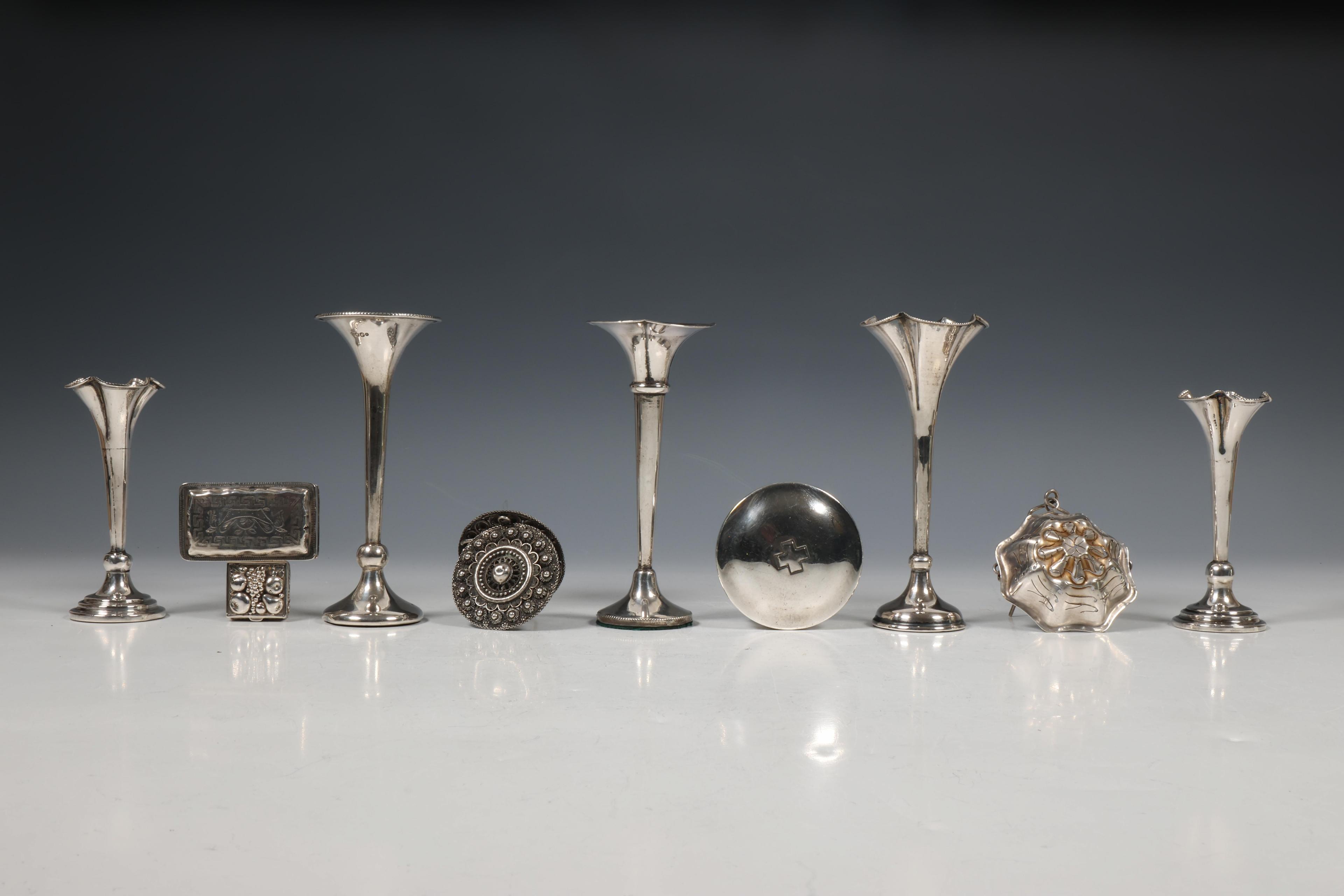 Collectie orchideevaasjes en divers klein zilverwerk, 19e en 20e eeuw,