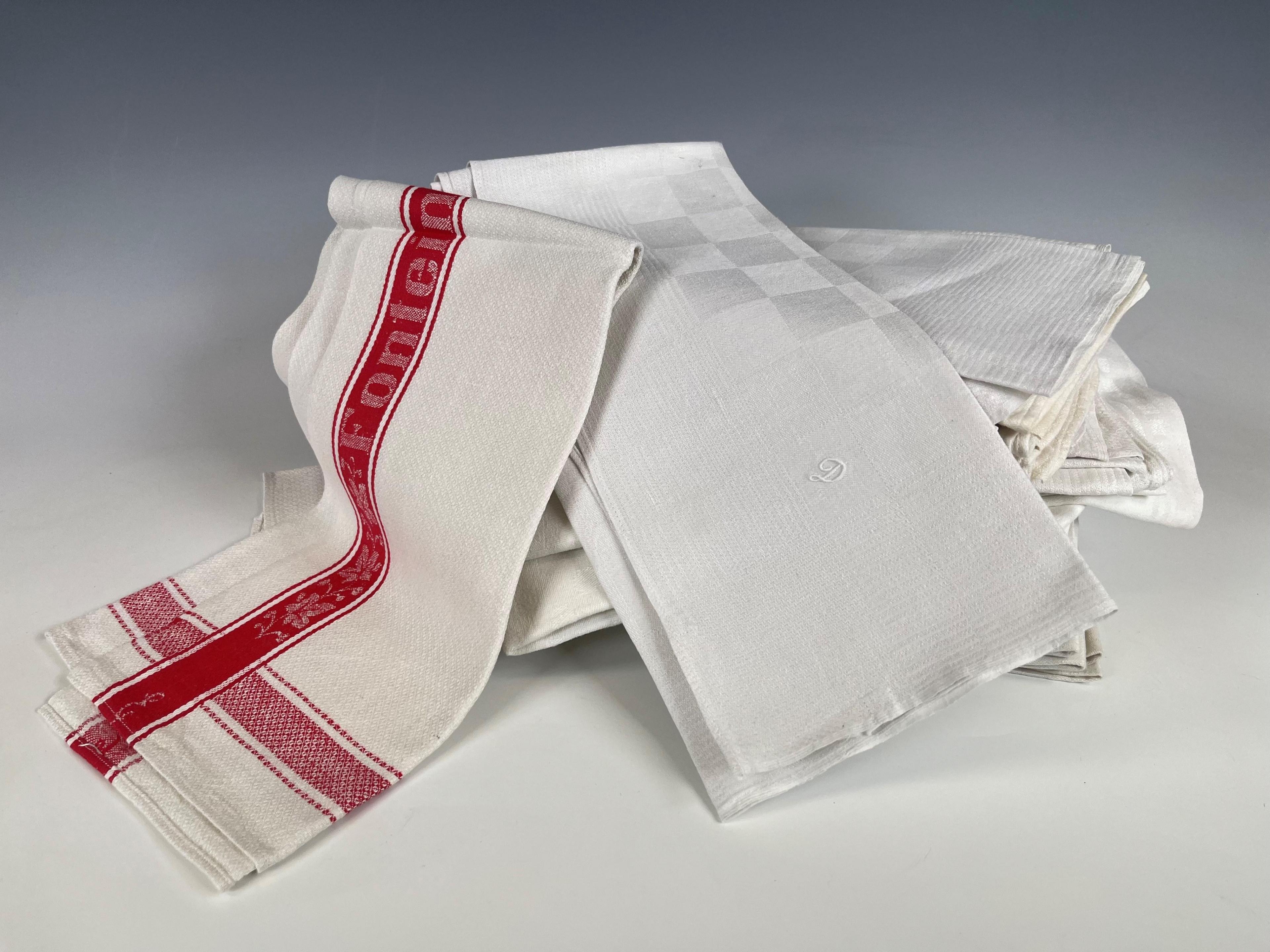 Zevenendertig witte theedoeken van linnen en halflinnen, en drie met opschrift "Fontijndoek¨. Grotendeels gemerkt met letter D (herkomst familie Dunlop). Herkomst: veiling Christie's, jaren tachtig.