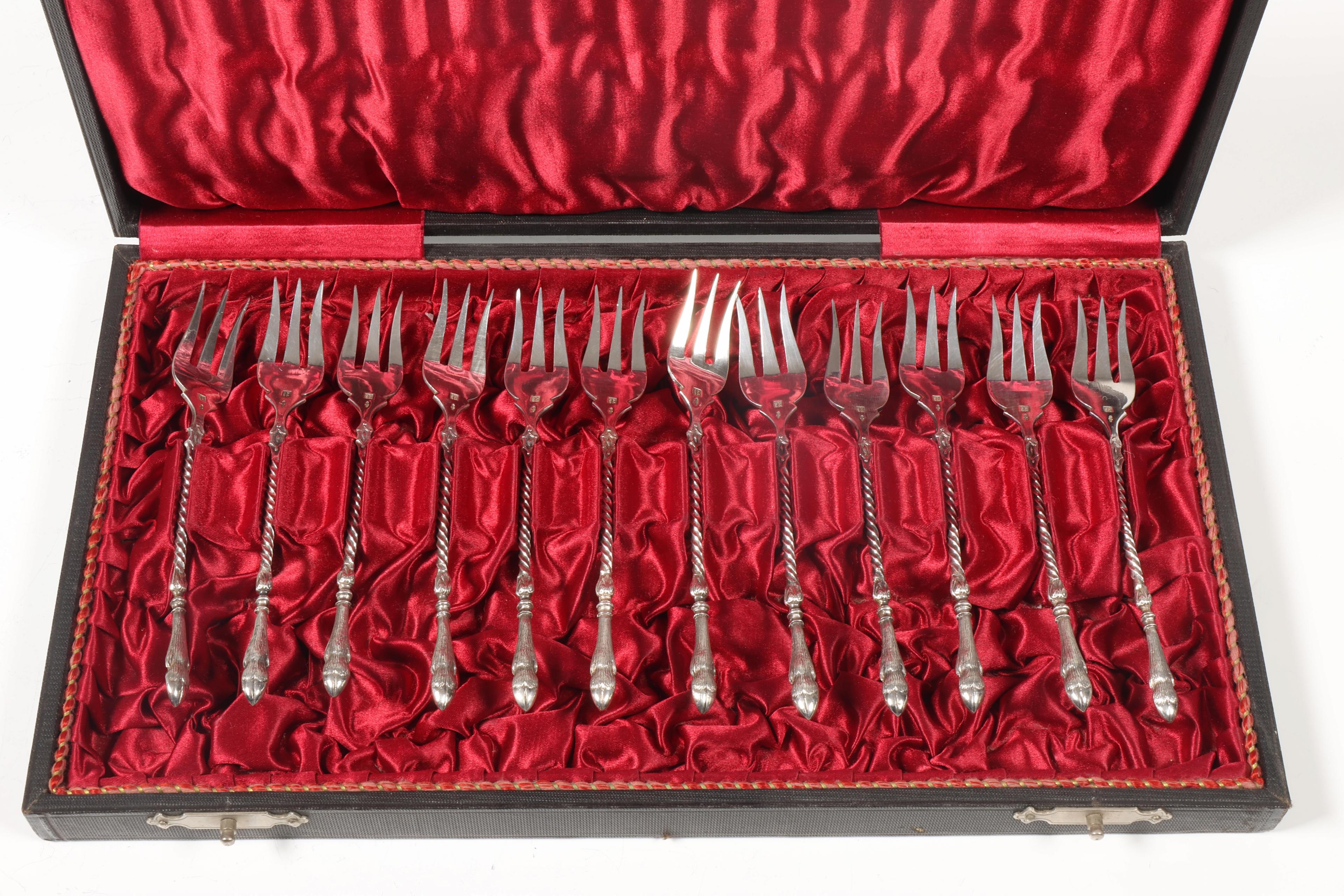 Set van twaalf taartvorkjes en set van zes theelepeltjes,