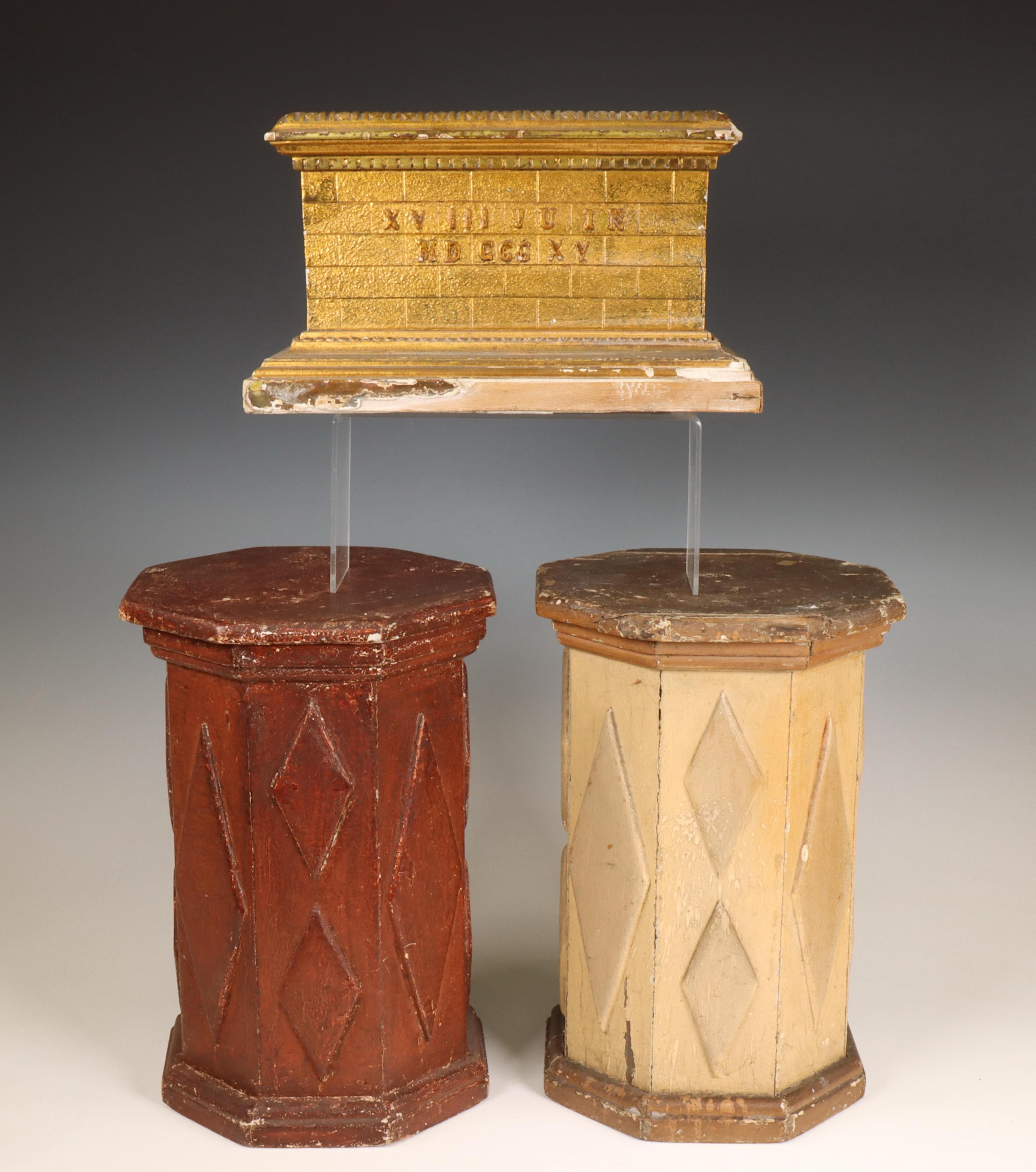 Paar houten octagonaal vormige sokkels, 19e eeuw;