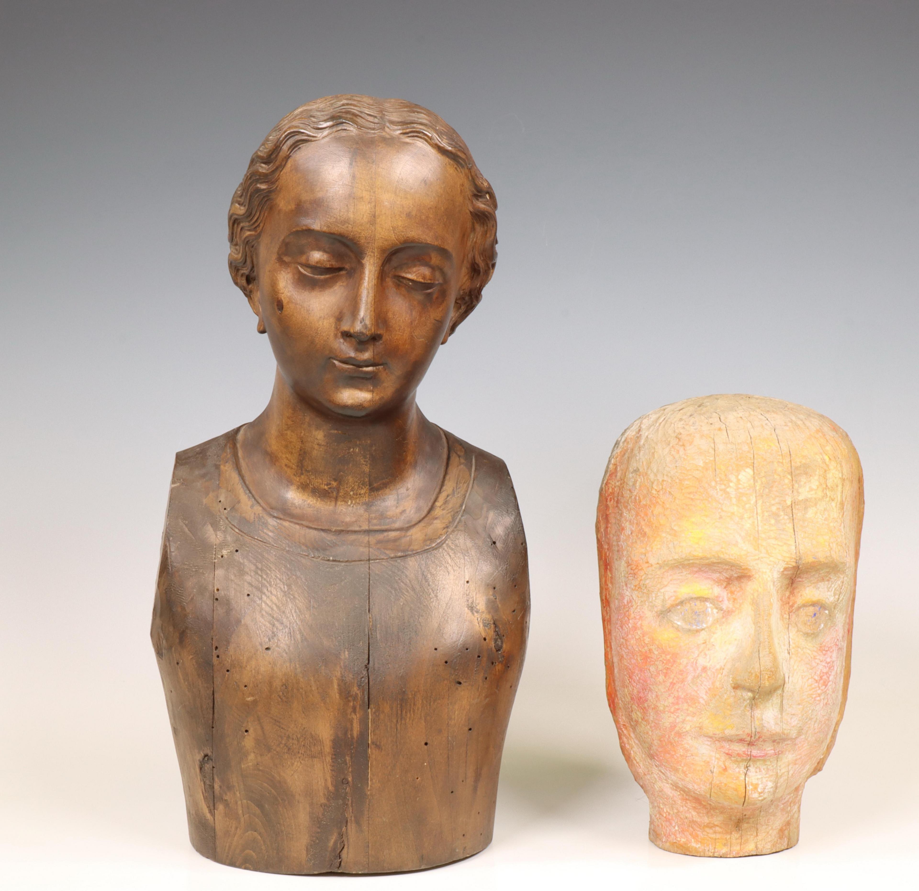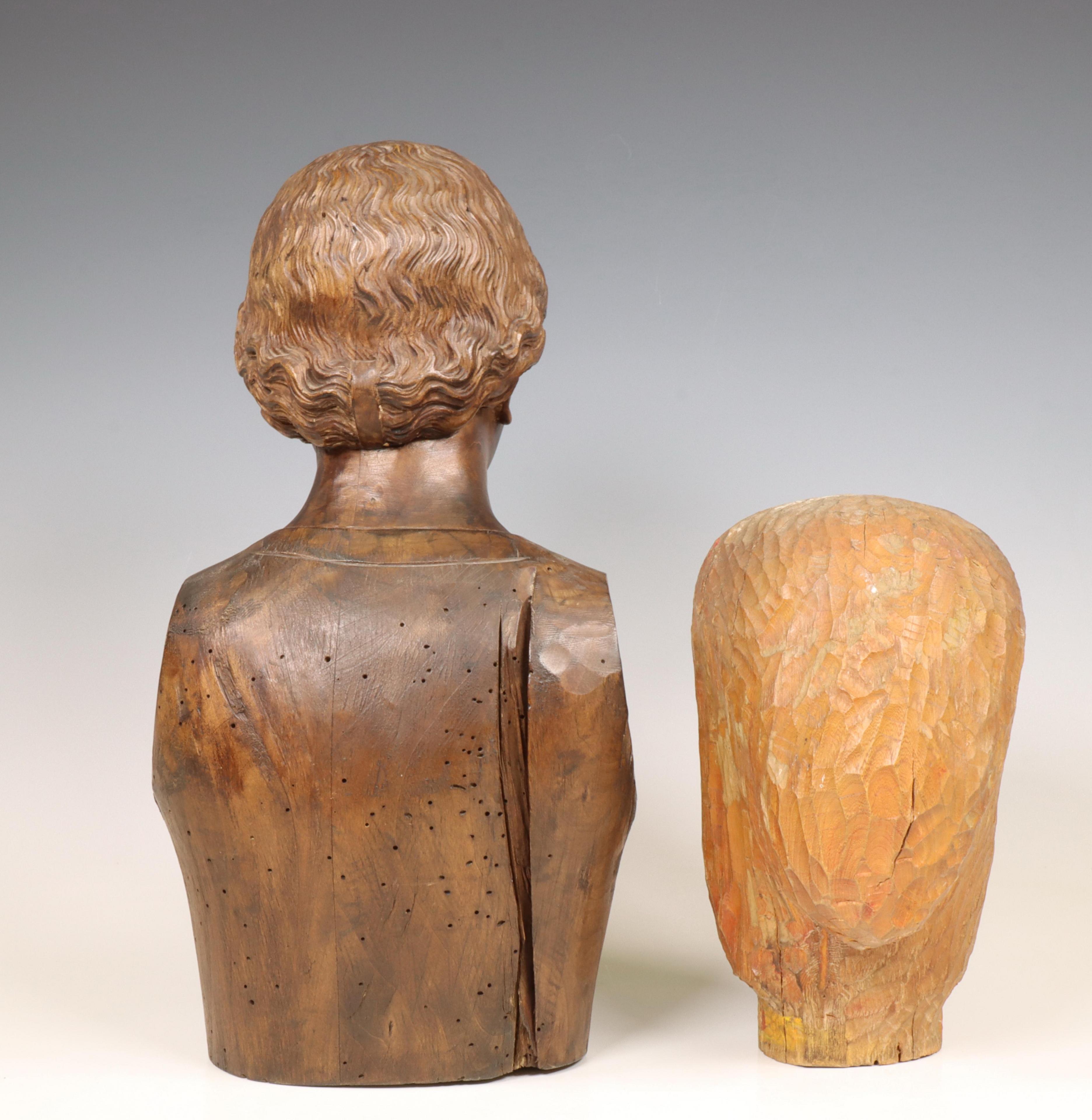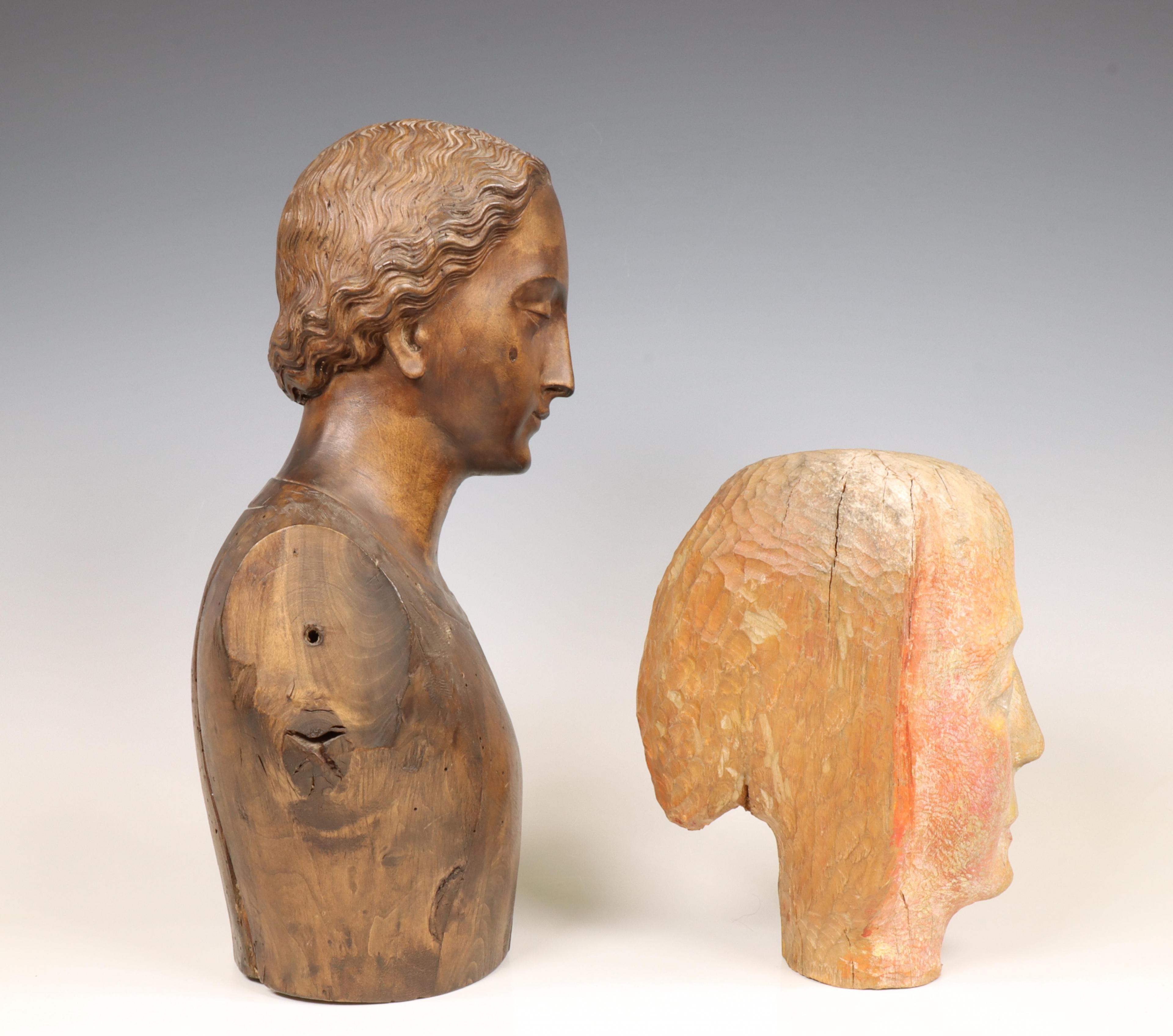 Notenhouten gestoken portretbuste van vrouw, 19e eeuw;