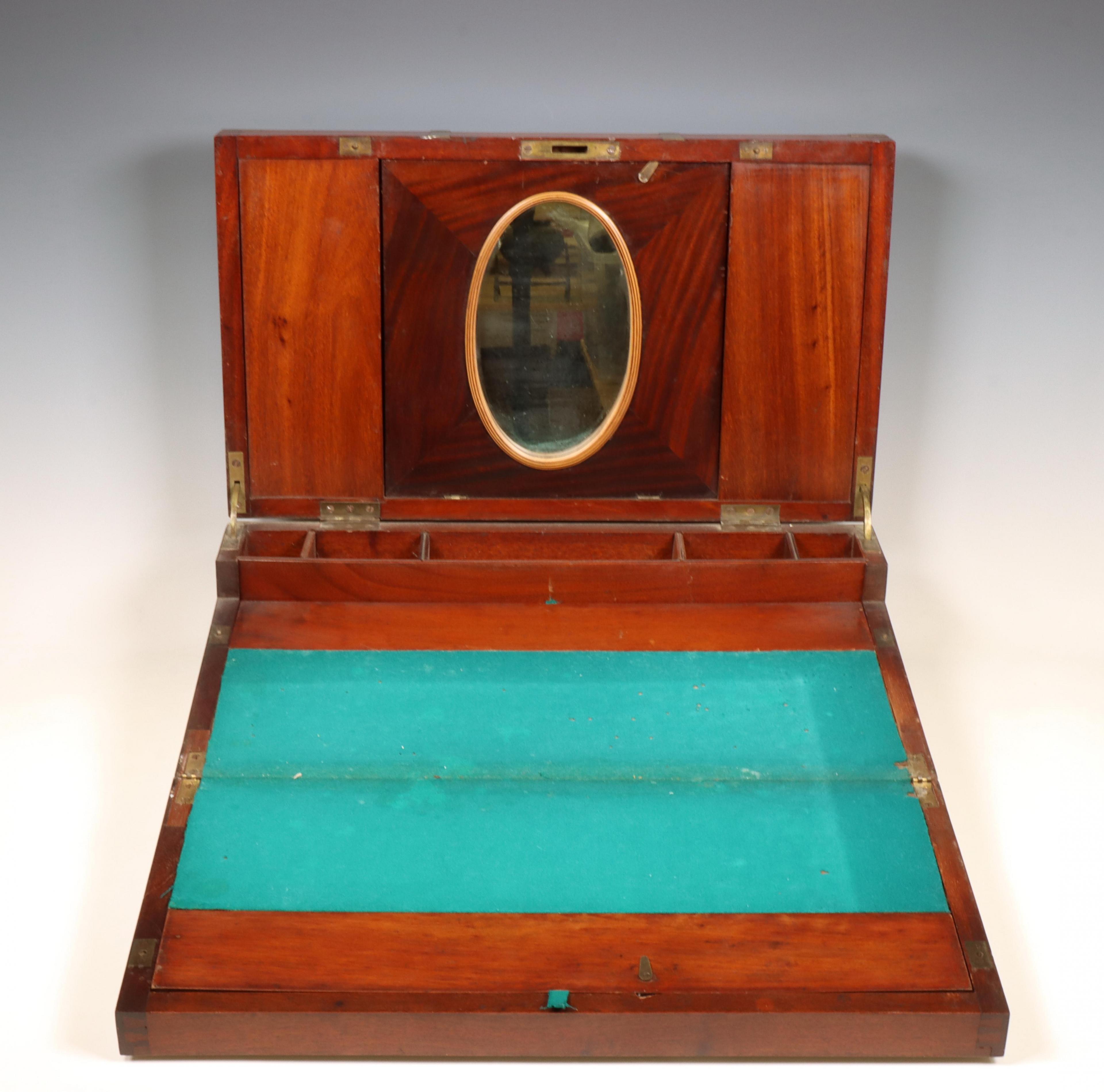 Engeland, een mahoniehouten campaign stijl schrijfkist, circa 1900.