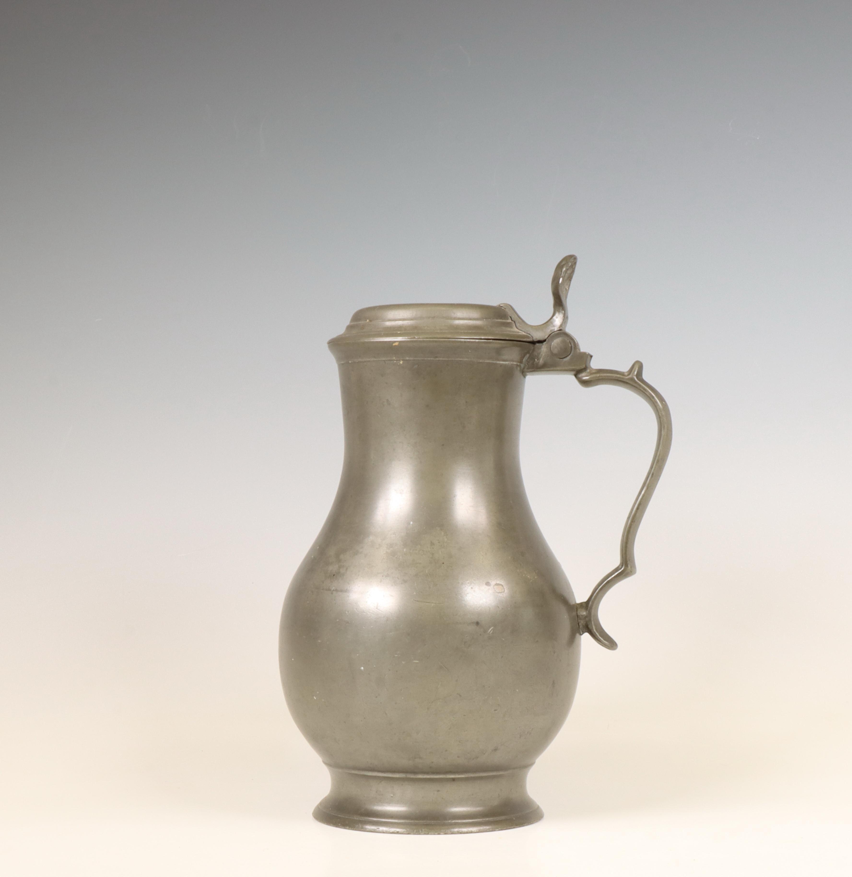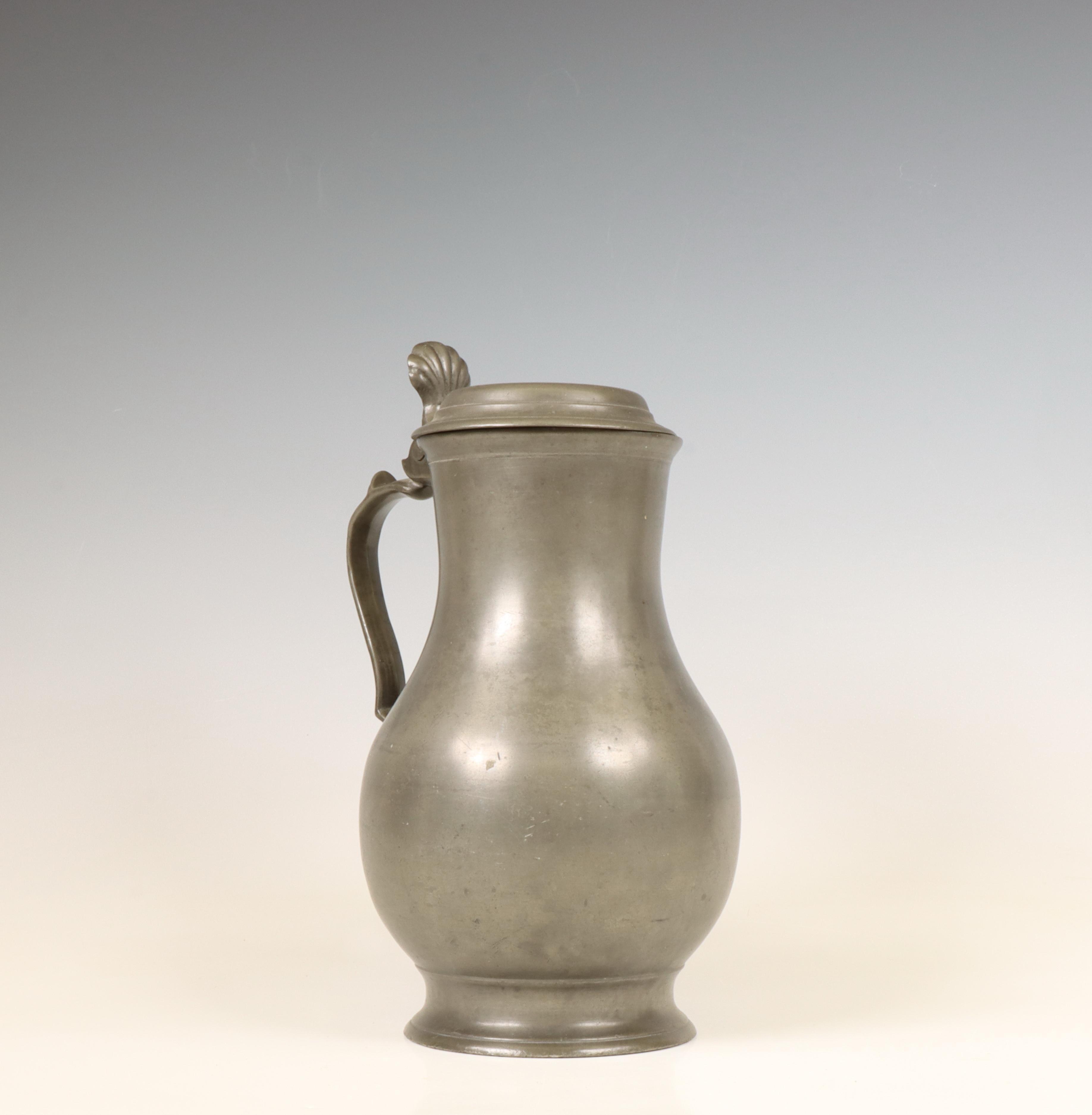 Tinnen klepkan met palmetvormige duimrust. Circa 1800.