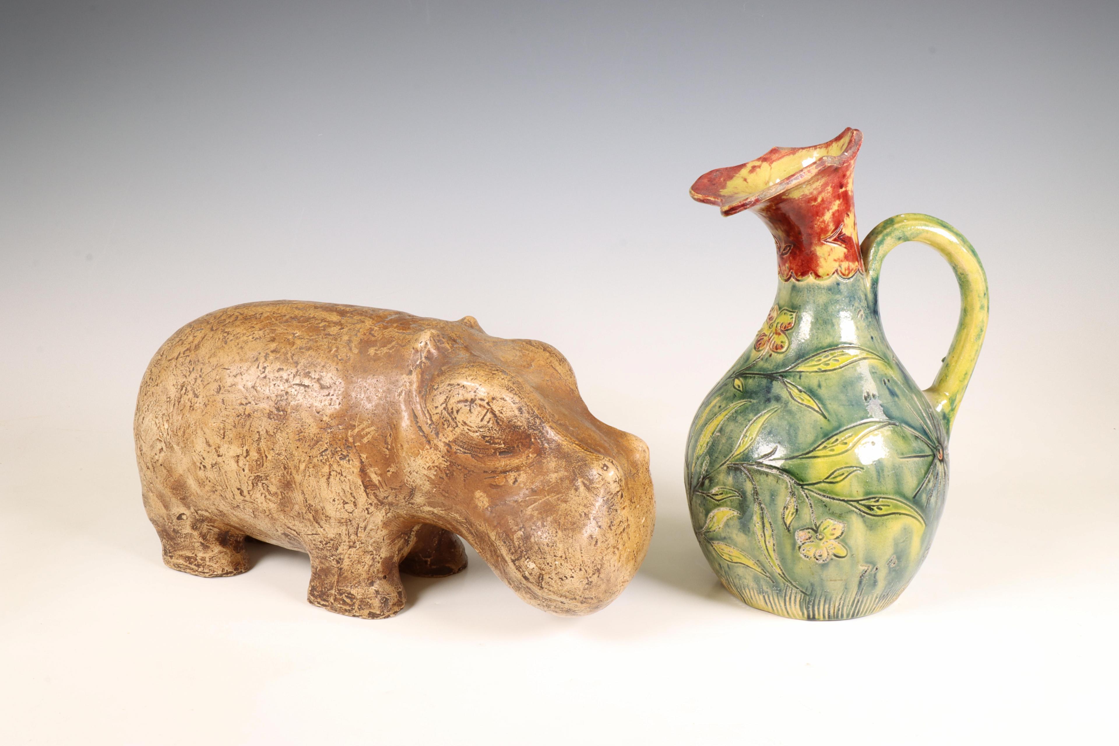 Hierbij een bruin gepatineerde keramiek nijlpaard.