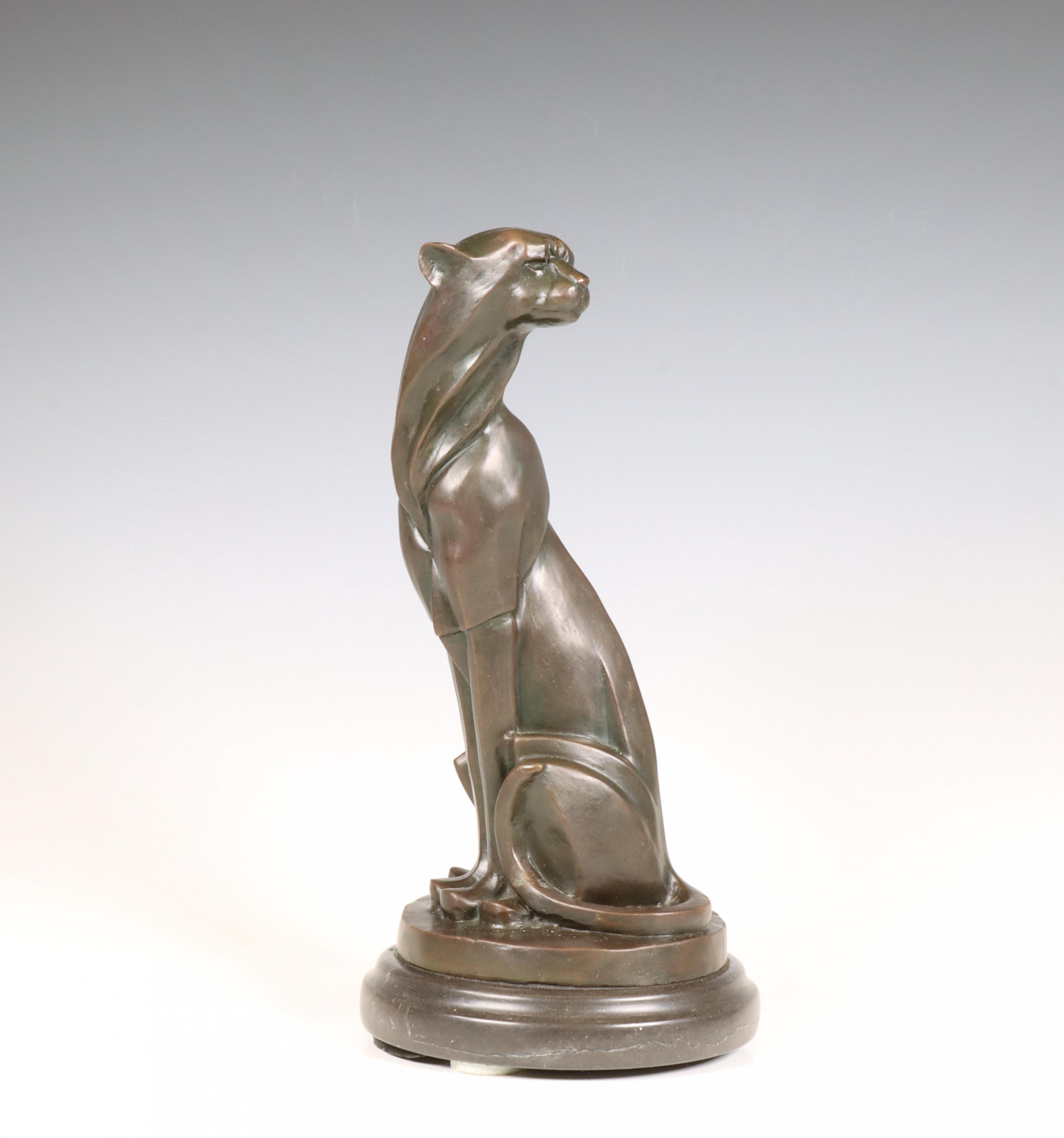 Zwart gepatineerd bronzen sculptuur van Panter, 20e eeuw;