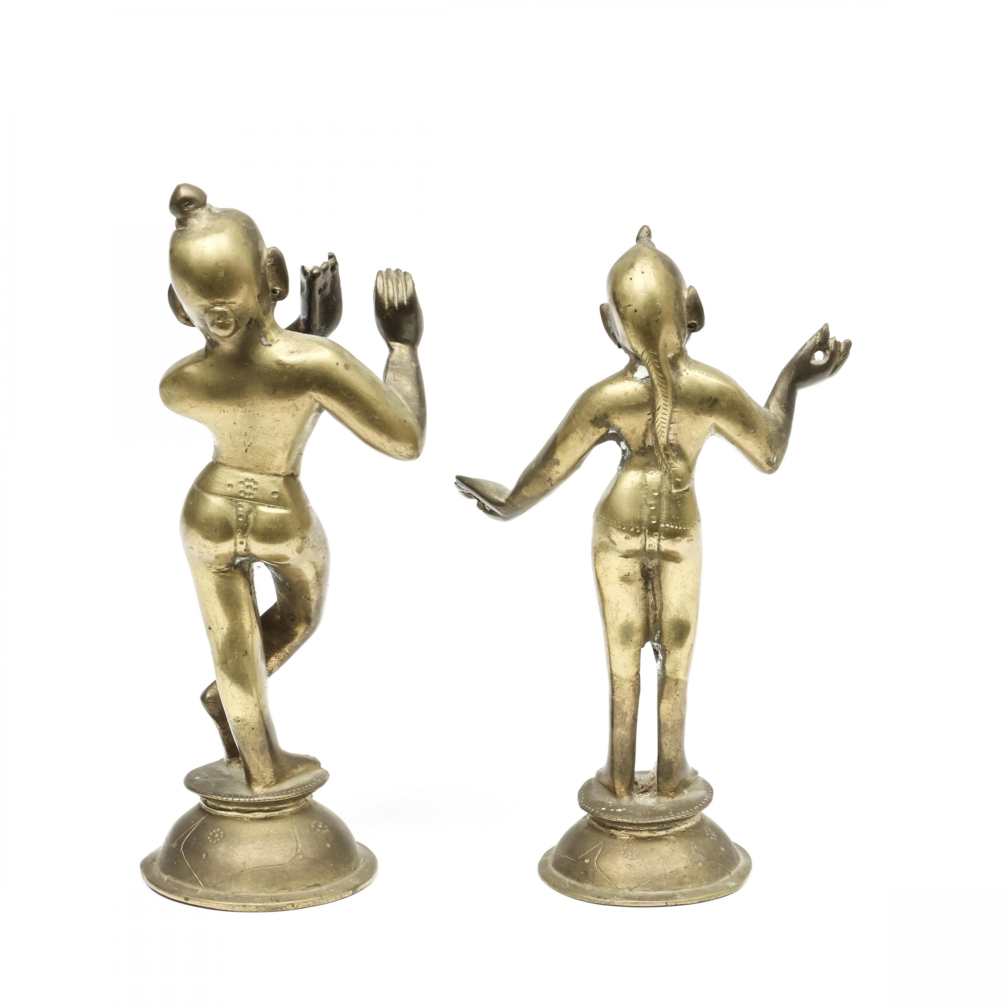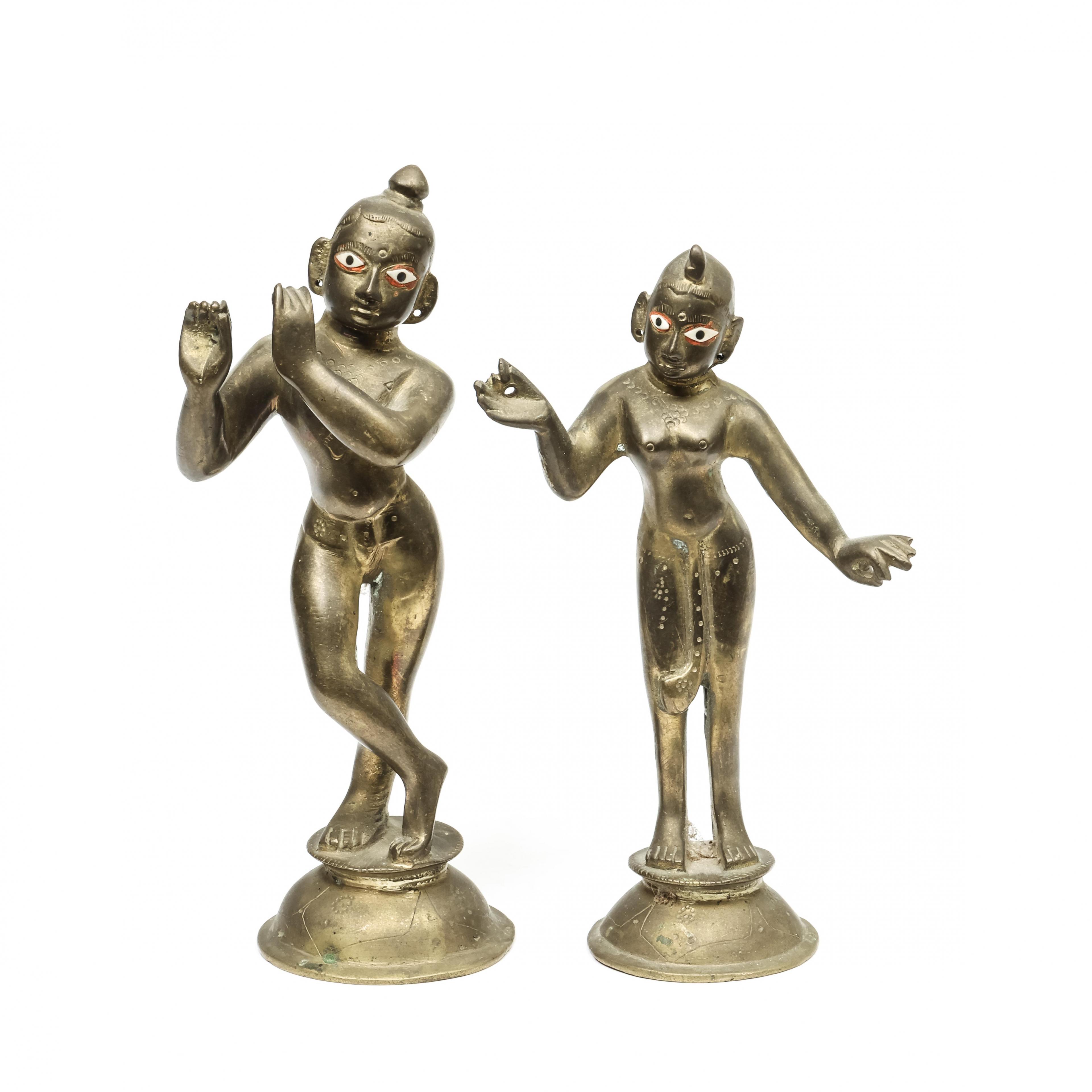 India, twee bronzen figuren van Krishna en Radha, 20e eeuw,